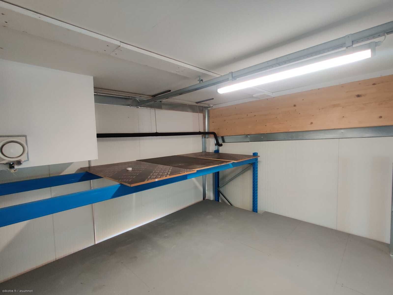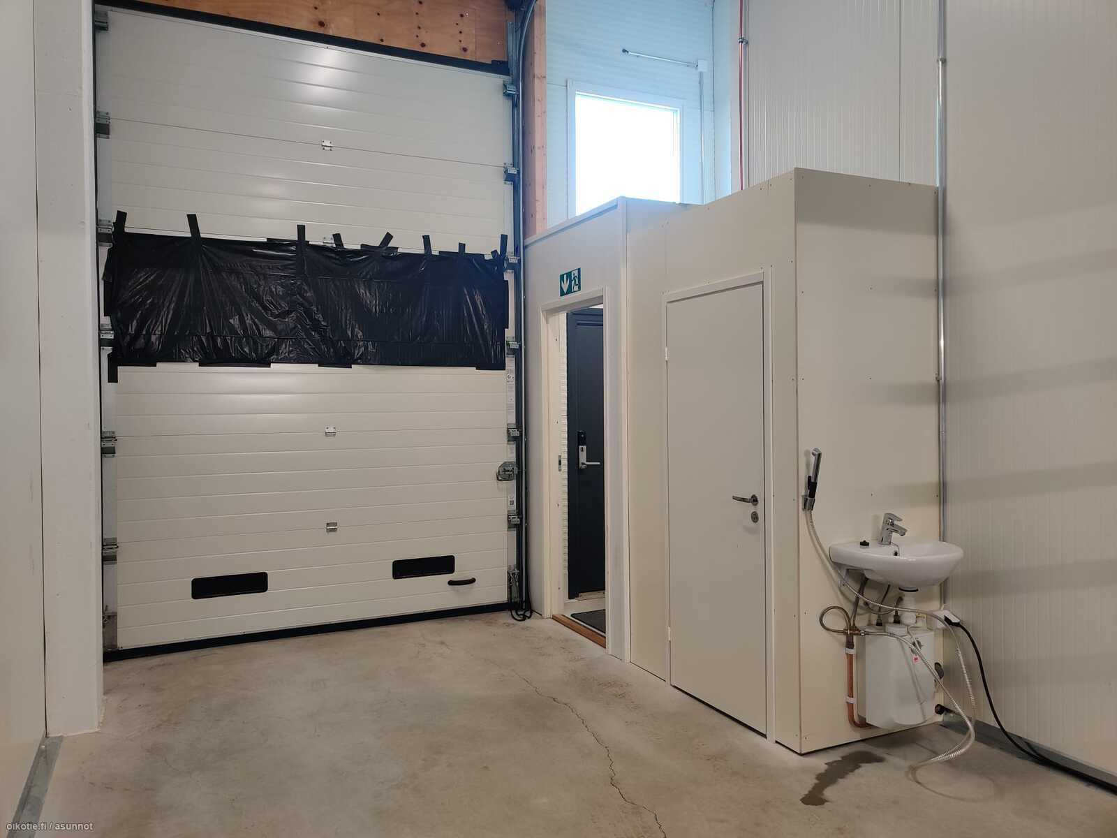 Tallissa mm. oma nosto-ovi, voimavirta, lattiakaivo, vesipiste ja vessa.