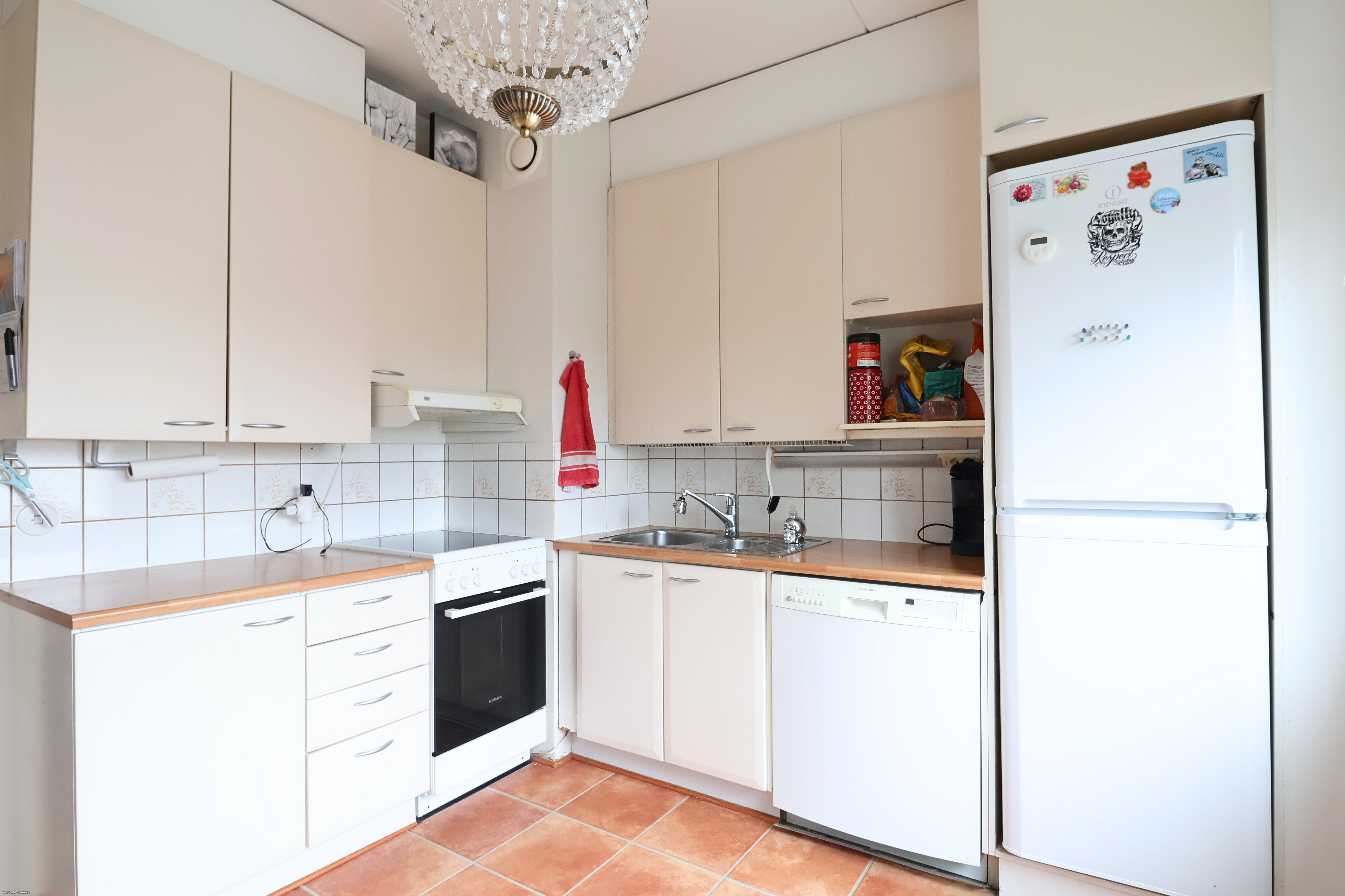 Asunnossa on tilava makuuhuone jossa suuret peilikaapit. Erillinen keittiö, jossa on runsaasti laskutilaa sekä säilytystilaa. Jääkaappi/pakastin, uuni ja liesi kuuluu keittiön varusteluun. Suuresta kylpyhuoneesta löytyy liitännät pyykinpesukoneelle. Helposti sisustettava ja valoisa läpitalon kaksio lasitetulla parvekkeella on juuri sopiva pienelle perheelle, pariskunnalle tai jopa yksin asujallekin!