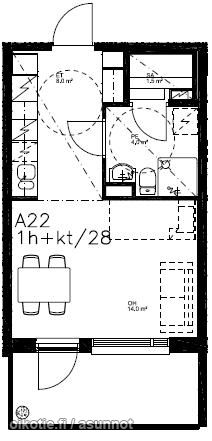 | Huoneiston kokoonpano | 1h,kk,kh,sa,parv |