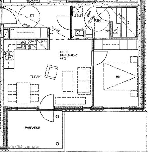 | Huoneiston kokoonpano | 2h,kt,kh,sa,l.parv |