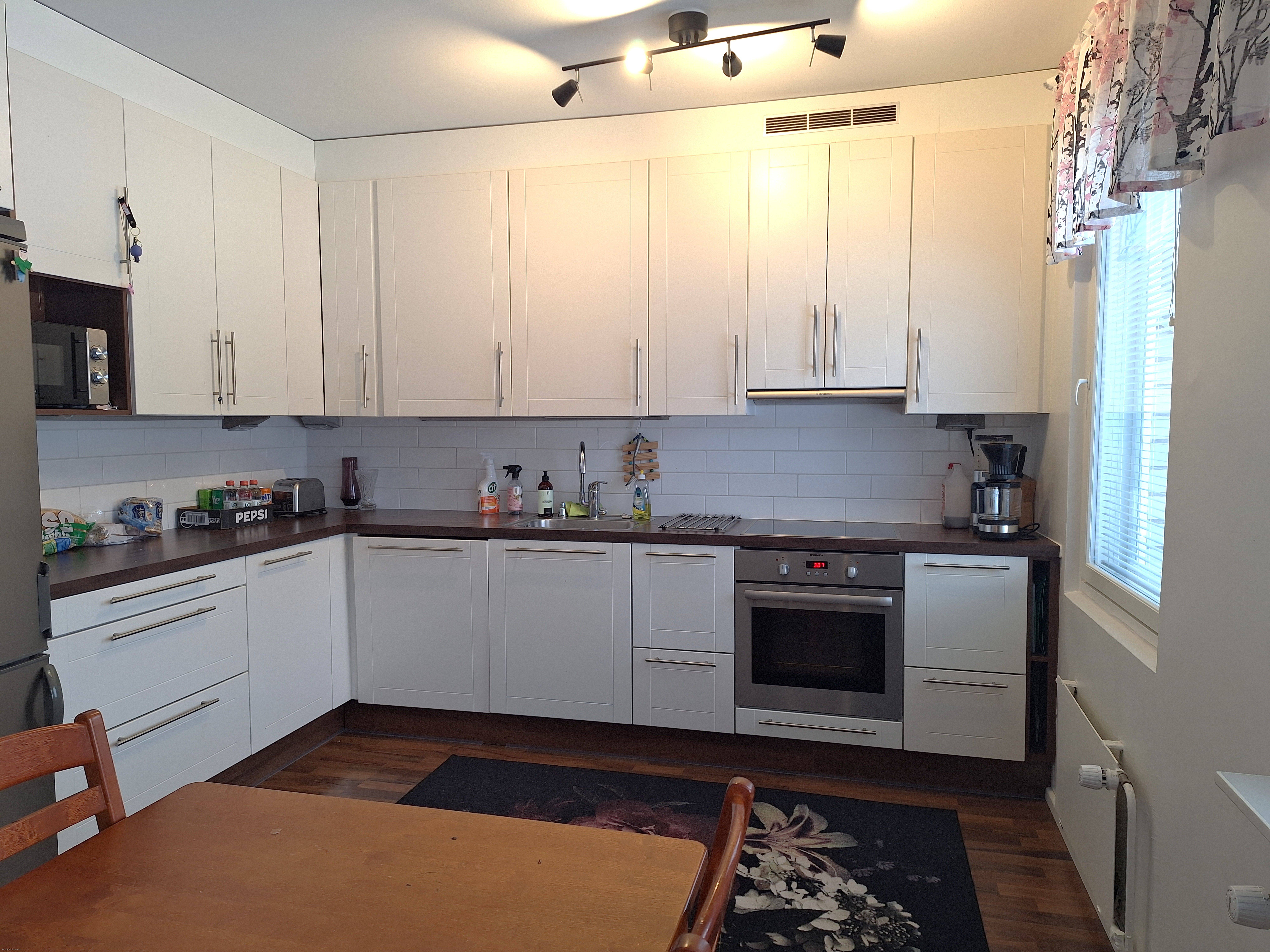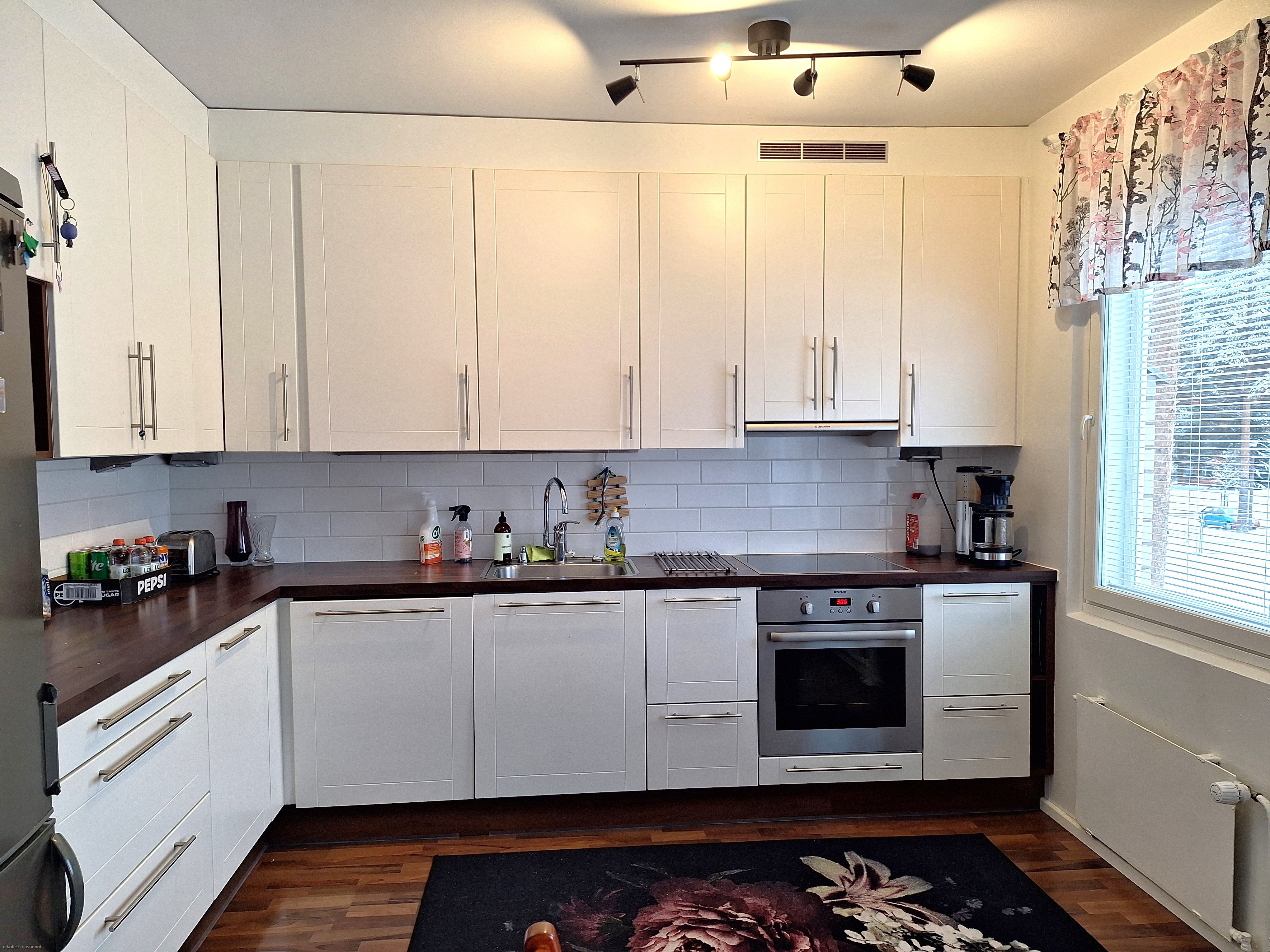Kauniissa keittiössä ajanmukainen varustelu tyylikkäissä väreissä: valmiina astianpesukone sekä jääpakastinkaappi-yhdistelmä sekä liesitaso uunilla ja liesituulettimella! Asunnon lattioissa laminaatti ja seinät vaalein maalipinnoin. Kaakeloidussa kylpyhuoneessa liitännät sekä paikka pyykinpesukoneelle ja kuivausrummulle. Yhdessä makuuhuoneessa vaatekaappi, muissa makuuhuoneissa on vaatekaapit. Siihen kun lisätään vielä eteisessä sijaitseva varastotila, voidaan todeta että säilytystilaa on siis runsaasti. Lasitettu parveke lisää asumismukavuutta.