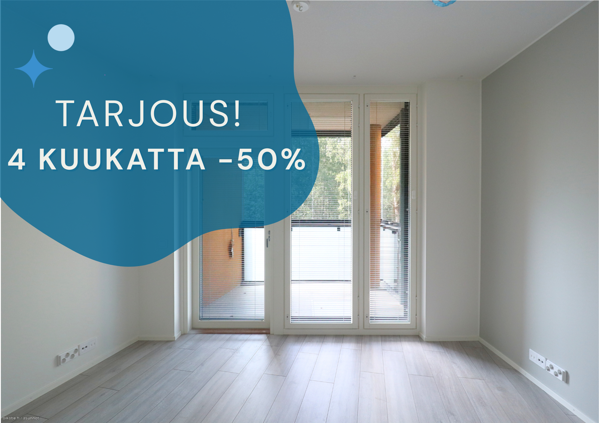Loppuvuoden kampanja! Kun teet vuokrasopimuksen vuoden loppuun mennessä niin saat 50% alennuksen vuokrasta neljälle ensimmäiselle asumiskuukaudelle. Kampanja-ajan jälkeen tämän asunnon vuokra on 610e/kk. Vuokrasopimuksen pitää alkaa viimeistään 1.2.2026 alkaen. Kampanja koskee vain uusia talon asukkaita.