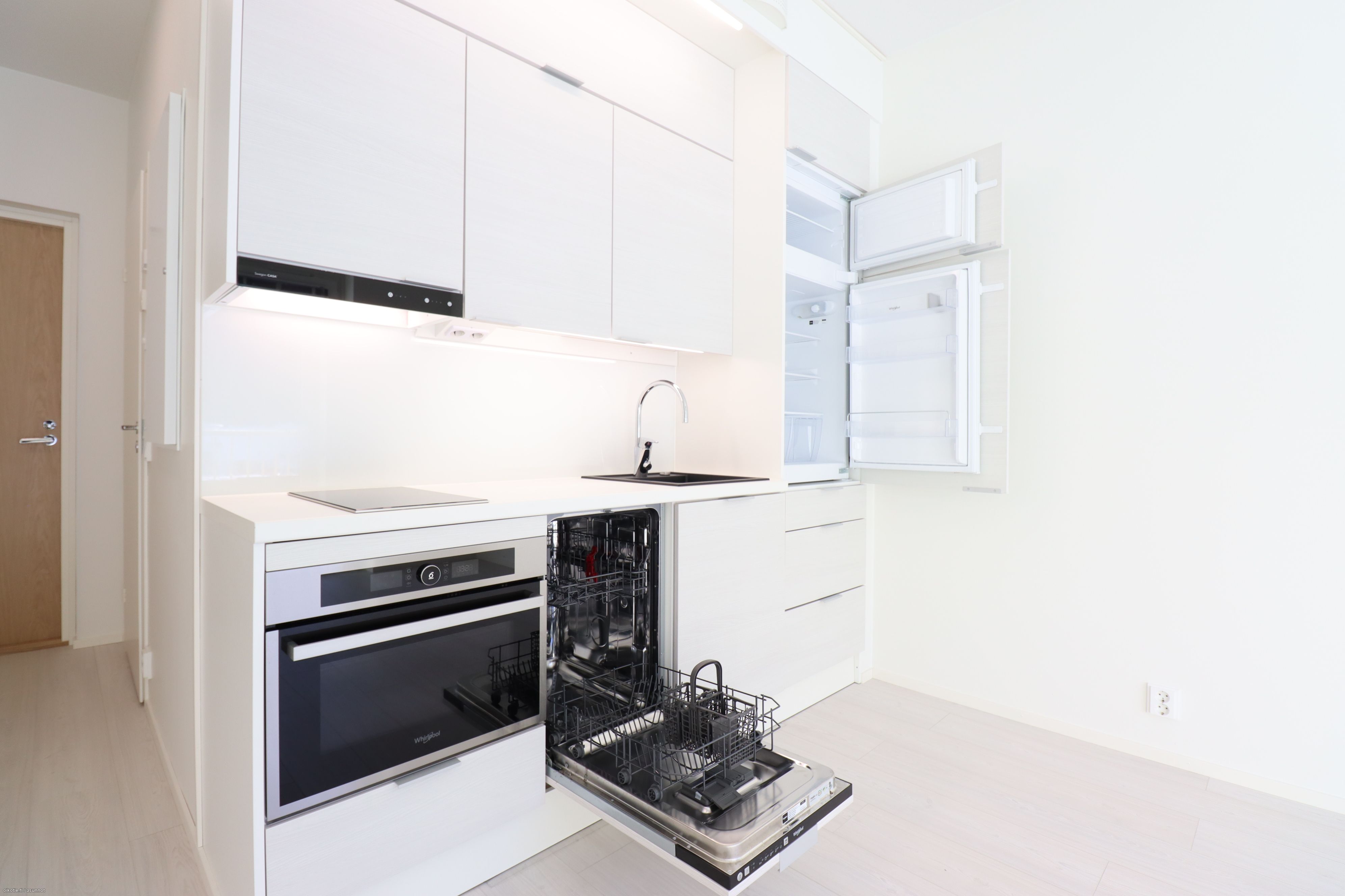 Yksiössä on kauniit vaaleat pinnat ja ranskalainen parveke, jonka ikkunoissa sälekaihtimet. Keittiöistä löytyy jääkaappi pakastelokerolla ja astianpesukone. Kylpyhuoneessa tilaa ja liitäntä pyykinpesukoneelle. Asuntojen kuivissa tiloissa vesikiertoinen lattialämmitys ja kylpyhuoneessa sähköinen lattialämmitys.