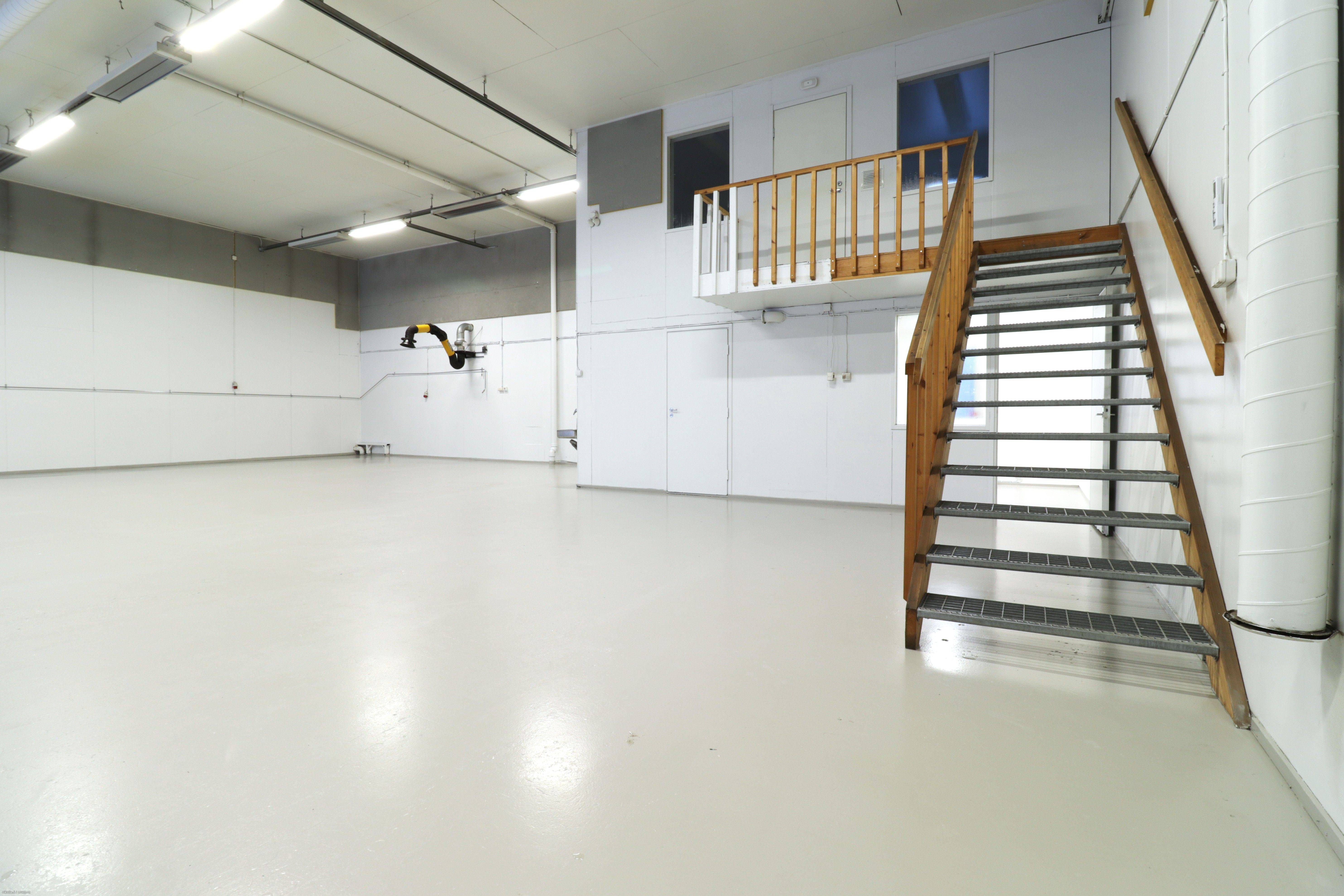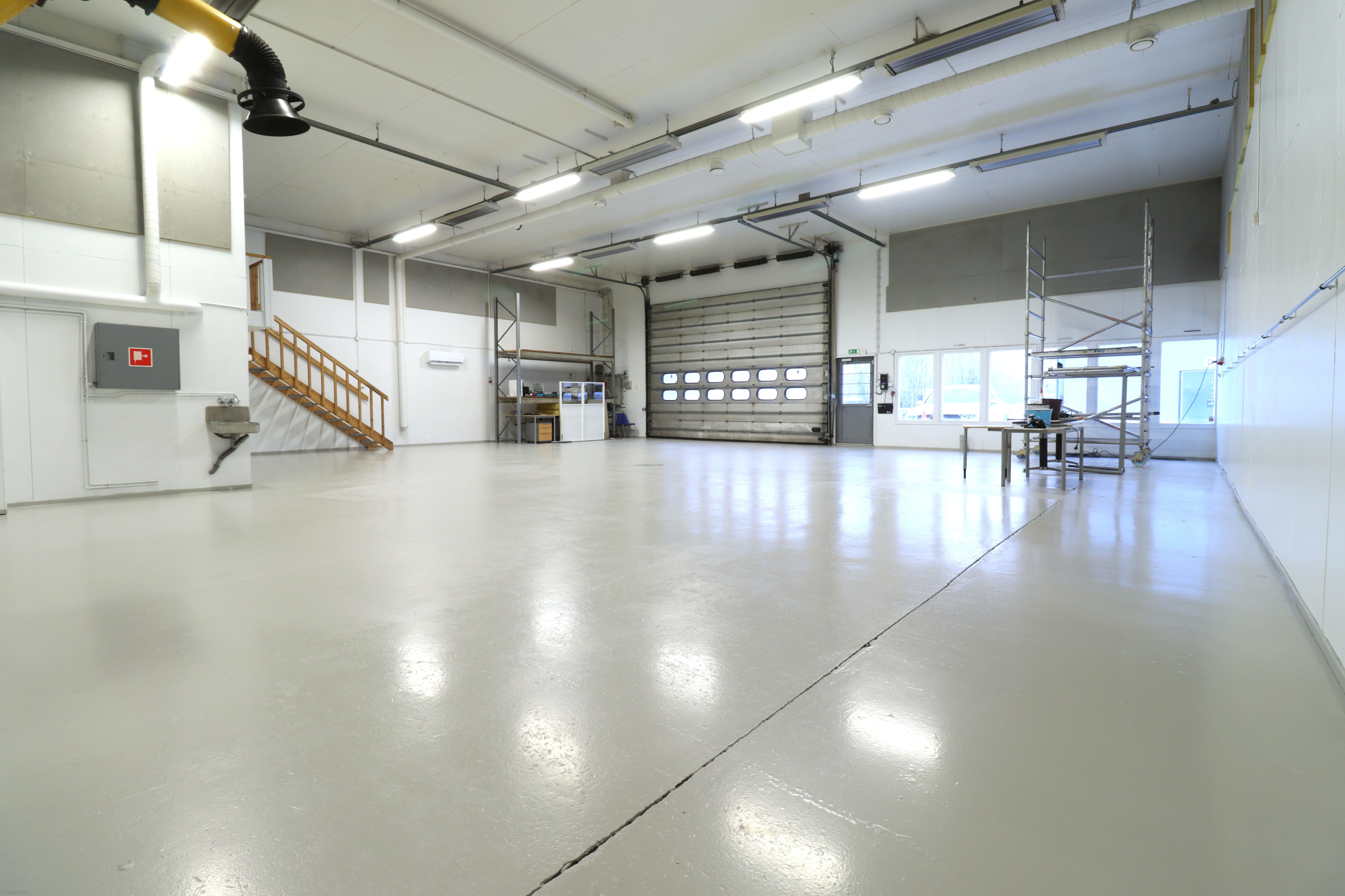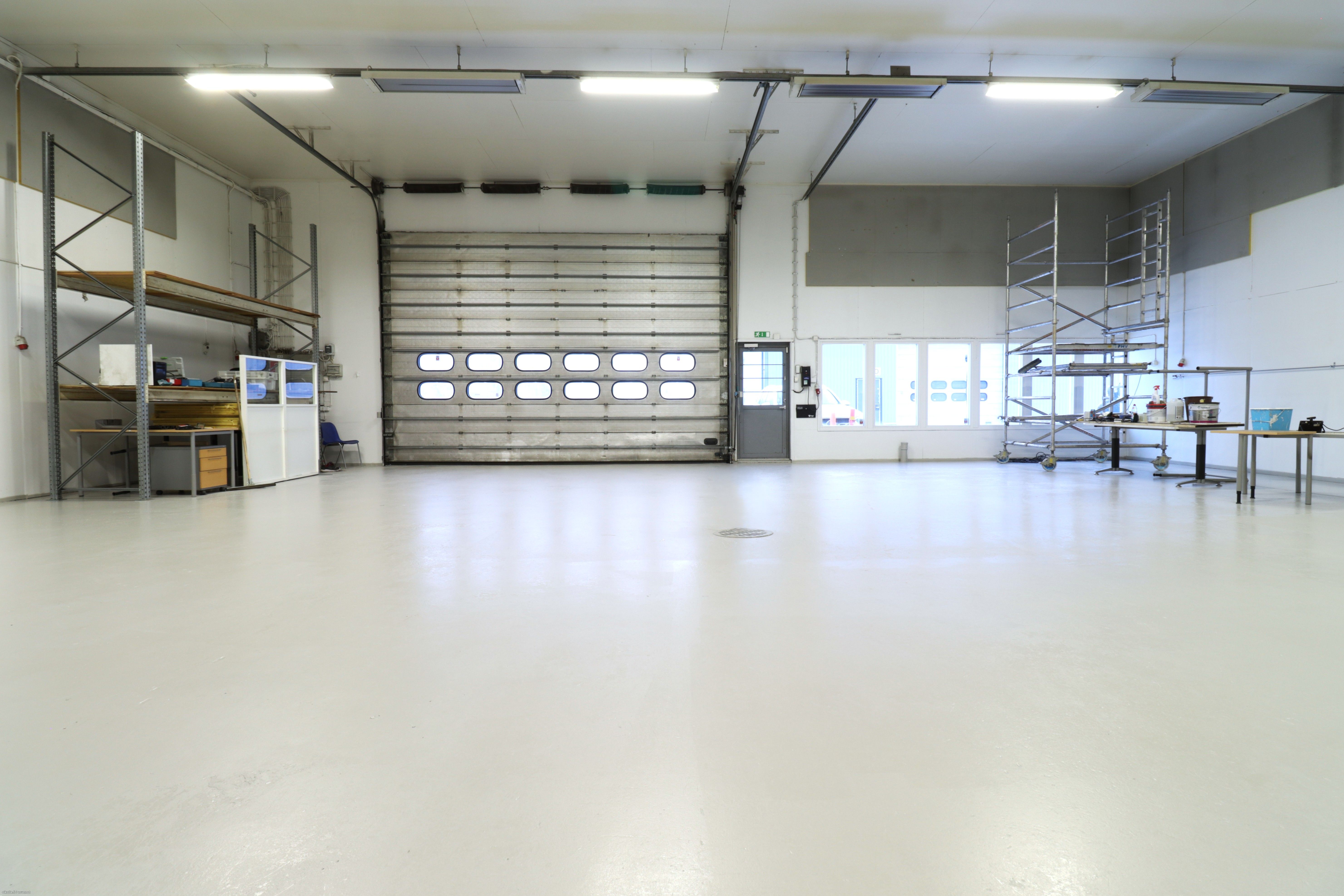 Halli on siistissä kunnossa. Pinnat on juuri maalattu edellisen vuokralaisen jälkeen. Lattiasta löytyy kaivo, hallin puolella myös vesipiste. Tilassa on sähkölämmitys ja sähkönkulutus on ollut n. 3000 kWh/kk yli 100 kuukauden mittausjaksolta mitattuna. Hallissa on mm. kaksi ilmalämpöpumppua ja lisäksi hallitilan katossa on säteilylämmittimet, toimisto lämpiää pattereilla.