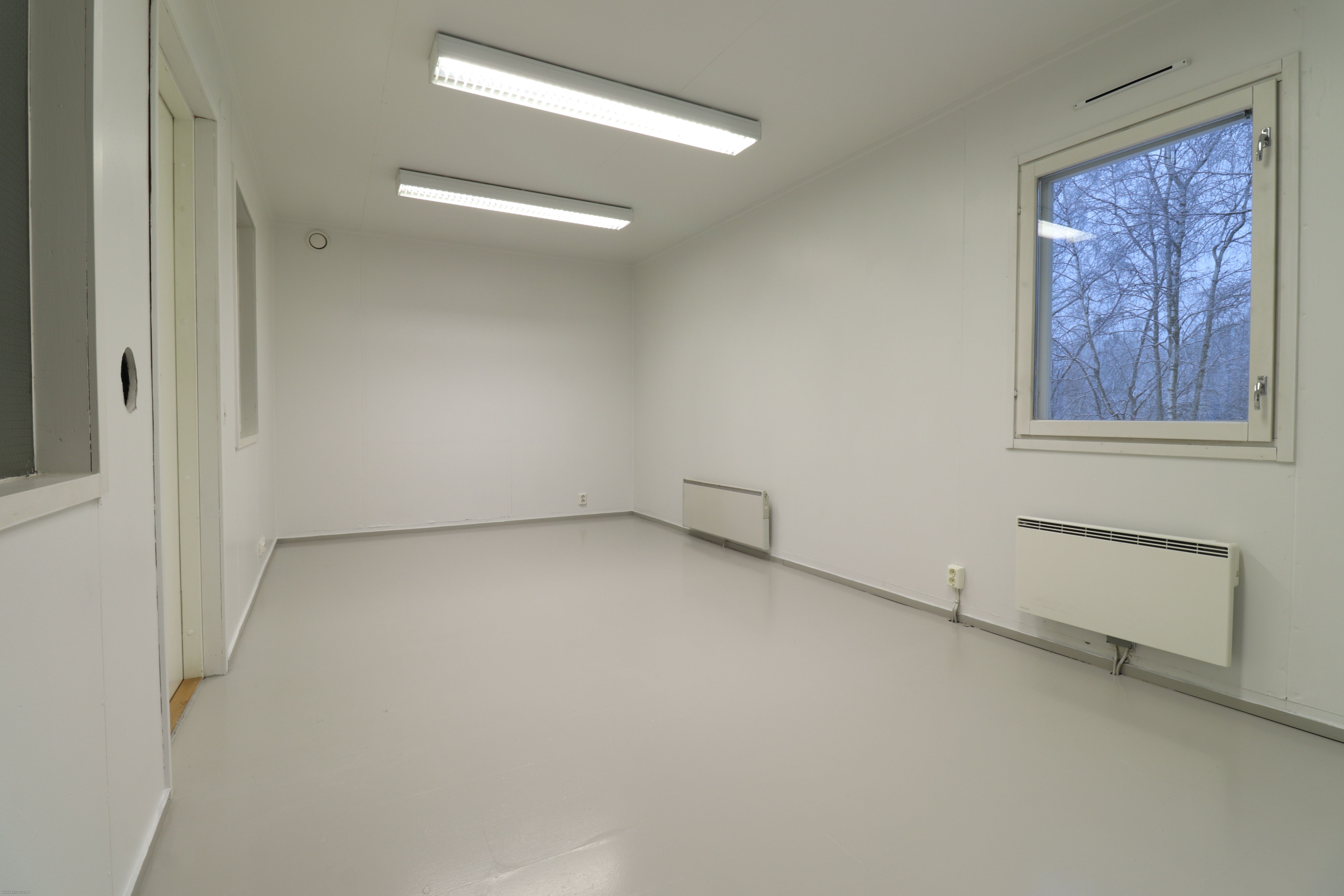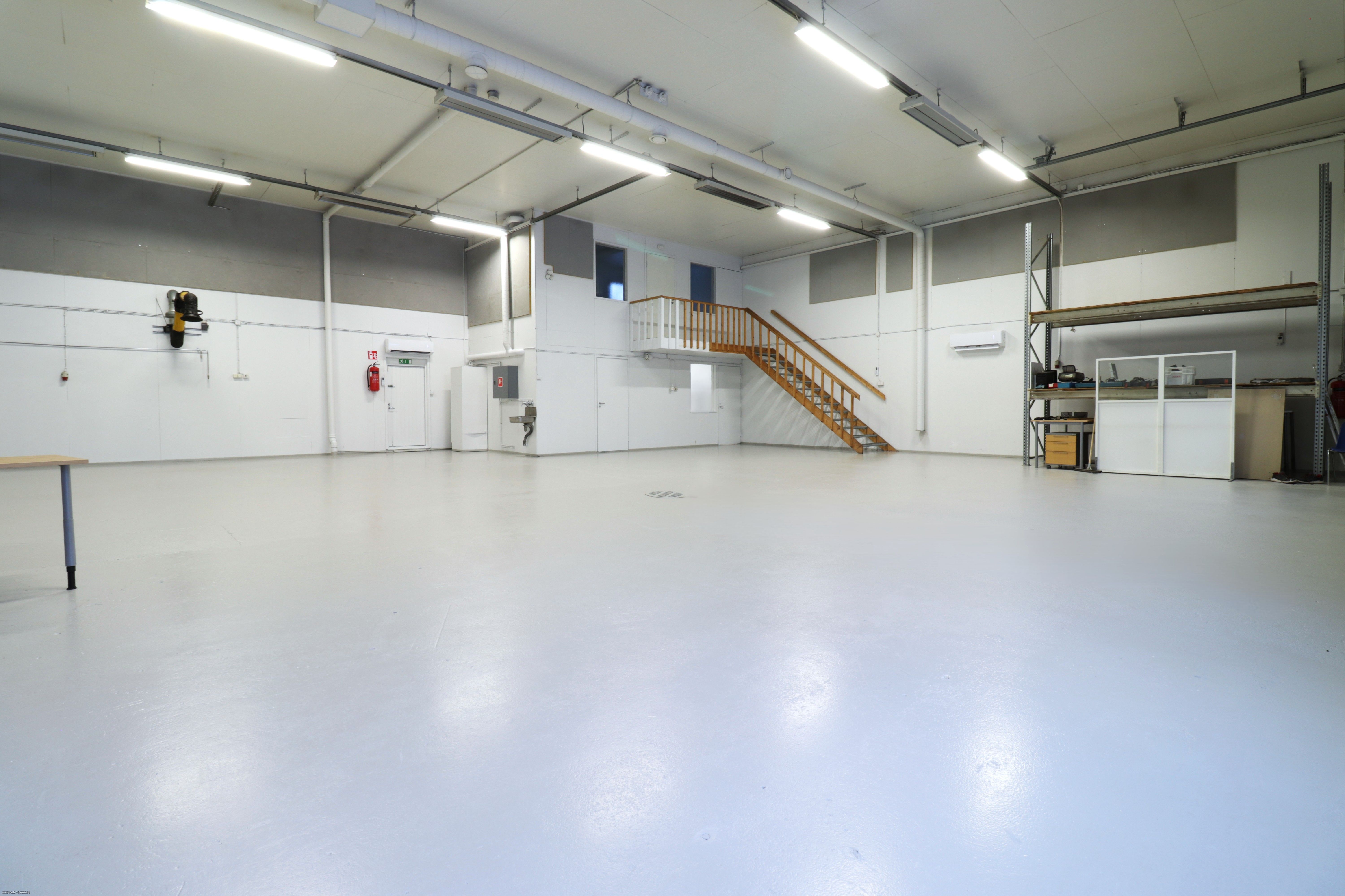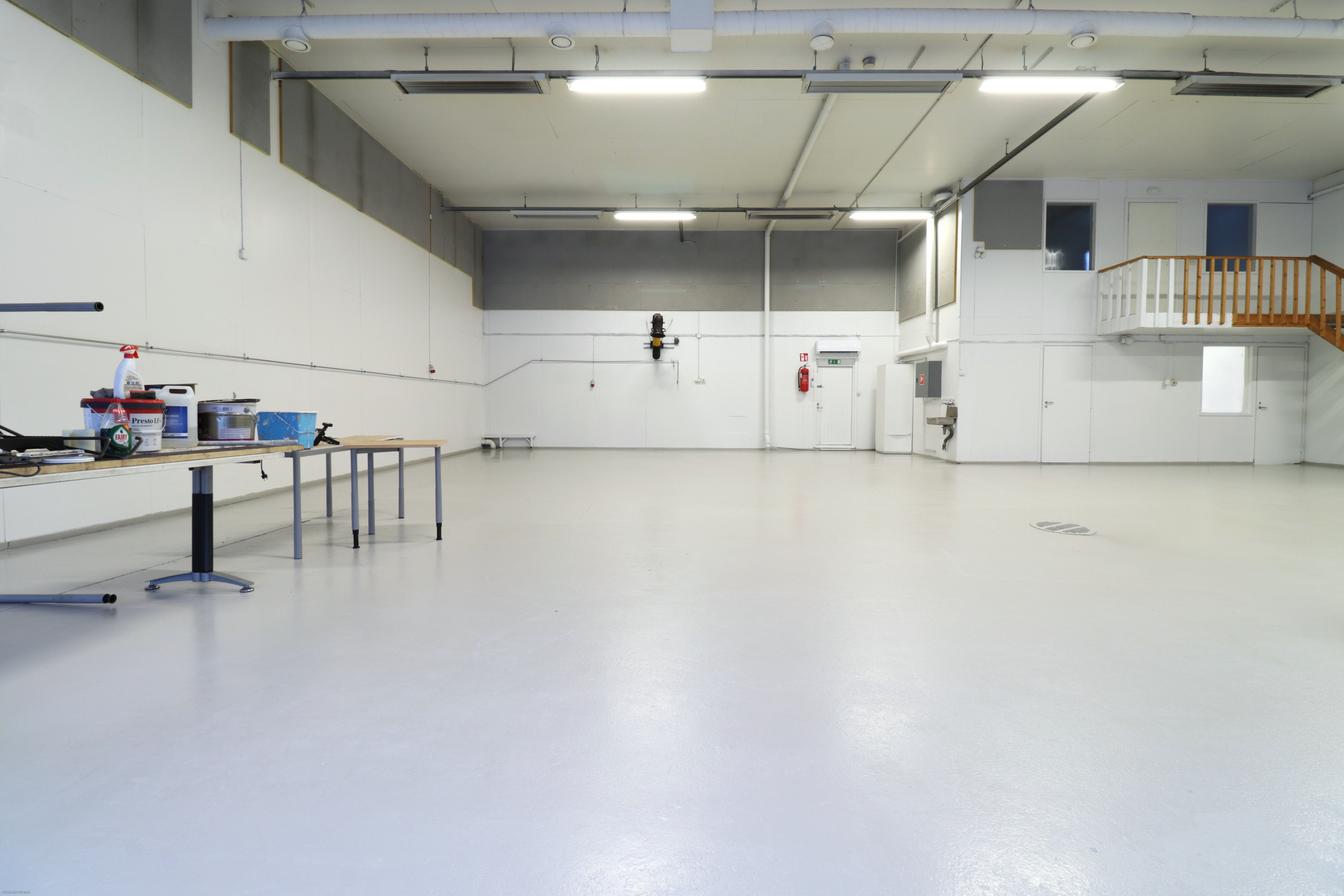 Halli on siistissä kunnossa. Pinnat on juuri maalattu edellisen vuokralaisen jälkeen. Lattiasta löytyy kaivo, hallin puolella myös vesipiste. Tilassa on sähkölämmitys ja sähkönkulutus on ollut n. 3000 kWh/kk yli 100 kuukauden mittausjaksolta mitattuna. Hallissa on mm. kaksi ilmalämpöpumppua ja lisäksi hallitilan katossa on säteilylämmittimet, toimisto lämpiää pattereilla.