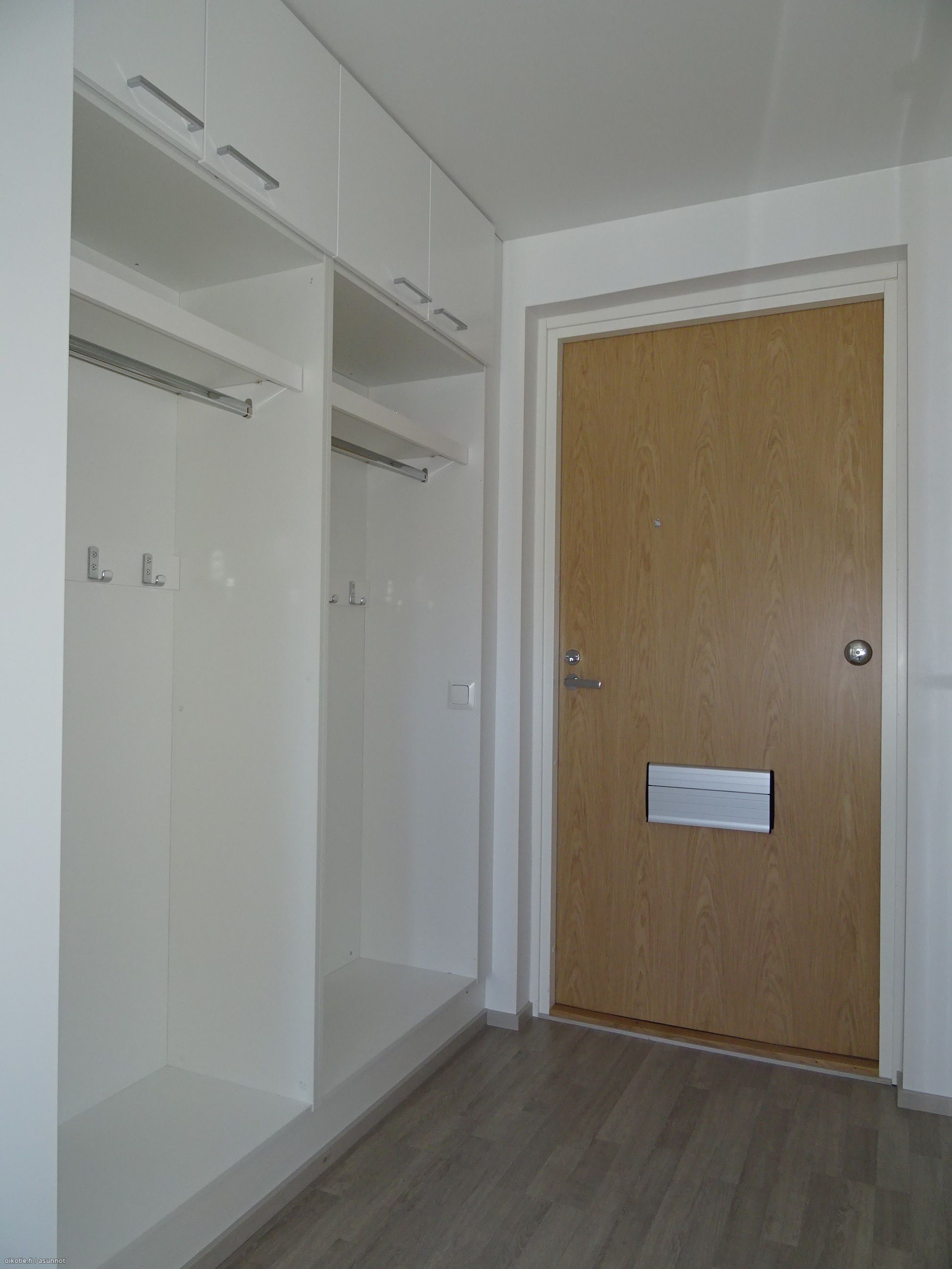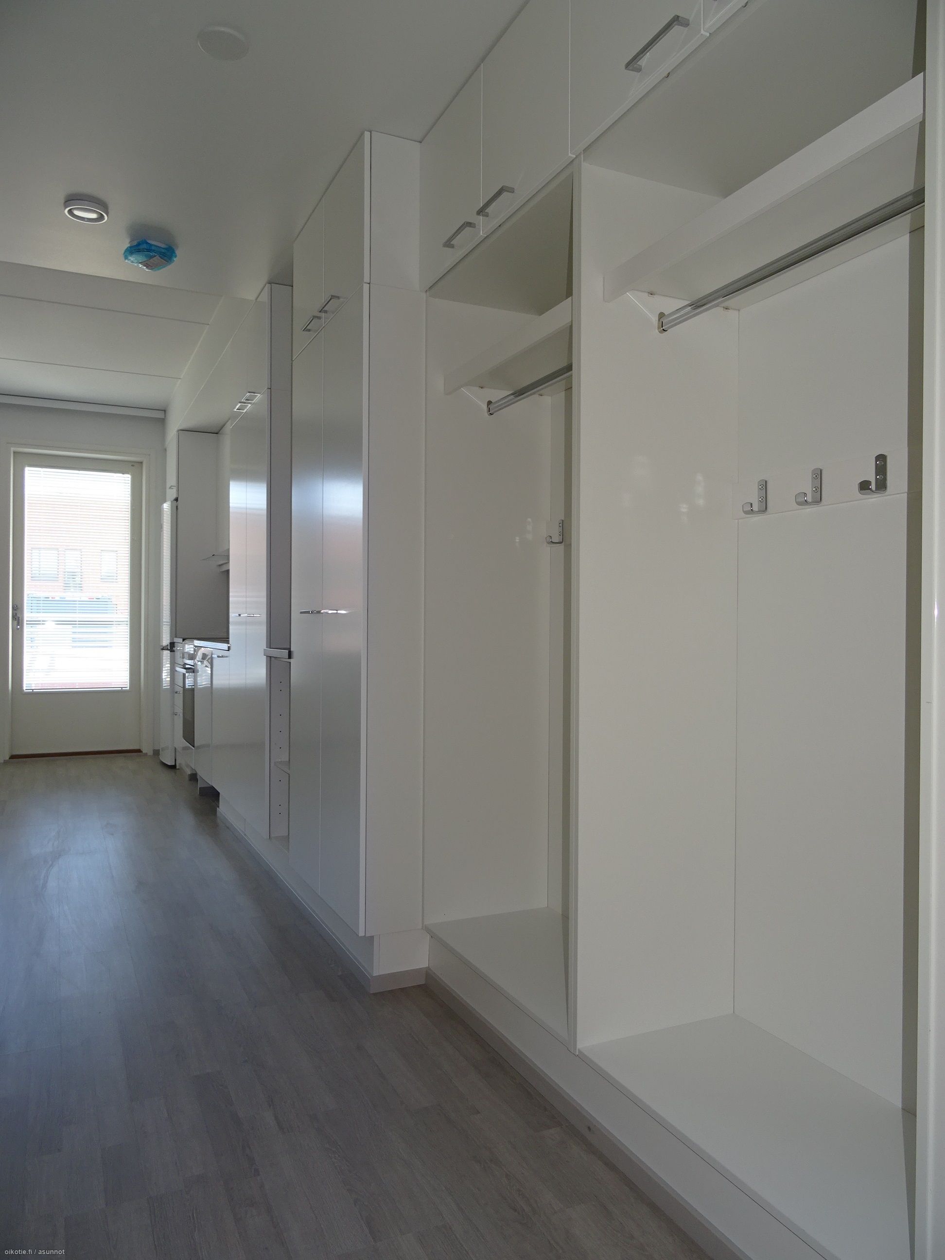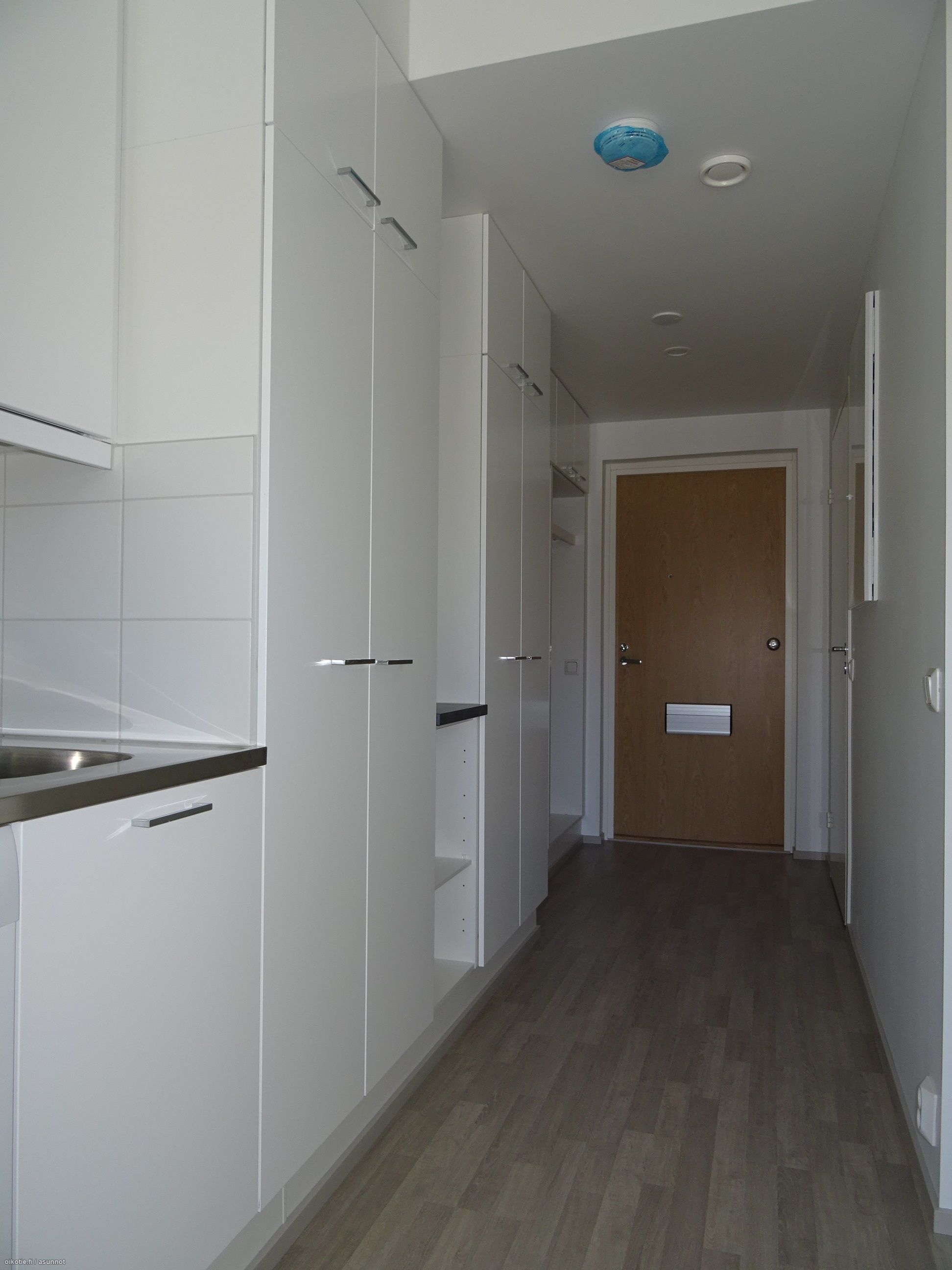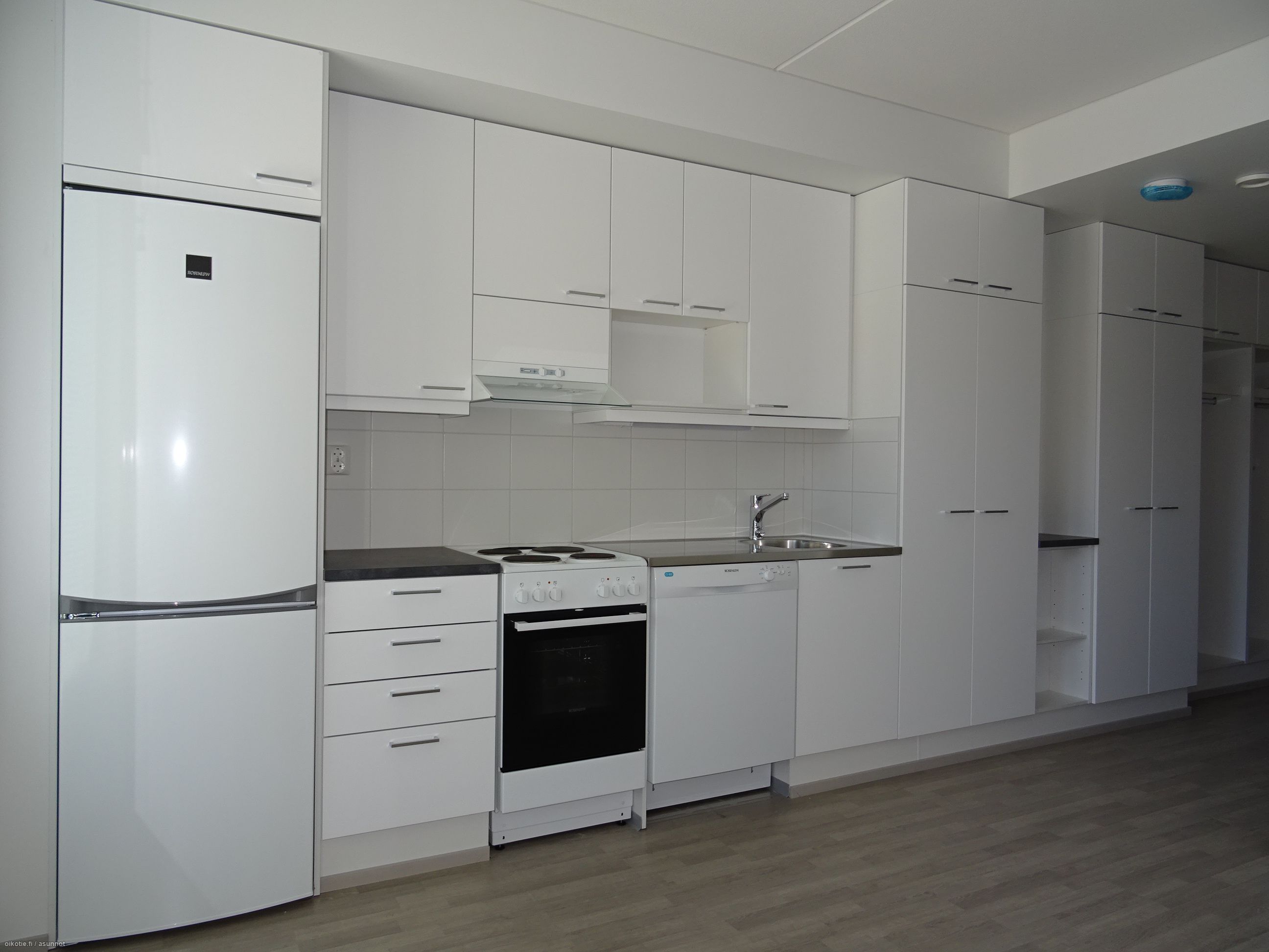 Asunnon värimaailma on vaalea, lattiat vaaleanharmaata tammilaminaattia ja seinät valkoiseksi maalatut. Keittiössä on valkoiset kaapit ja harmaa laminaattitaso. Keittiön varusteluun kuuluu astianpesukone, liesi ja jää-pakastinkaappiyhdistelmä. Kylpyhuoneessa on tilavaraus pyykinpesukoneelle ja kuivausrummulle. Ikkunoissa ja parvekeovissa on valmiina luonnonvalkoiset sälekaihtimet.