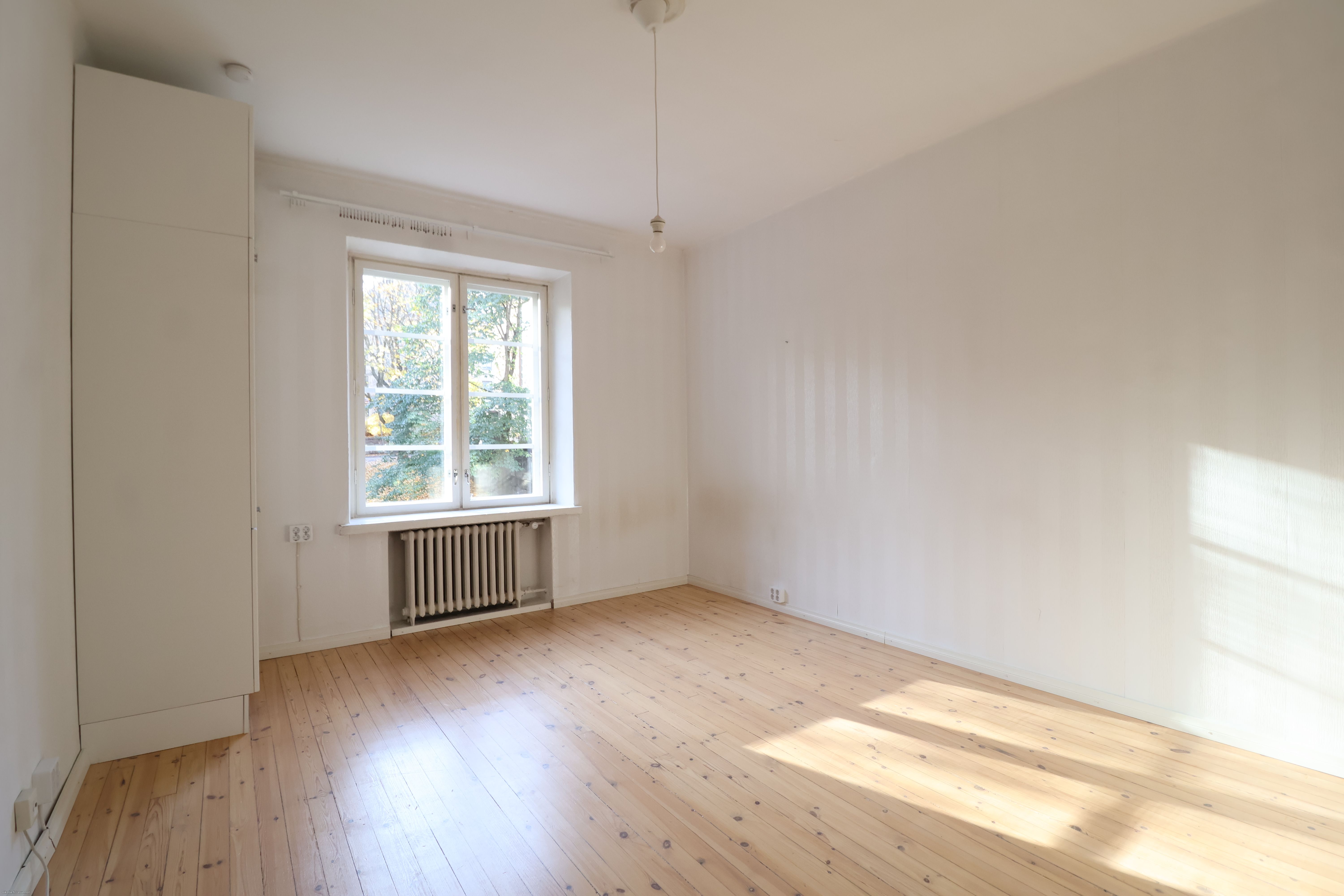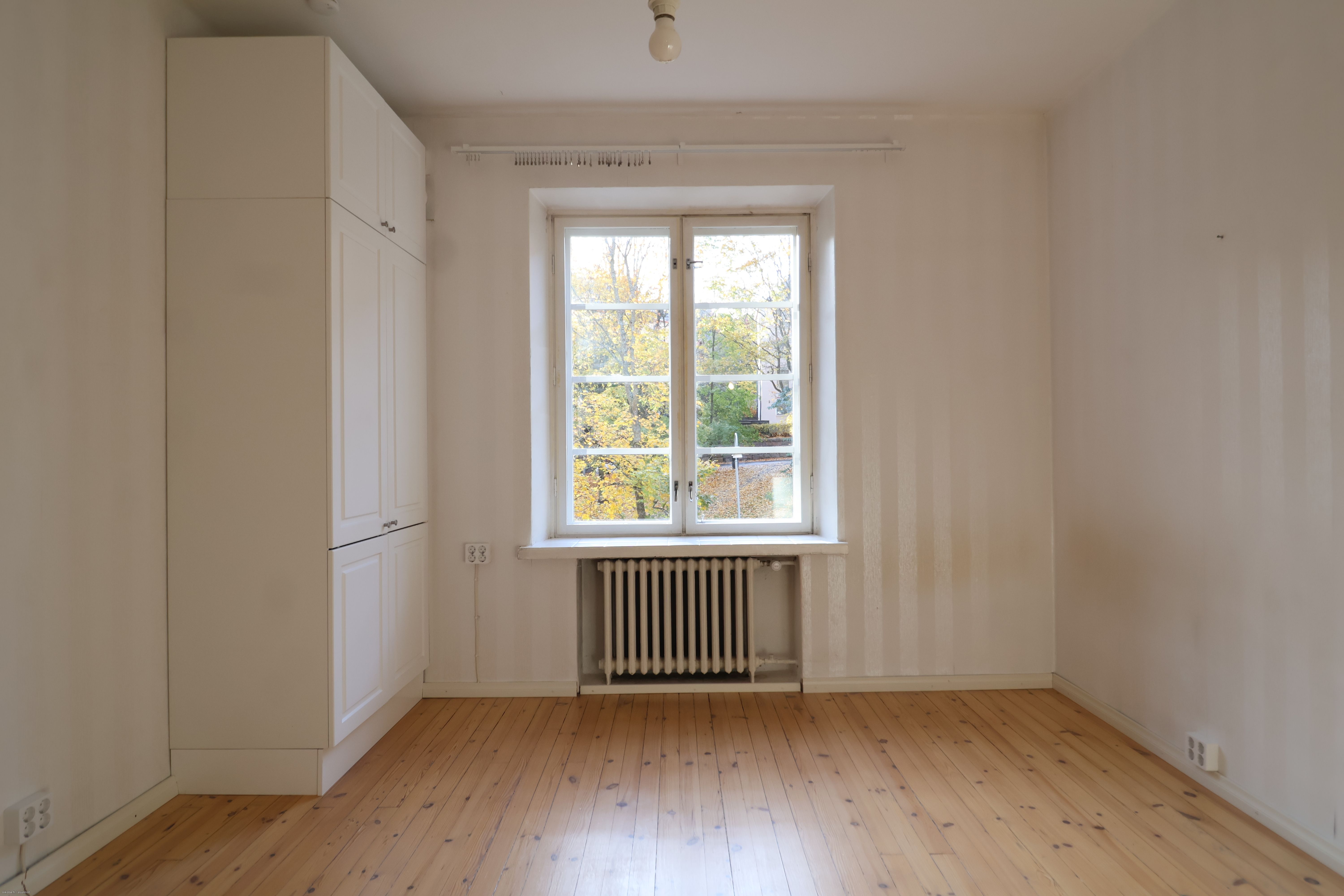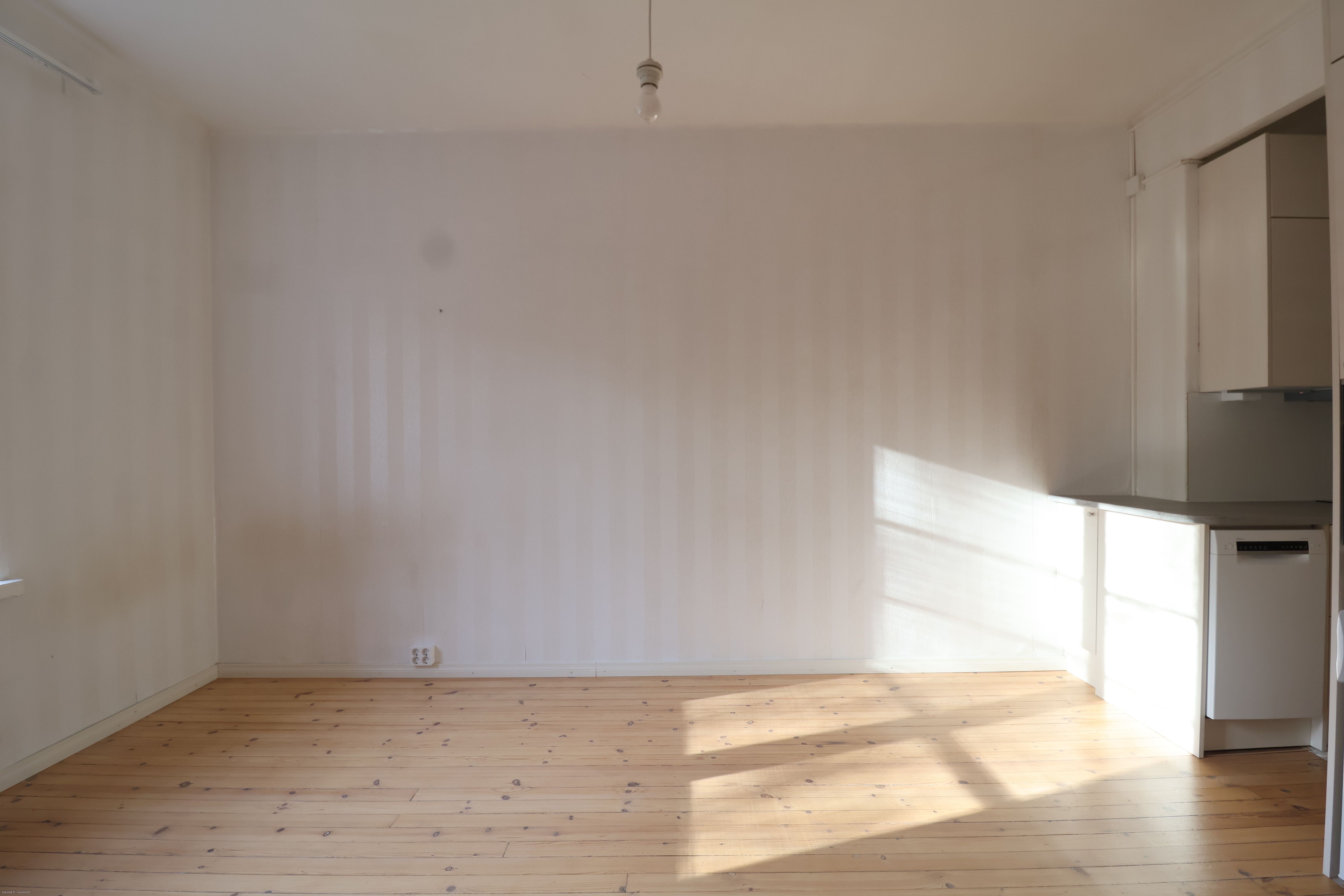 Asunto sijaitsee 4.kerroksesta ja siitä avautuu kauniit maisemat puistoon. Pohjaratkaisu on toimiva: eteinen ja kylpyhuone on erillään päätilasta. Lattia on alkuperäinen lankkulattia ja seinät ovat tapetoitu. Keittiö on remontoitu taidokkaasti: kaappi- ja työskentelytilaa on mukavasti. Varusteluun kuuluvat astianpesukone, uuni, liesi sekä jääkaappi pakastinlokerolla. Kylpyhuoneessa on tehty linjasaneeraus ja sieltä löytyy pyykinpesukone vuokralaisen käyttöön.