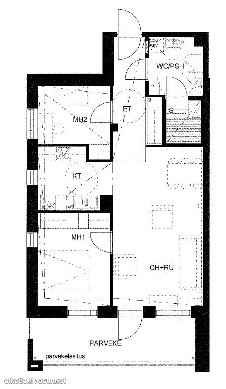 | Huoneiston kokoonpano | 2h,oh,kt,kh,s,las.parv,ahp |