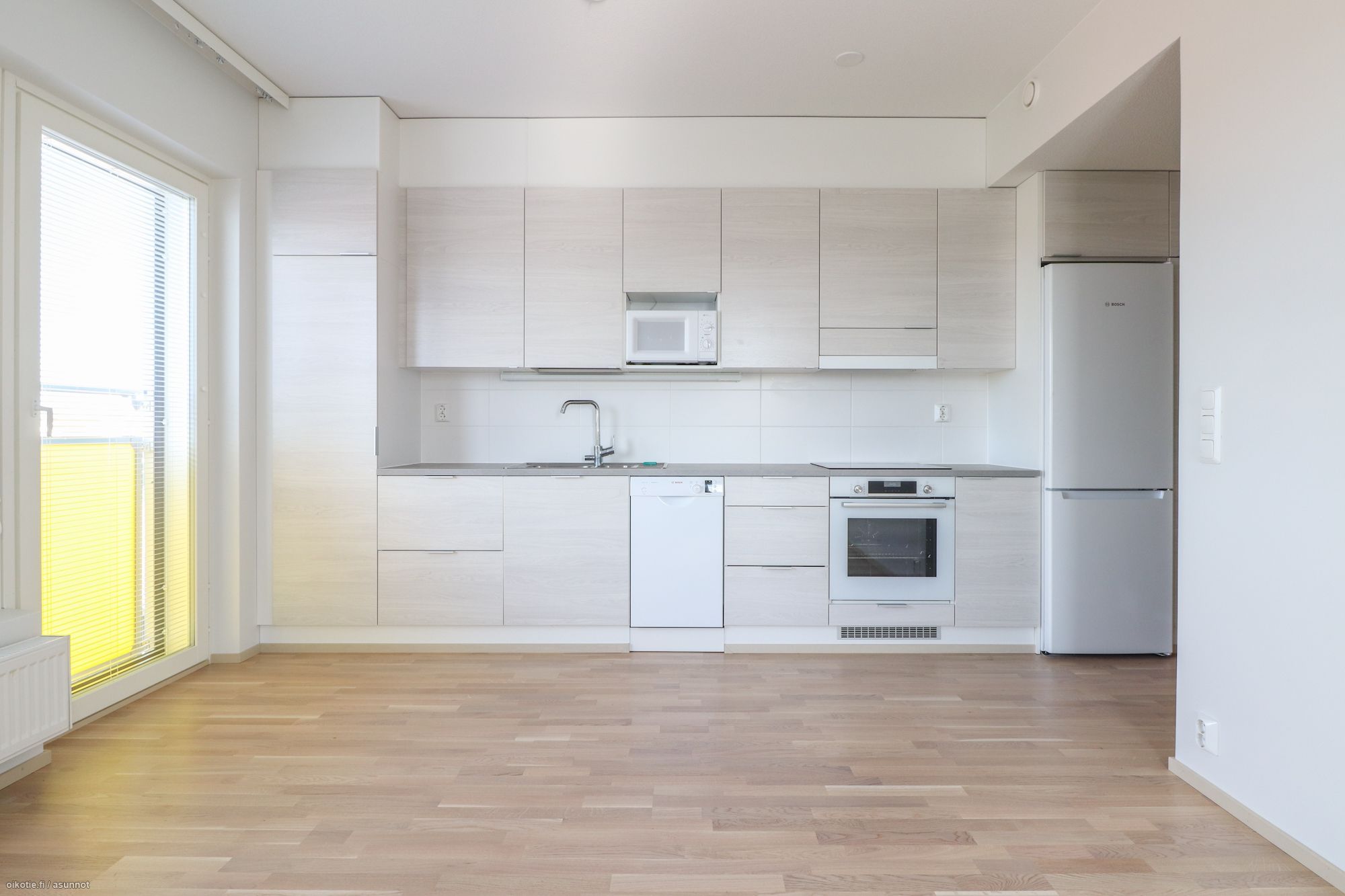 Asunnossa on oma viihtyisä parveke. Huoneistojen seinät valkoisin maalipinnoin, lattiat lautaparkettia. Keittiötilan koneistus on nykyaikainen, jää/pakastinkaappi, astianpesukone ja liesi. Säilytys tilaakin on mukavasti. Kaakeloidussa, tilavassa kylpyhuoneessa on liitäntä pyykkikoneelle, myös lämmön talteenotto / ilmanvaihto on huonekohtainen. Hox! Kuvat vastaavanlaisesta asunnosta samasta talosta.