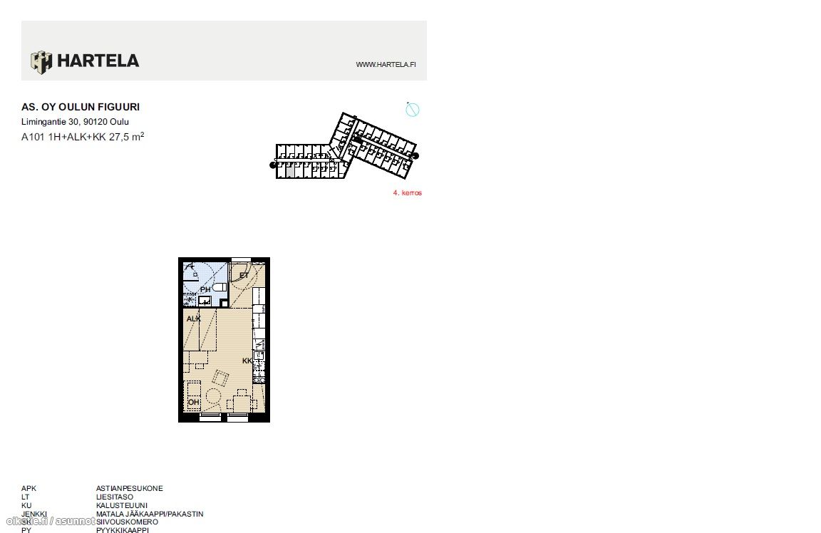| Huoneiston kokoonpano | 1h,kk,kh,rp |