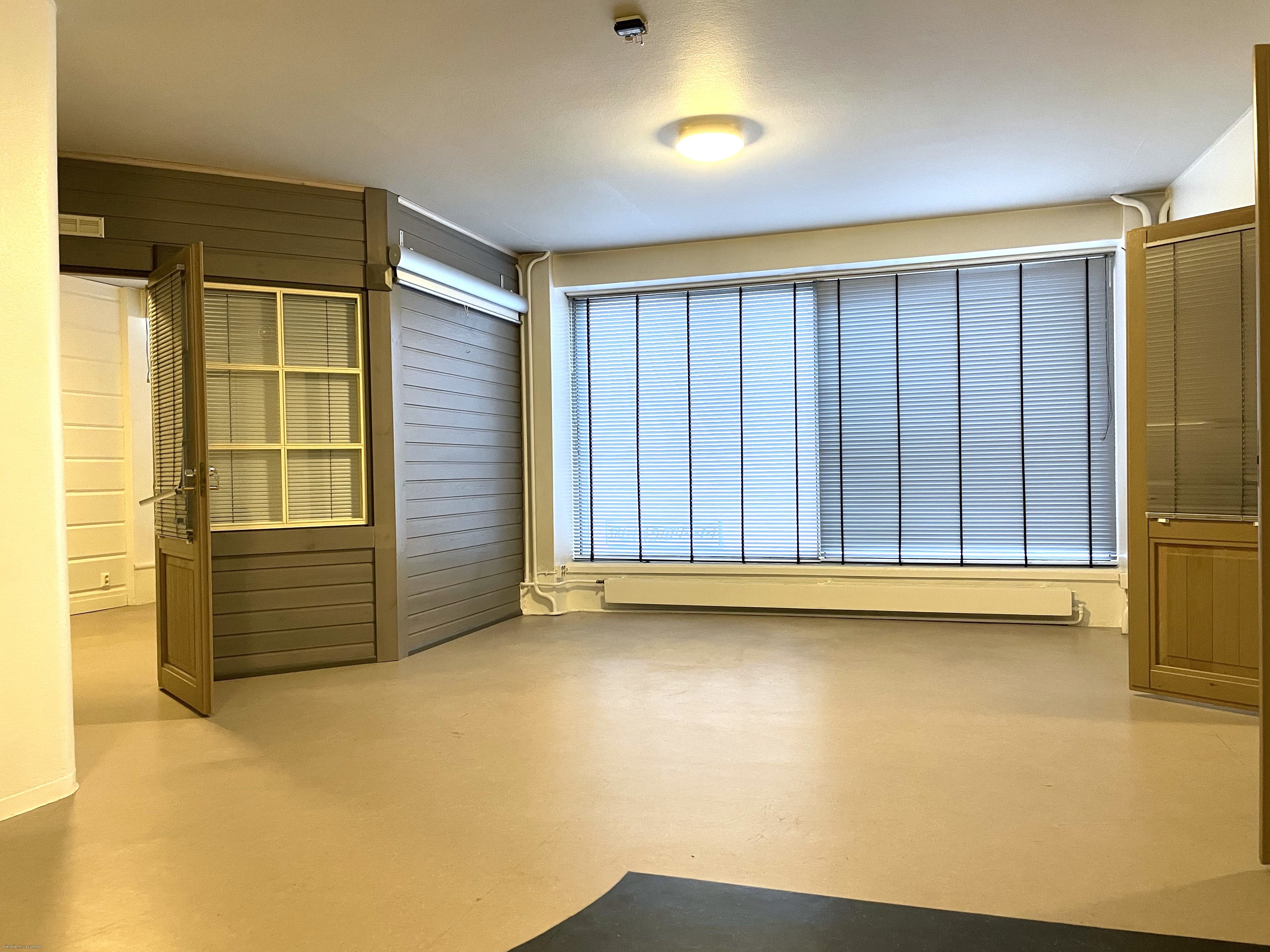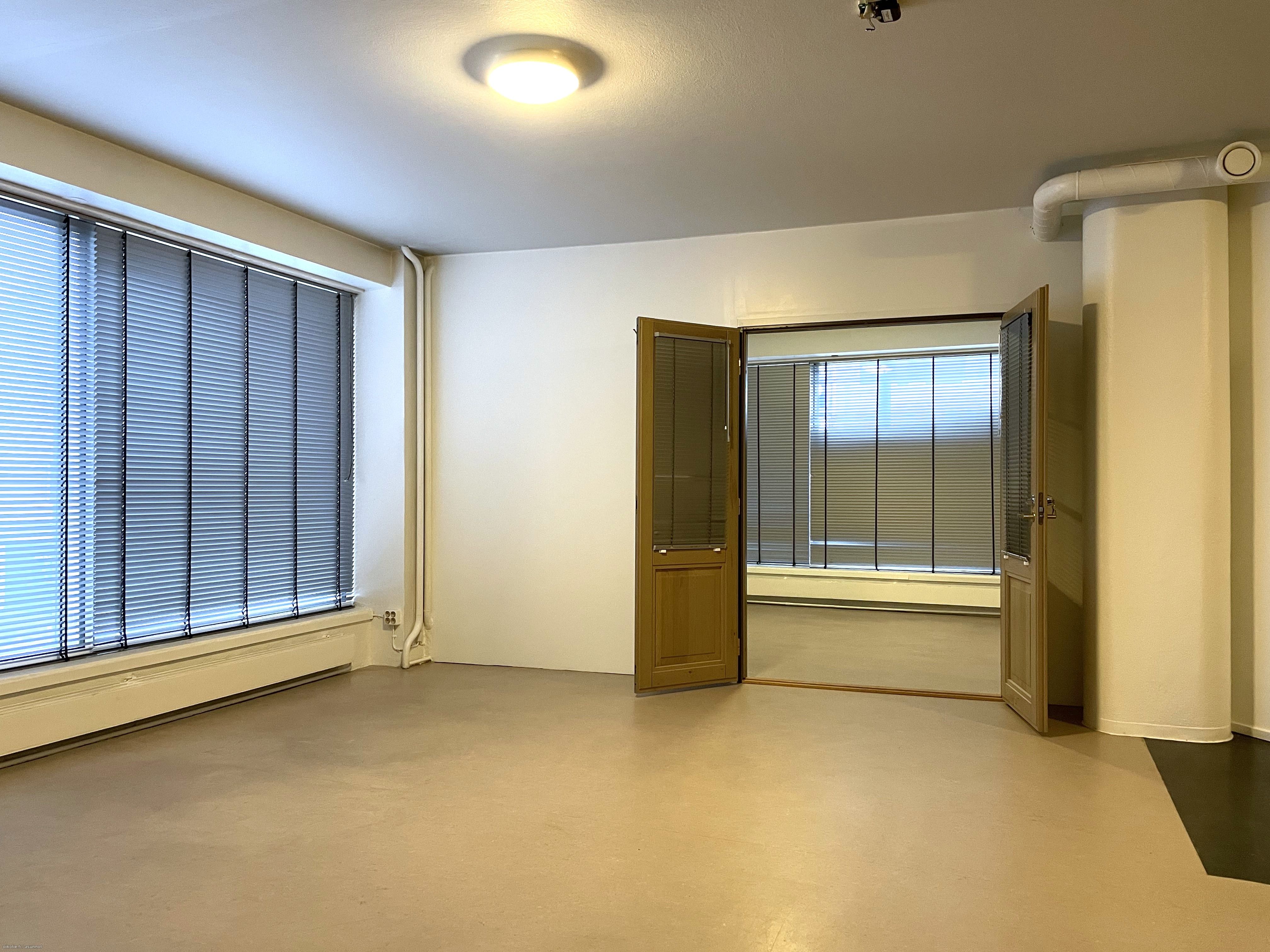Ydinkeskustassa, hyvällä paikalla valoisa toimitila talon toisessa kerroksessa. Tilassa on kolme erillistä huonetta, jotka soveltuvat toimistohuoneiksi. Huoneisiin käydään avotilasta, jossa on myös keittiövarustelu. Lisäksi yksi yhtenäinen tila, jonka voi tarvittaessa jakaa esimerkiksi sermeillä.