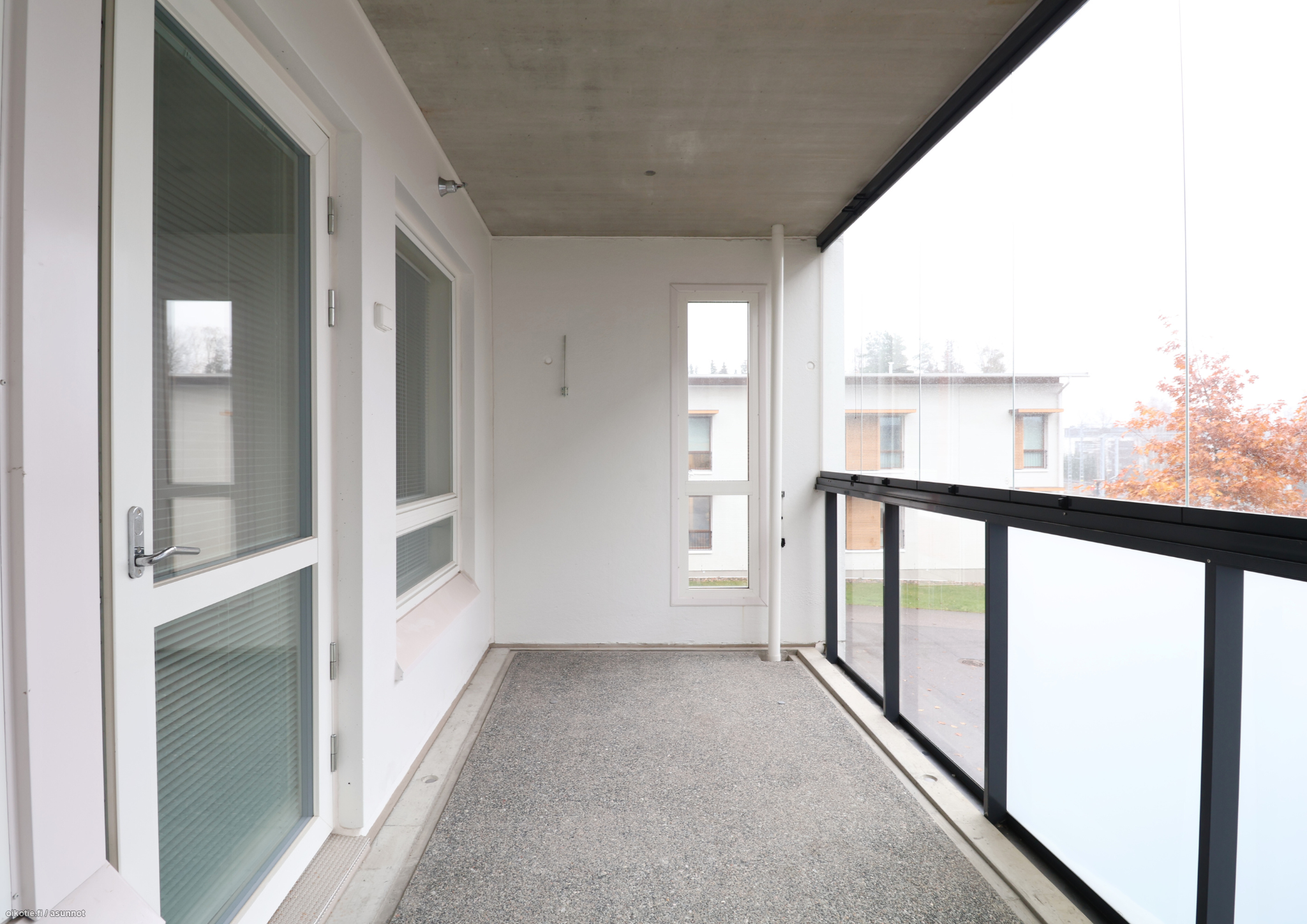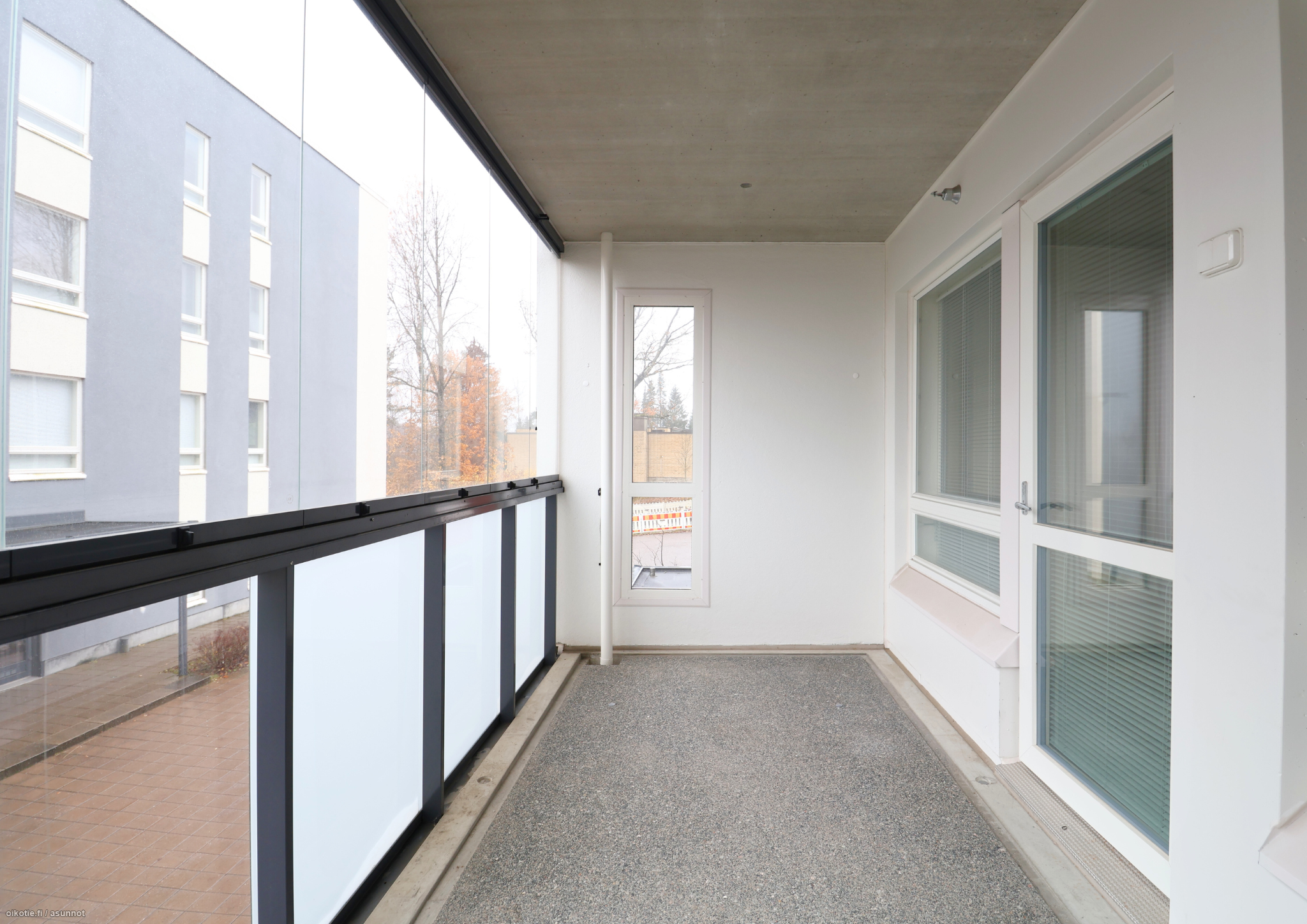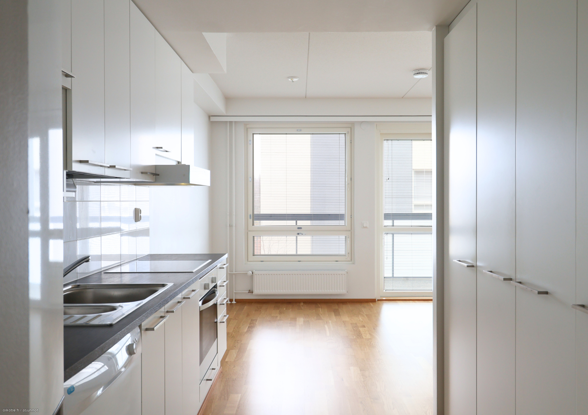 Asunnossa tyylikäs laminaattilattia ja seinät vaalealla maalipinnalla. Keittiön varusteluun kuuluu mm. jääkaappi ja pakastin, astianpesukone sekä uuni. Kaakeloidussa kylpyhuoneessa tilaa ja liitäntä pyykinpesukoneelle. Tilava lasitettu parveke tuo lisätilaa asumiseen.