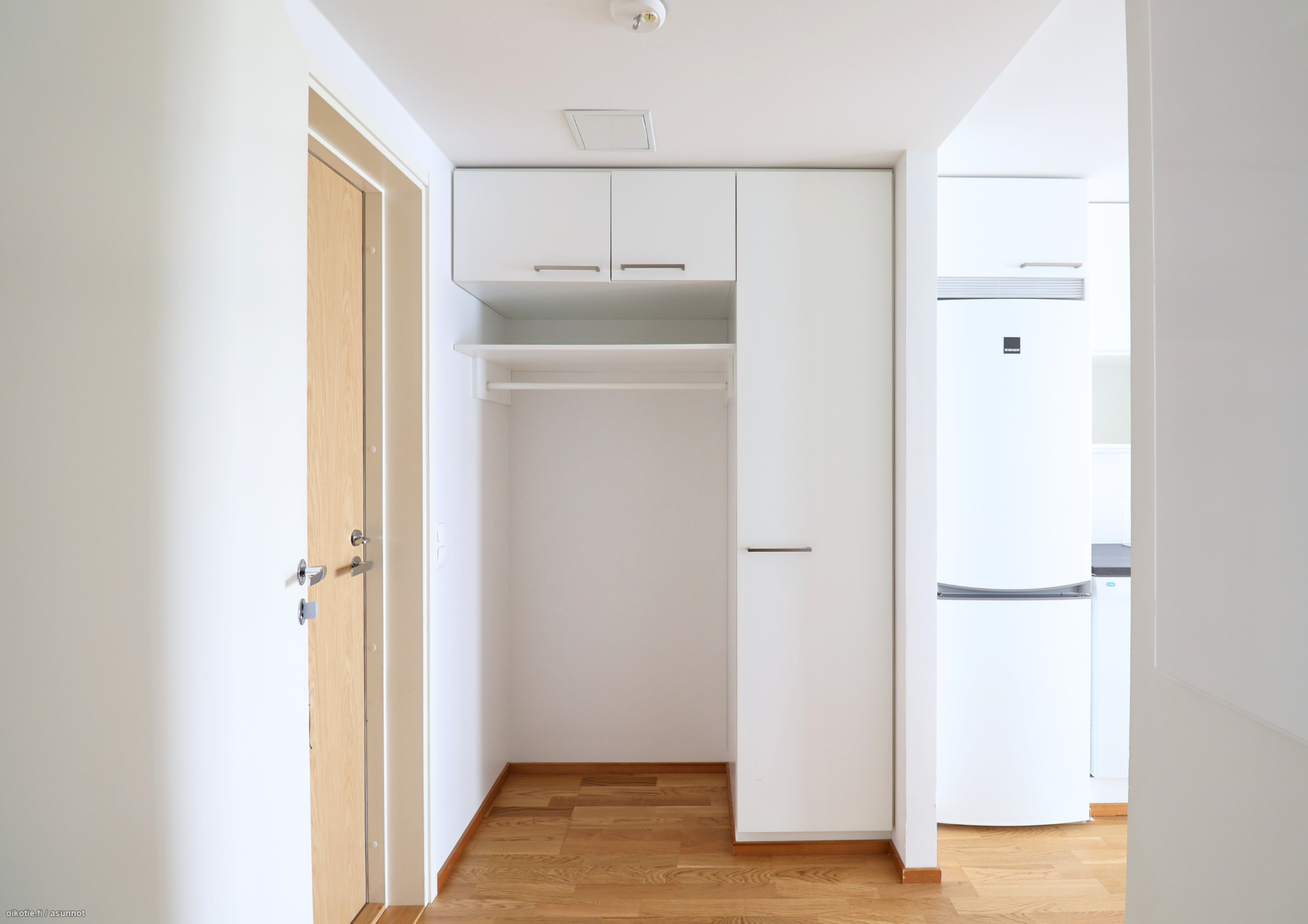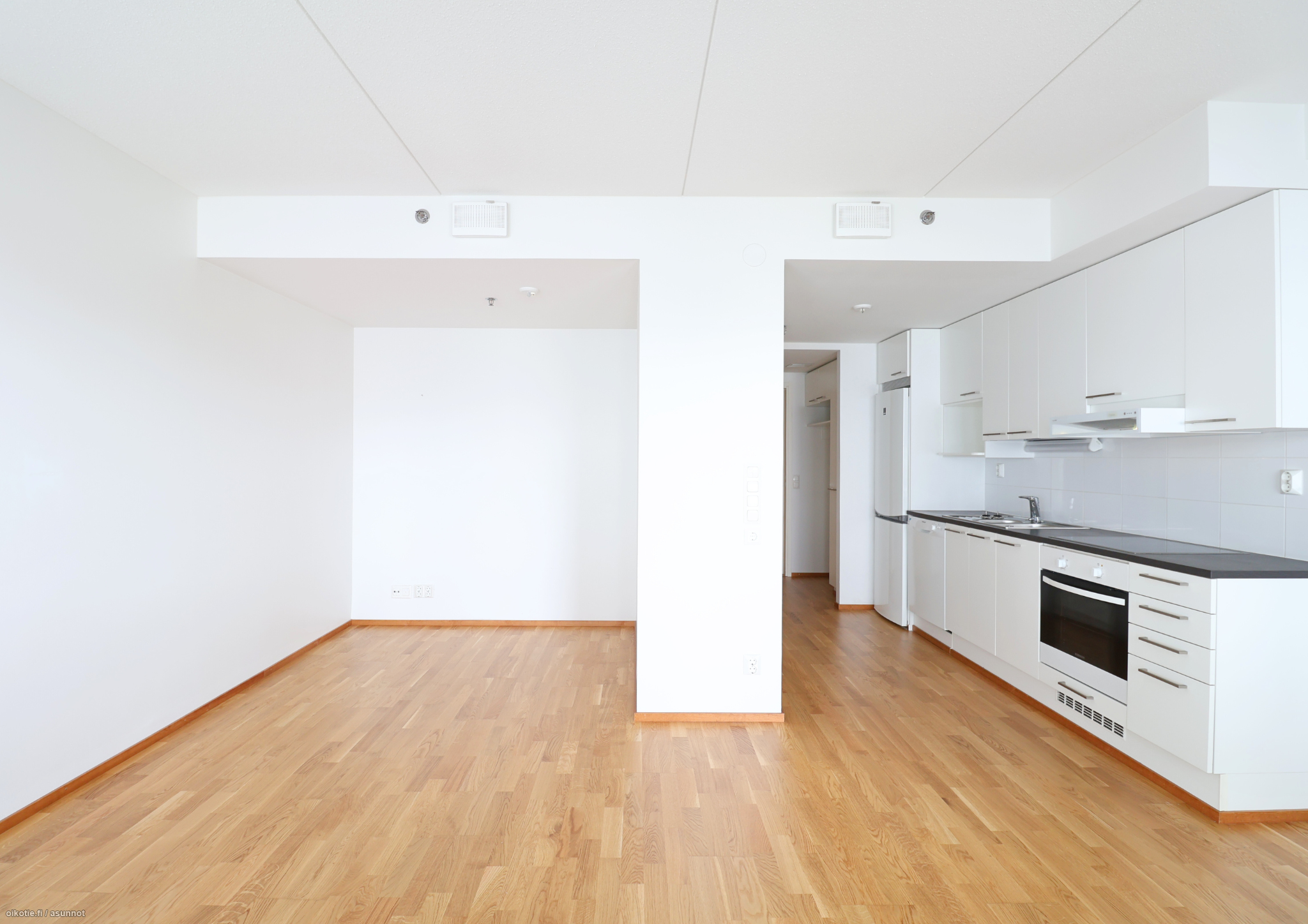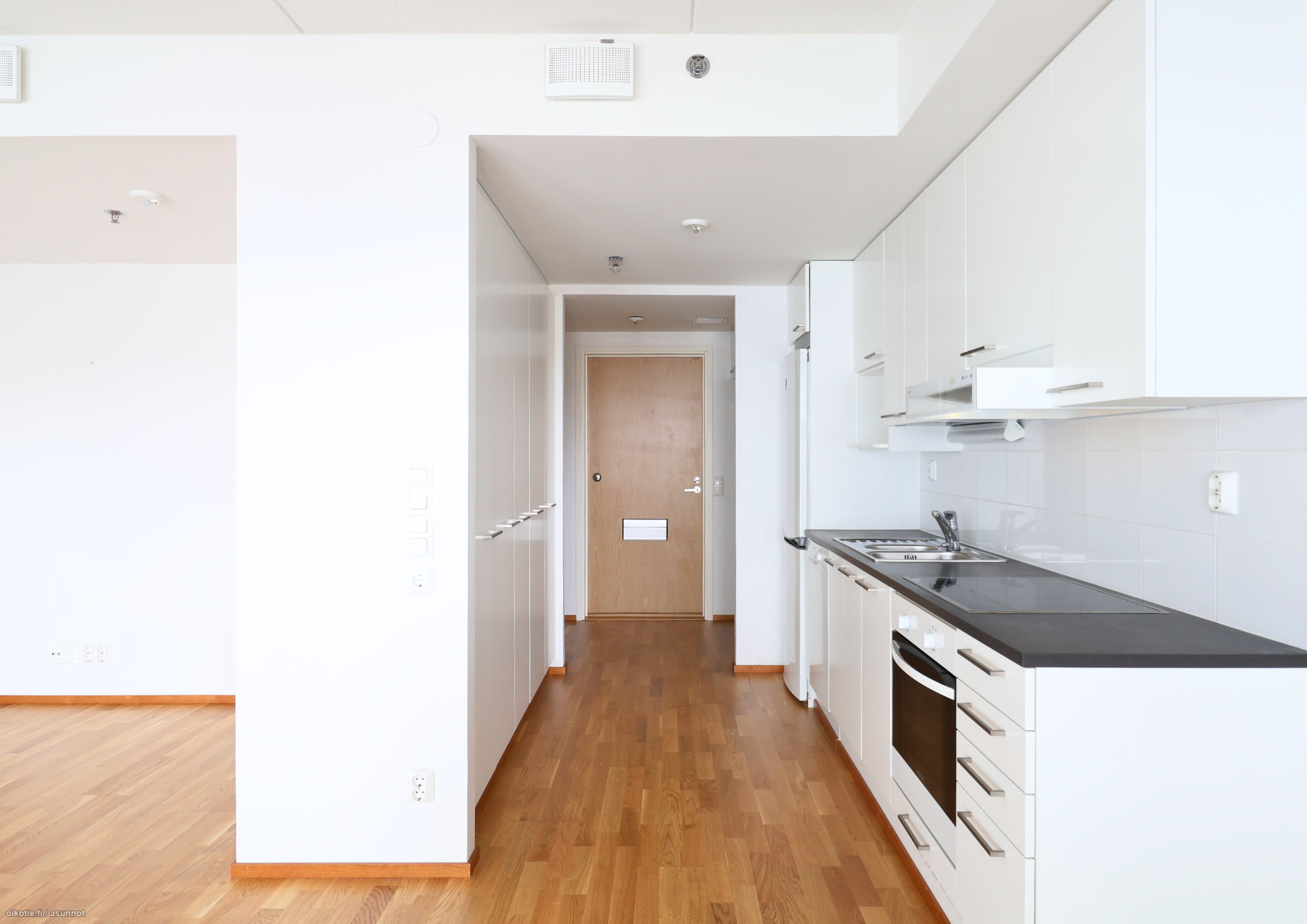 Asunnossa tyylikäs laminaattilattia ja seinät vaalealla maalipinnalla. Keittiön varusteluun kuuluu mm. jääkaappi ja pakastin, astianpesukone sekä uuni. Kaakeloidussa kylpyhuoneessa tilaa ja liitäntä pyykinpesukoneelle. Tilava lasitettu parveke tuo lisätilaa asumiseen.
