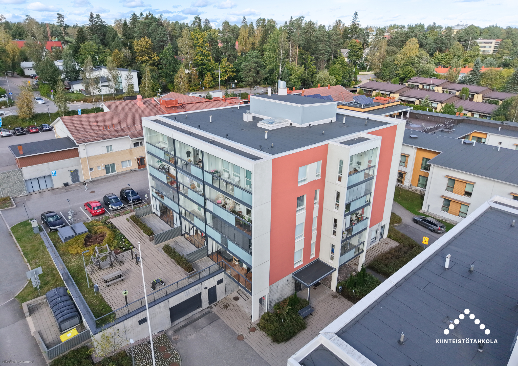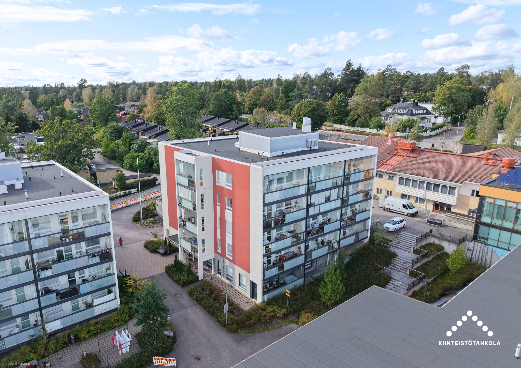 Alueen liikenneyhteydet ovat loistavat. Lähin bussipysäkki sijaitsee vain muutaman sadan metrin päässä asunnolta. Myös Kauniaisten juna-asema sijaitsee alle kilometrin päässä. Junalla hurautat Helsinkiin alle 20 minuutissa.