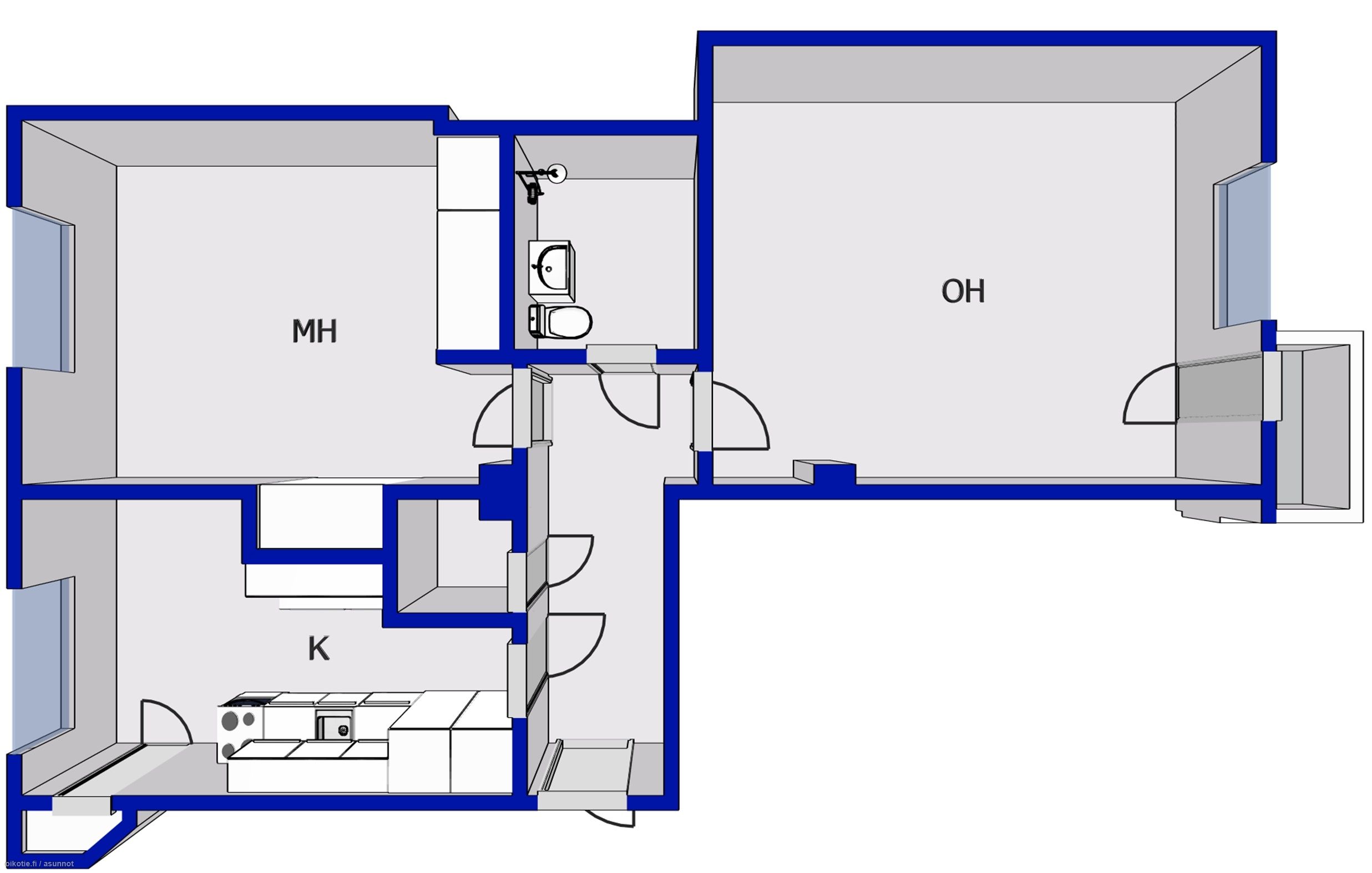 | Huoneiston kokoonpano | 2h,k,kh,parv |