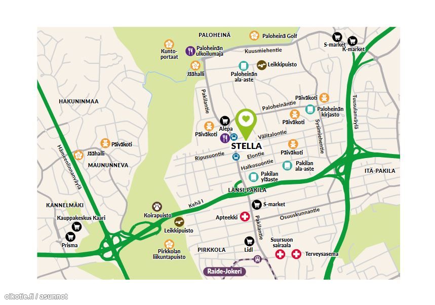 As Oy Helsingin Stella valmistui 2023 viihtyisälle paikalle, josta on lyhyt matka pääkaupunkiseudun aktiviteetteihin ja palveluihin sekä läheisiin, upeisiin liikuntamaastoihin. Pakila ja Paloheinän läheisyys sopiikin erinomaisesti asuinpaikaksi, kun halutaan nauttia luonnosta ja ulkoilusta sekä pääkaupunkiseudun erinomaisesta palvelutasosta. Pakilan taajamakeskuksen palveluihin on lyhyt matka ja Kauppakeskus Kaari sijaitsee muutaman kilometrin päässä. Raide-Jokeri valmistuu reilun kilometrin päähän pian.