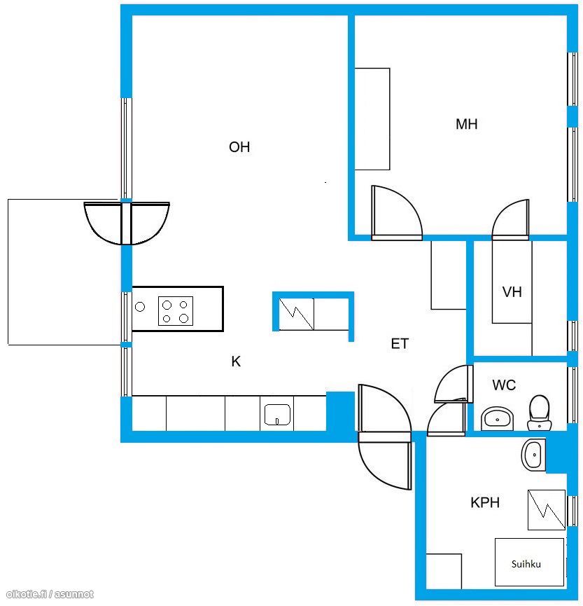 | Huoneiston kokoonpano | 2h+kt |
