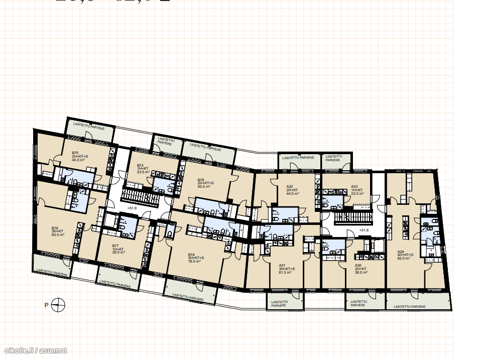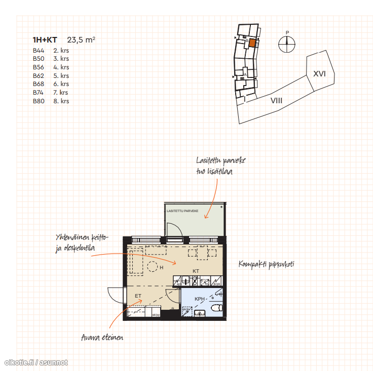 | Huoneiston kokoonpano | 1h,kt,parv. |