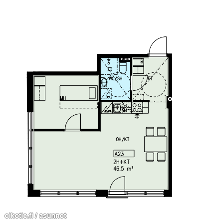 | Huoneiston kokoonpano | 2h+kt |
