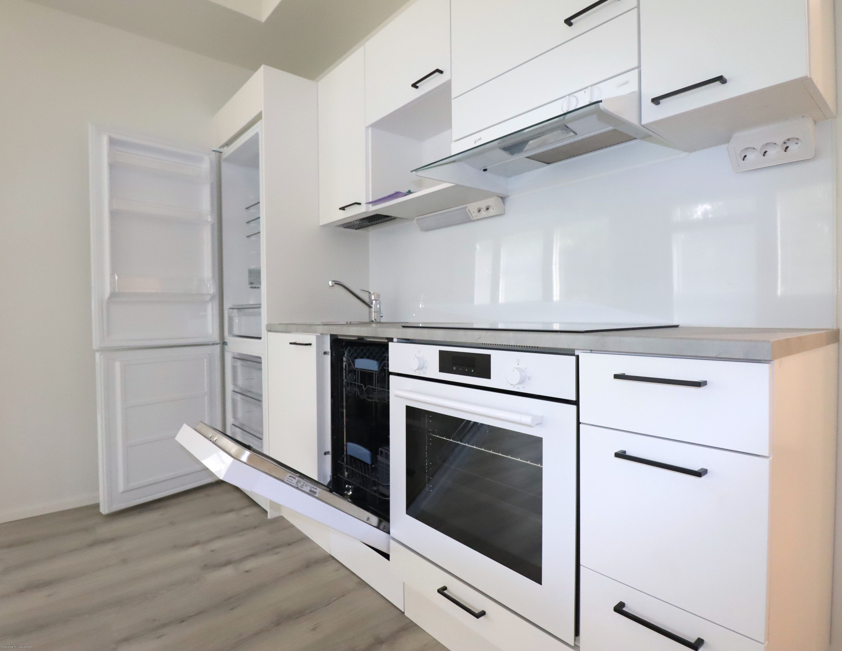 Keittiön varusteluun kuuluu jääkaappipakastin, keraaminen liesi, erillisuuni, sekä astianpesukone. Kylpyhuoneessa on tilaa ja liitännät pyykinpesukoneelle.