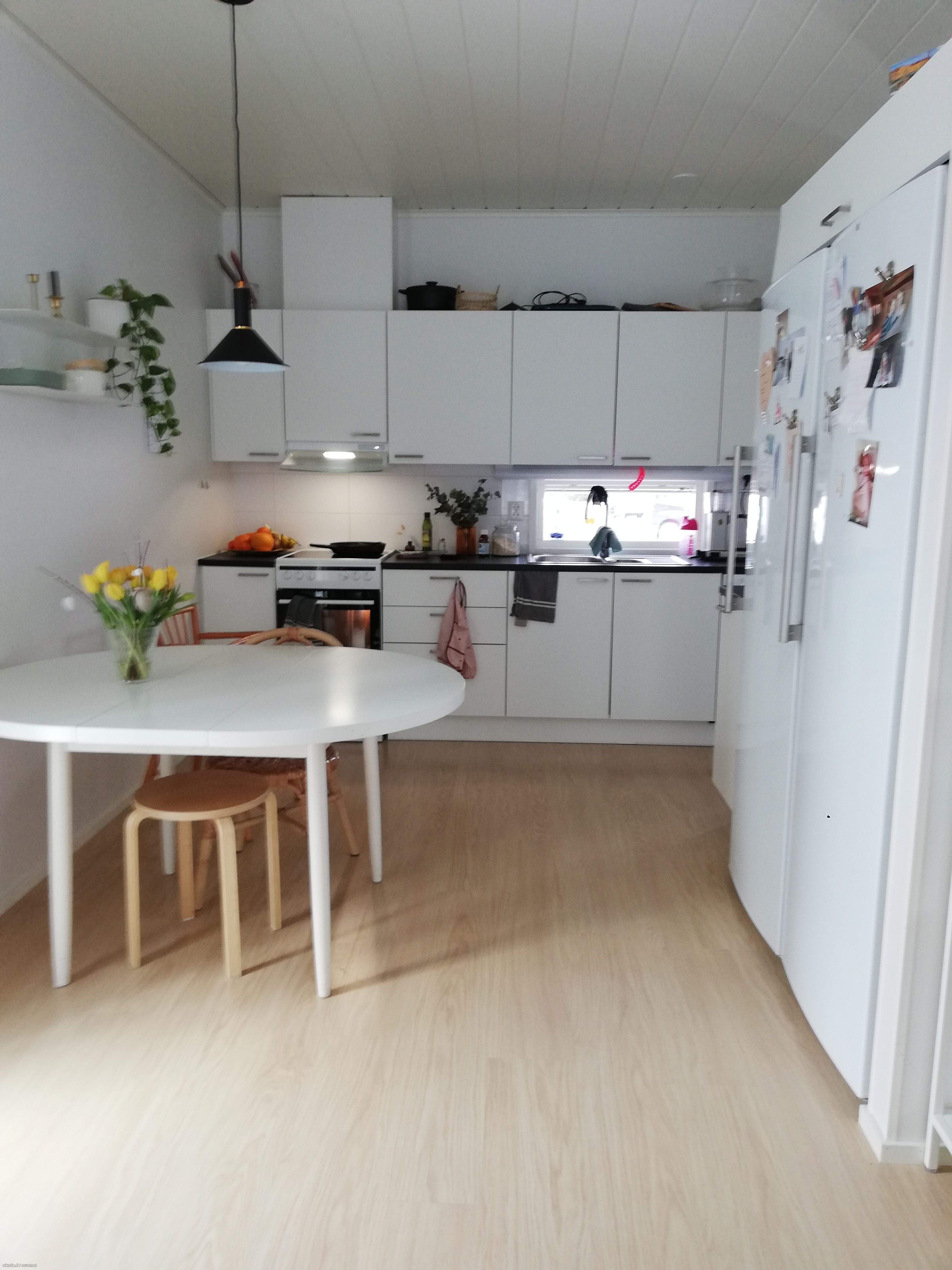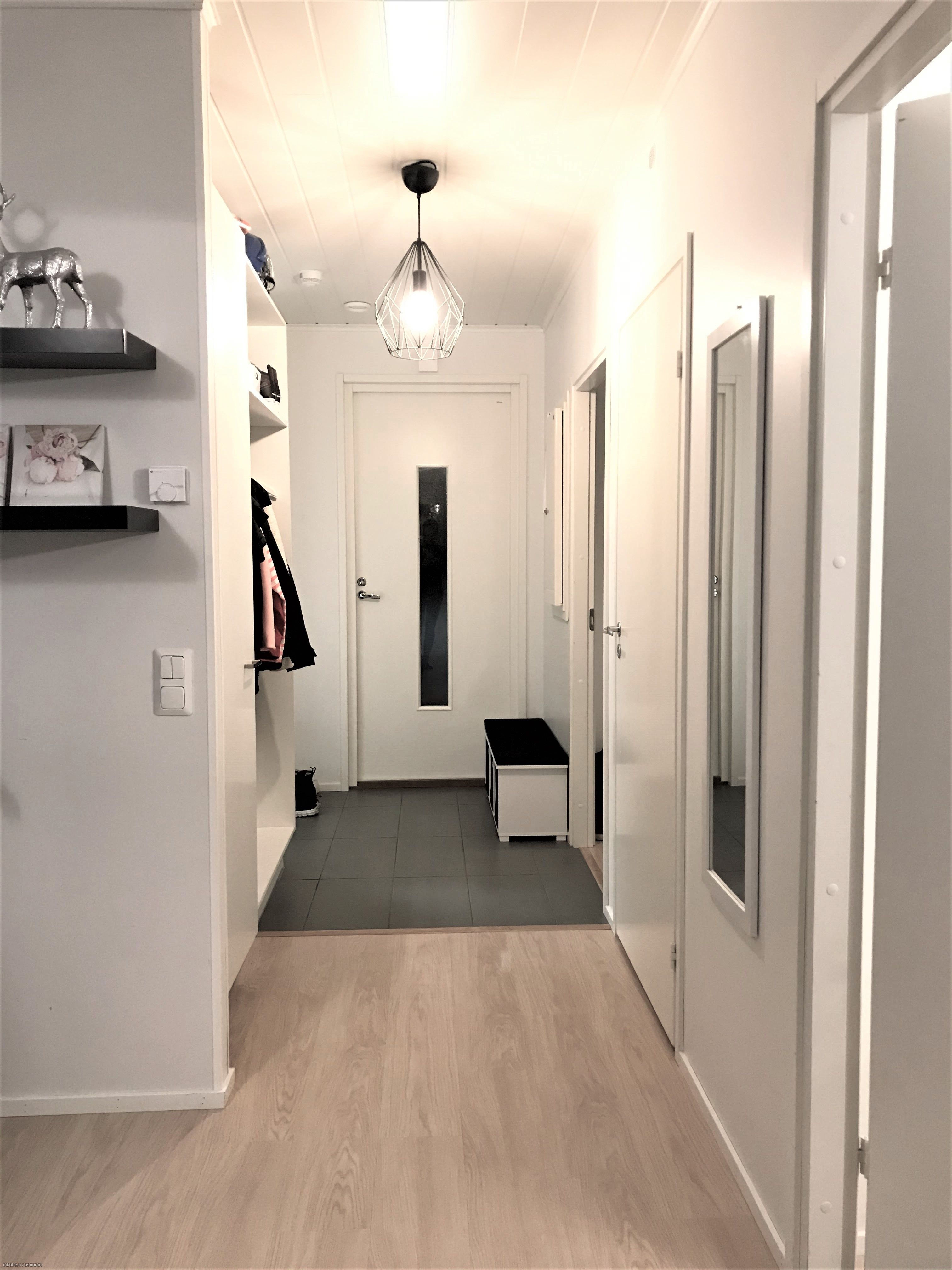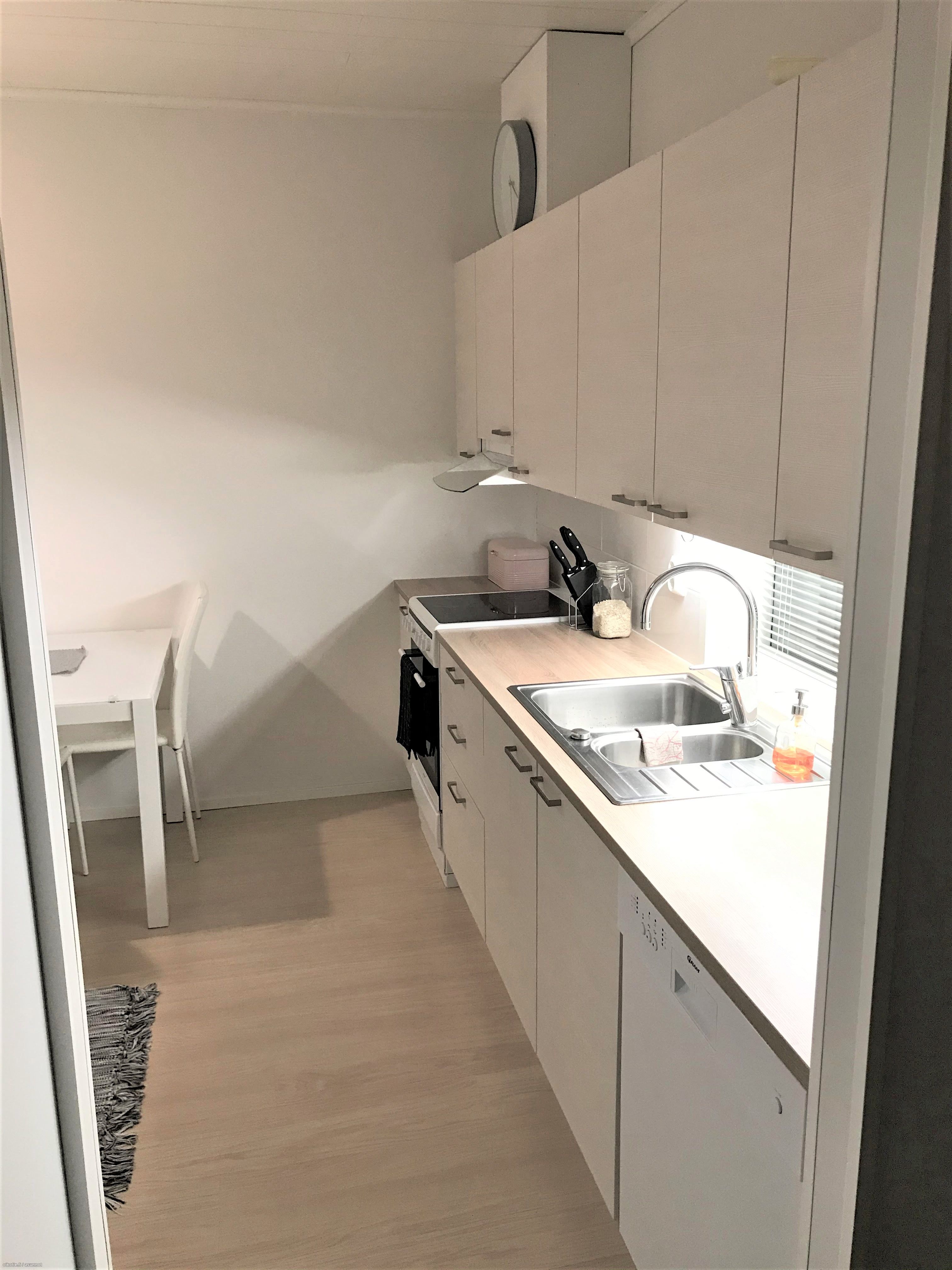 Viihtyisän kolmion lattiat laminaattia olohuoneissa, keittiöissä ja makuuhuoneissa ja muissa tiloissa on kaakelia. Seinäpinnat on valkoiseksi maalatut. Keittiö on varustettu astianpesukoneella, jääpakastinkaapilla, keraamisella liedellä ja erillisuunilla. Laadukkaat kalusteet ovat Topi-Keittiön mallistoa. Asunto lämpiää mukavasti vesikiertoisella lattialämmityksellä, joka sisältyy kaukolämpötalossa vuokraan. Huoneistovarasto löytyy ulko-oven vierestä. Pihassa lapsille leikkipaikka sekä beach volley-kenttä ja alueella mukavat lenkkeilymahdollisuudet. Mukana vuokrataan autopaikka hintaan 20€/kk. Lämmitys ja DNA netti sisältyy vuokran hintaan.