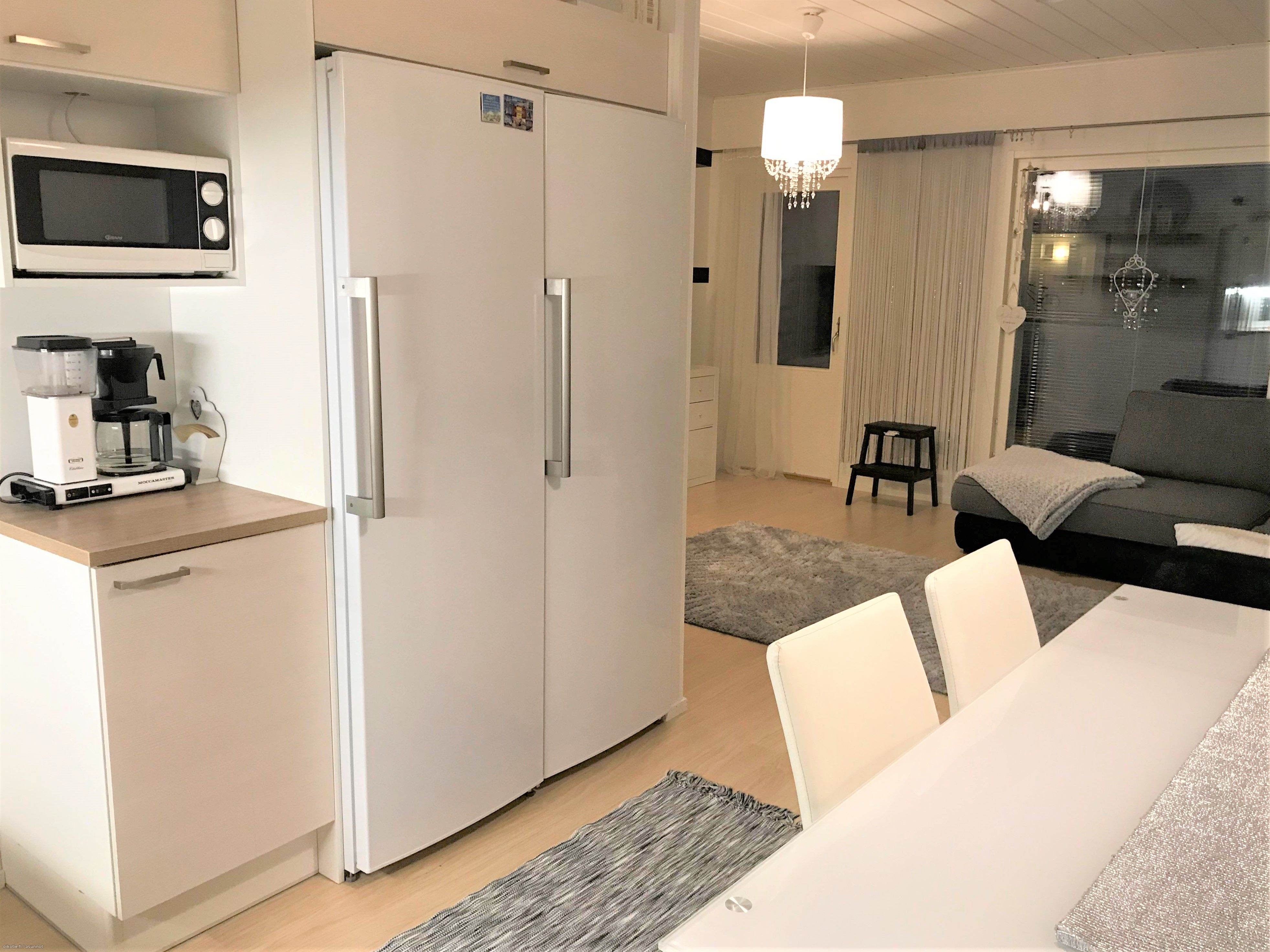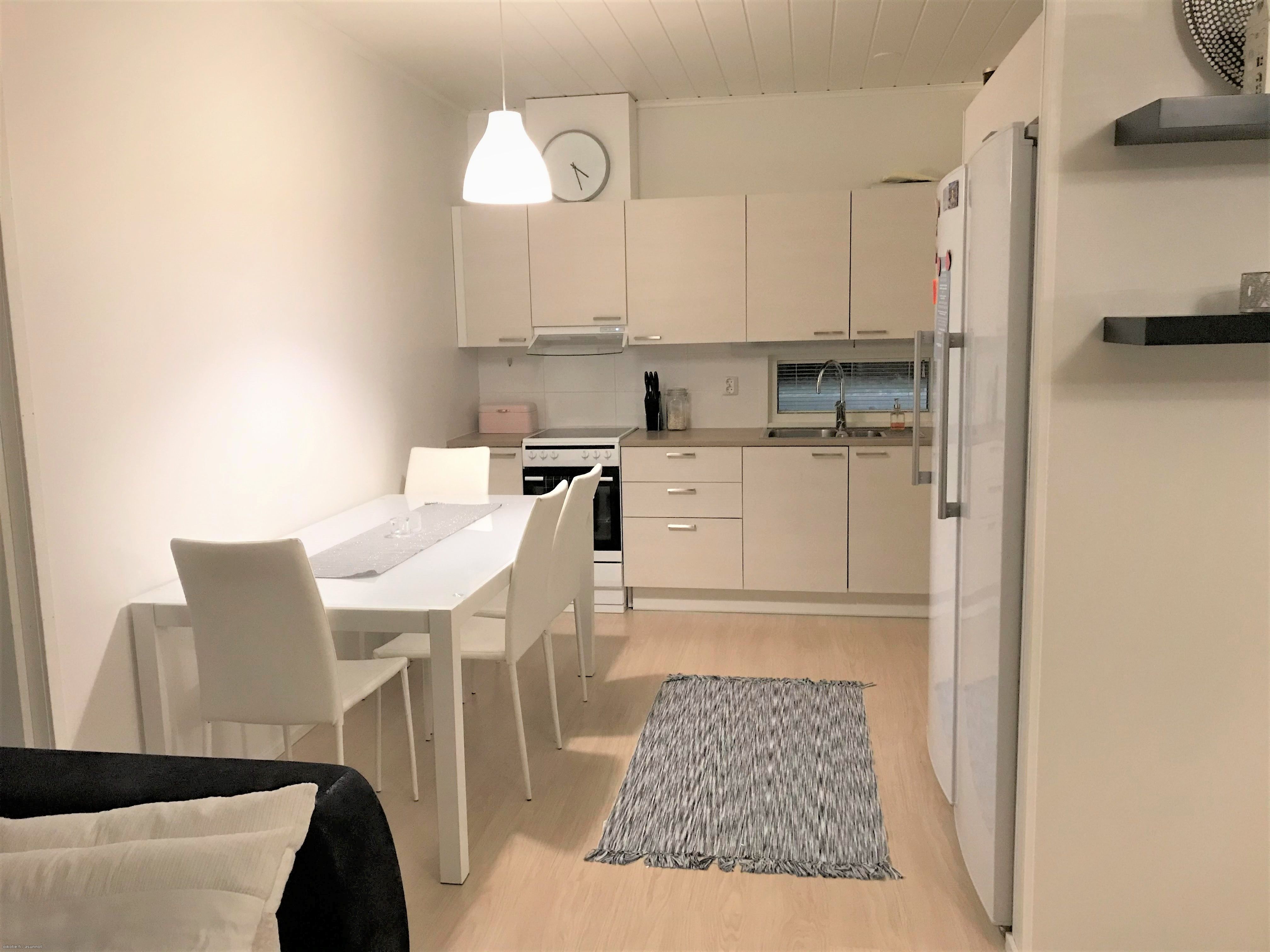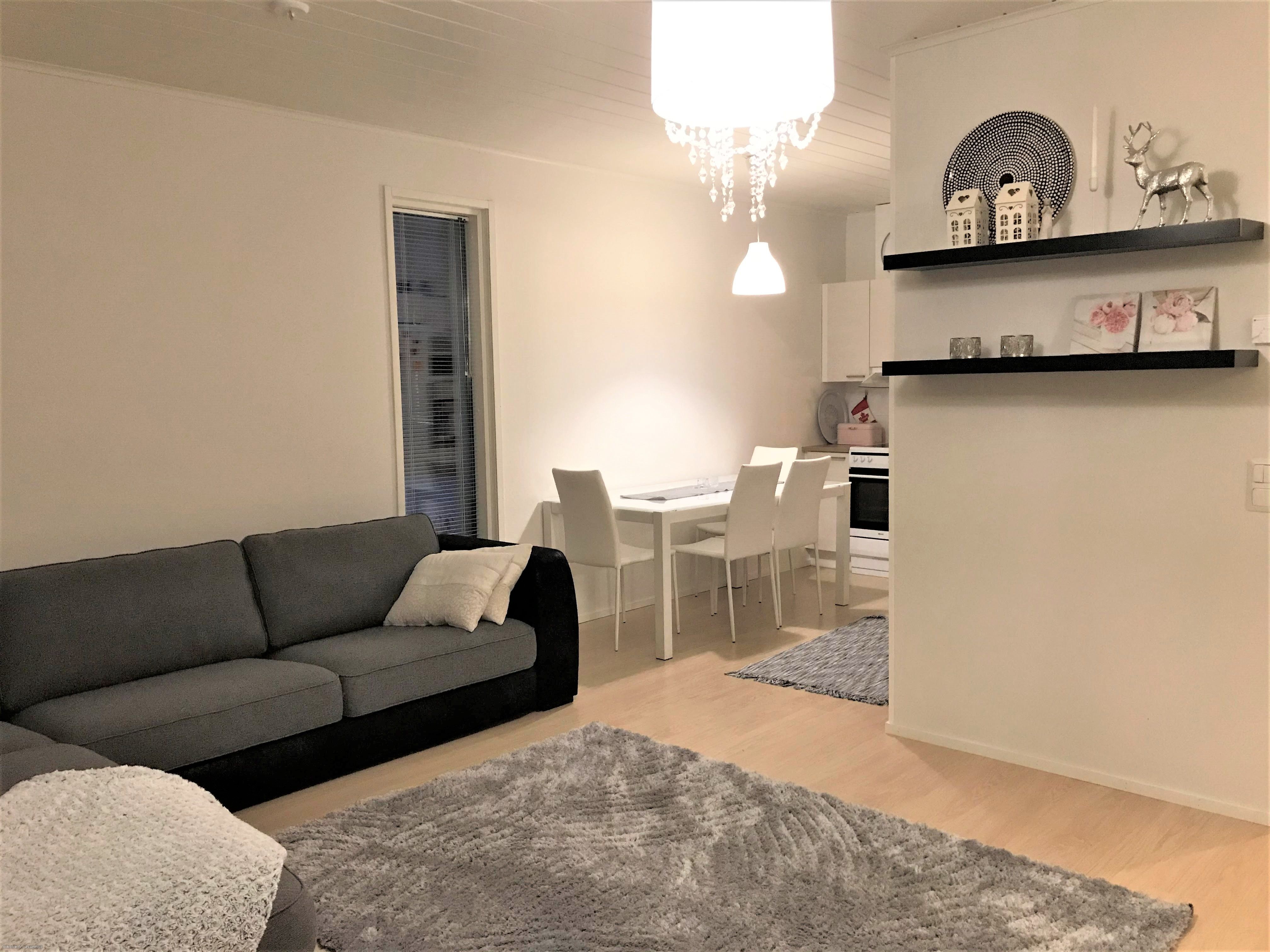 Viihtyisän kolmion lattiat laminaattia olohuoneissa, keittiöissä ja makuuhuoneissa ja muissa tiloissa on kaakelia. Seinäpinnat on valkoiseksi maalatut. Keittiö on varustettu astianpesukoneella, jääpakastinkaapilla, keraamisella liedellä ja erillisuunilla. Laadukkaat kalusteet ovat Topi-Keittiön mallistoa. Asunto lämpiää mukavasti vesikiertoisella lattialämmityksellä, joka sisältyy kaukolämpötalossa vuokraan. Huoneistovarasto löytyy ulko-oven vierestä. Pihassa lapsille leikkipaikka sekä beach volley-kenttä ja alueella mukavat lenkkeilymahdollisuudet. Mukana vuokrataan autopaikka hintaan 20€/kk. Lämmitys ja DNA netti sisältyy vuokran hintaan.