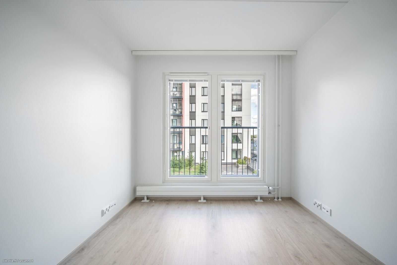 Asunnossa laminaattilattia ja seinät vaalealla maalipinnalla. Ikkunoissa ja parvekeovissa on sälekaihtimet. Keittiöstä löytyy jääkaappi pakastinlokerolla, uuni/liesi ja astianpesukone. Kylpyhuoneessa tilaa ja liitäntä pyykinpesukoneelle. Talo lämpiää kaukolämmöllä, lämmitys sisältyy vuokraan (pois lukien kylpyhuoneen sähköinen lattialämmitys).