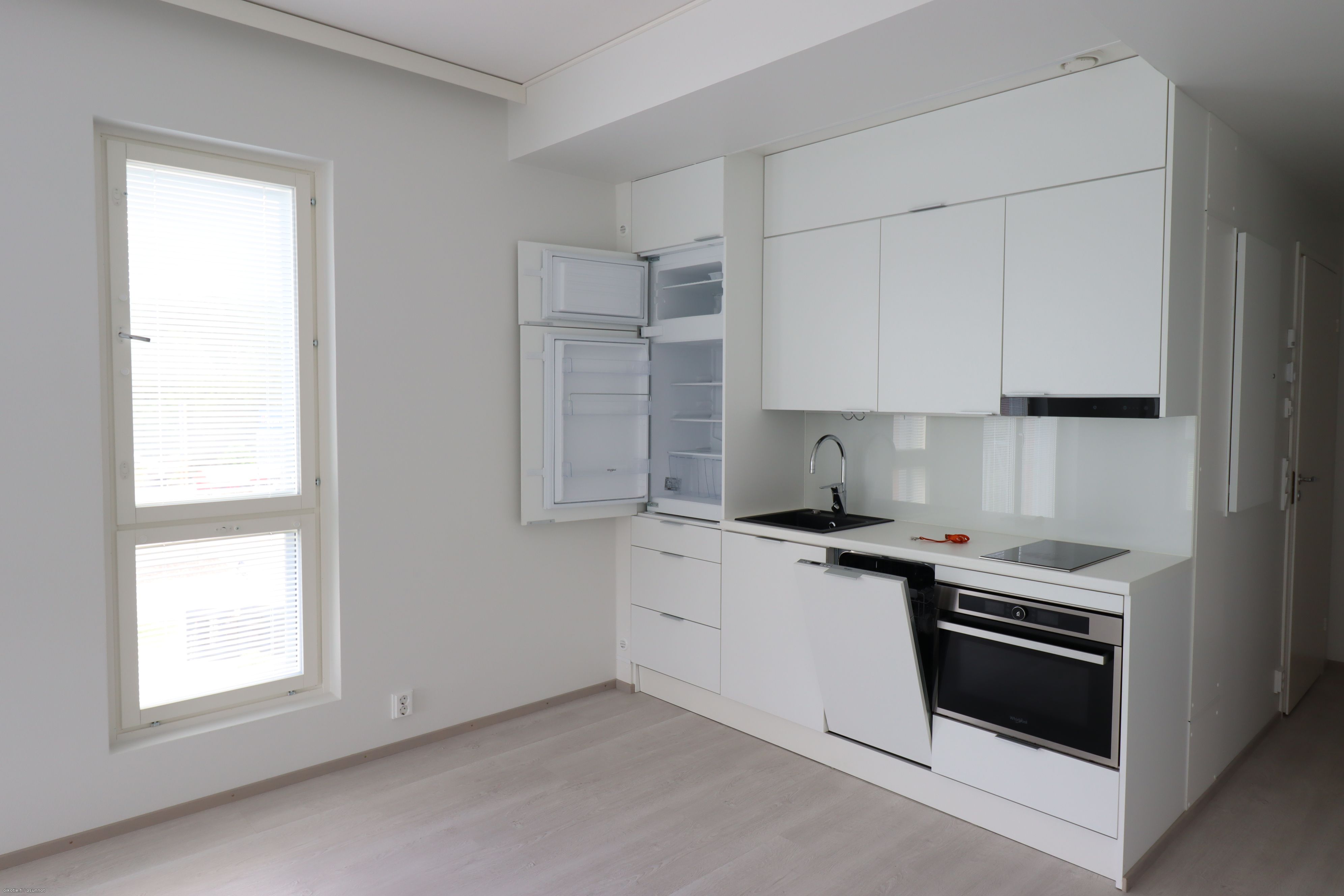 Tämä tilava yksiö sijaitsee talon seitsemännessä kerroksessa. Huoneiston lattiat laminaattia ja seinät vaalealla maalipinnalla. Asunnossa ranskalainen parveke, ja ikkunoissa ja parvekeovissa on sälekaihtimet. Keittiössä jääkaappi pakastelokerolla ja astianpesukone. Kylpyhuoneessa tilaa ja liitäntä pyykinpesukoneelle. Asunnon kuivissa tiloissa vesikiertoinen lattialämmitys ja kylpyhuoneessa sähköinen lattialämmitys. Lemmikit sallittu!