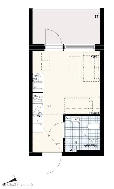 | Huoneiston kokoonpano | 1h+kt+las.parveke |