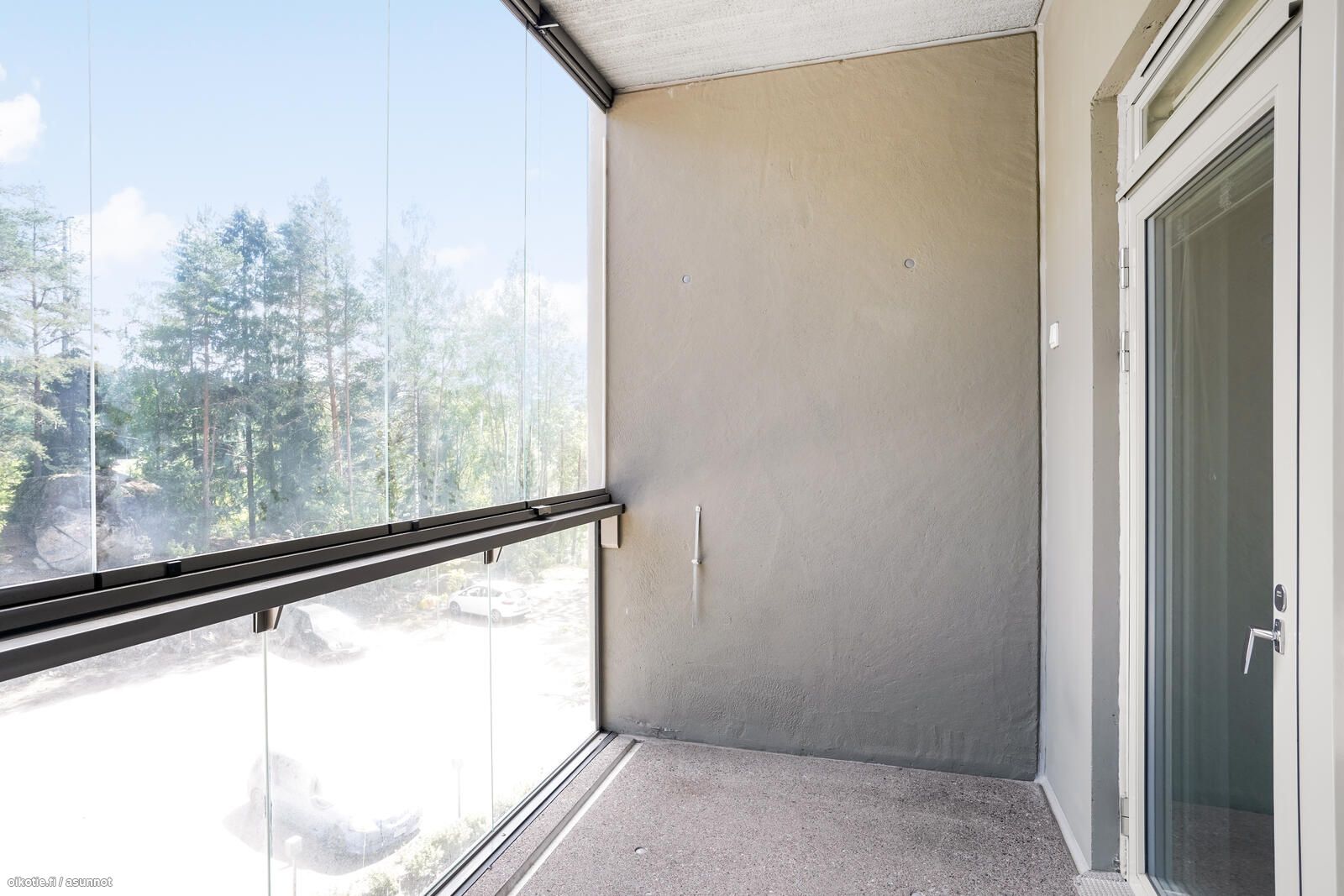 Vuokrattavissa 1.1.2026 alkaen 3. kerroksen yksiö koko asunnon levyisellä lasitetulla parvekkeella ja avarilla luonnonläheisillä näkymillä