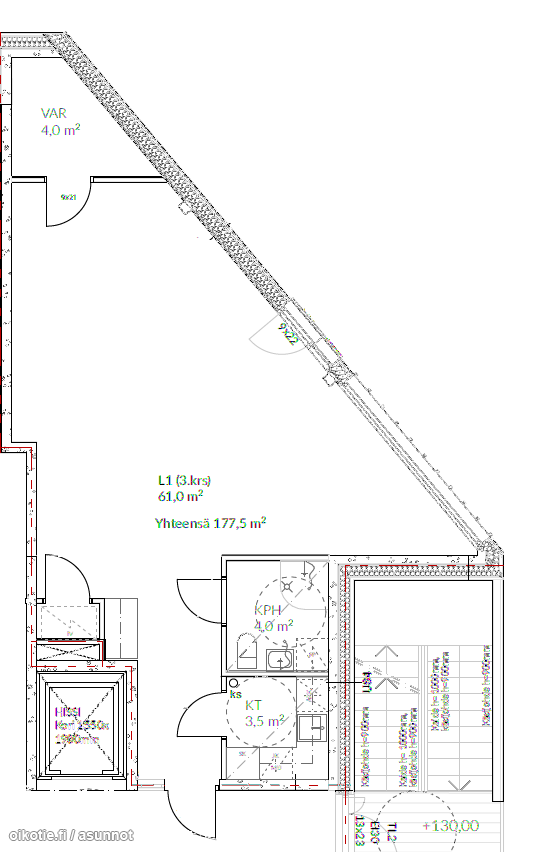 | Huoneiston kokoonpano | liikehuoneisto+k+wc |