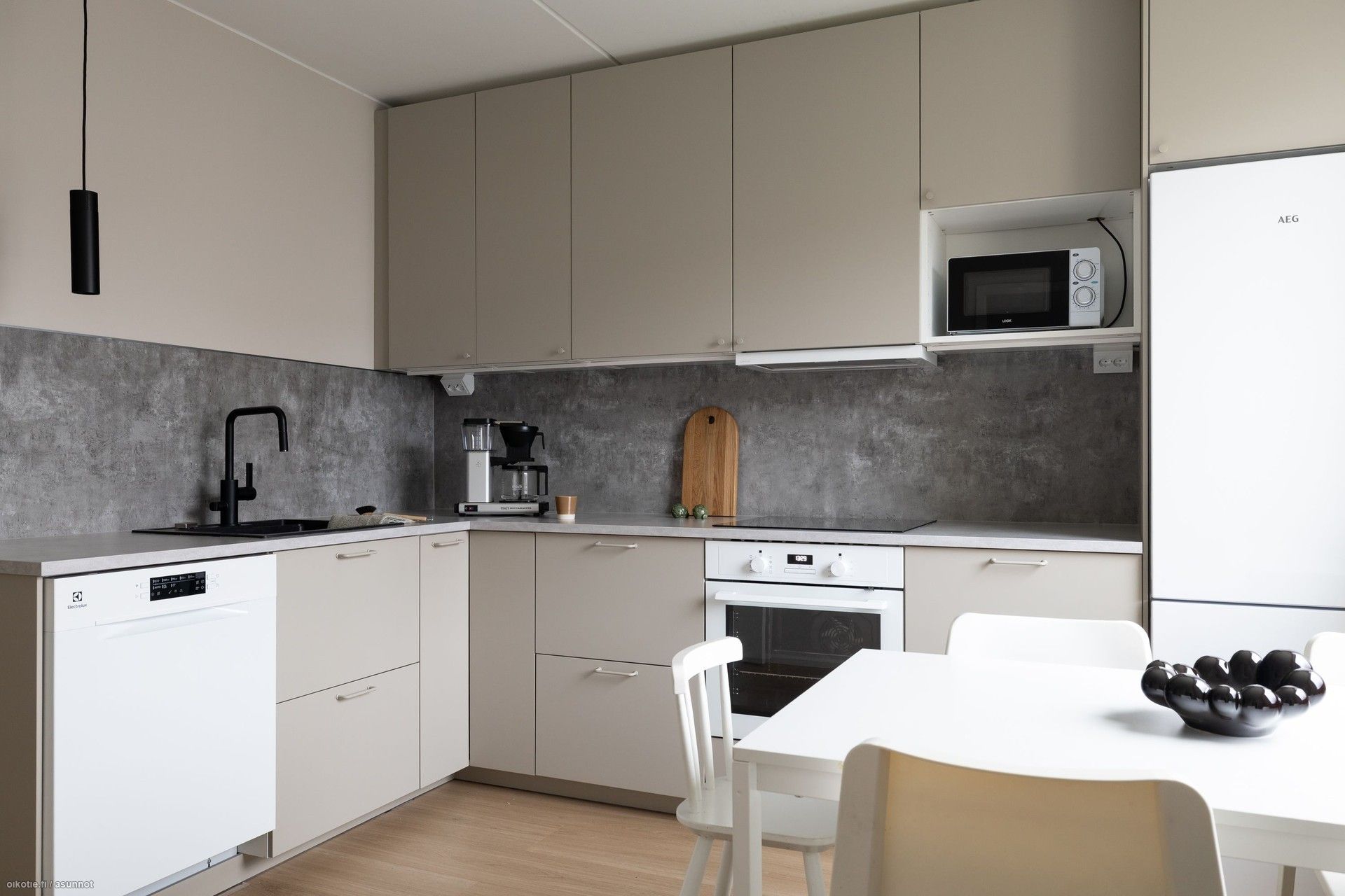 Tässä asunnossa on kauniit pinnat, jotka tuovat kodikkuutta ja lämpöä. Keittiö on remontoitu tyylikkäästi, mikä tekee siitä viihtyisän ja käytännöllisen arjen keskuksen. Asunnossa on toimiva pohjaratkaisu: Kaksi erillistä makuuhuonetta, tilava keittiö ja valoisa olohuone, josta käynti lasitetulle parvekkeelle. Keittiön kodinkoneisiin lukeutuvat astianpesukone sekä jääkaappi-pakastin ja kalusteuuni. Tilavassa kylpyhuoneessa on siisti laatoitus ja pesukoneelle löytyy myös paikka ja liitäntä. Vaatehuoneessa on myös hyvin säilytystilaa.