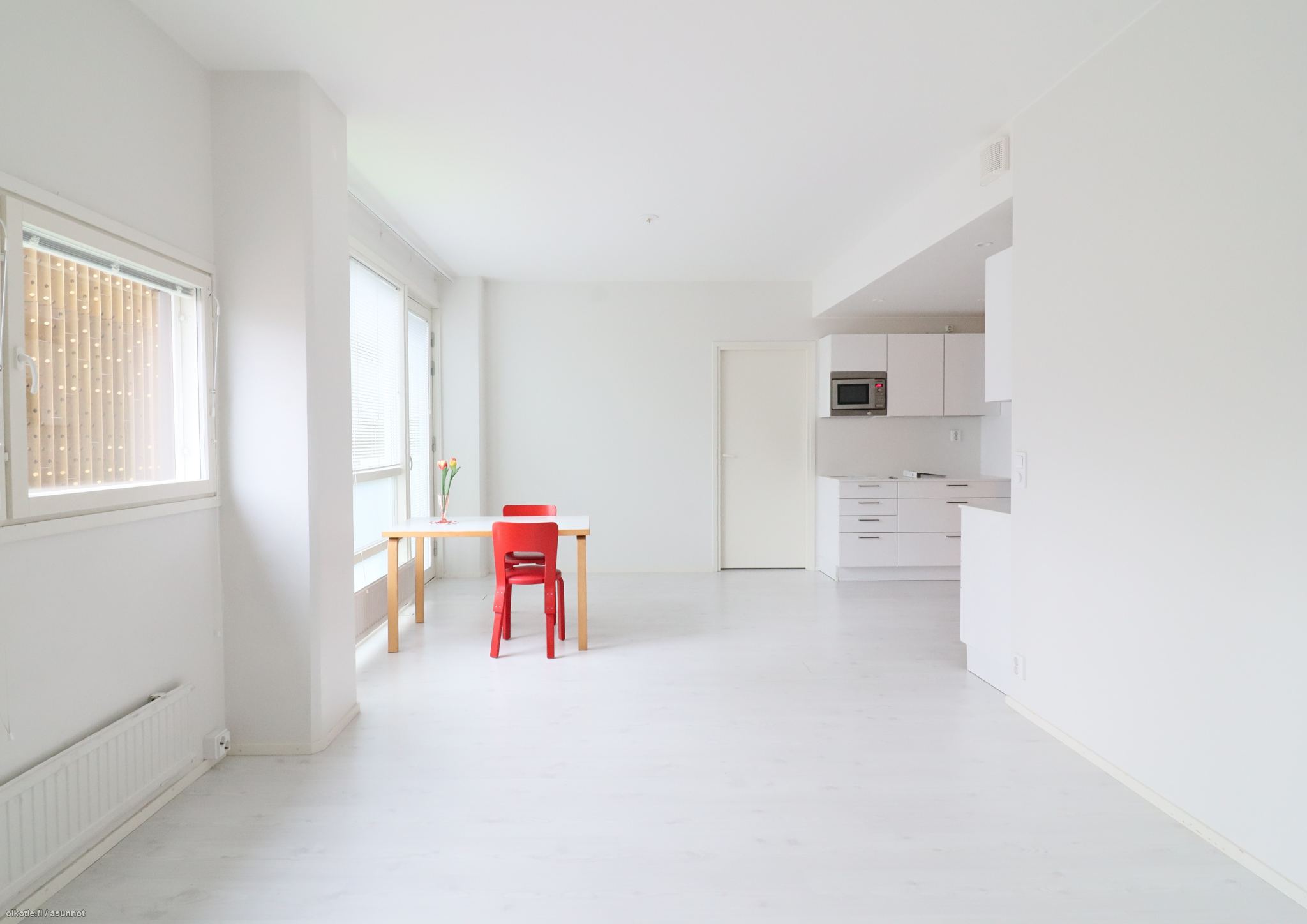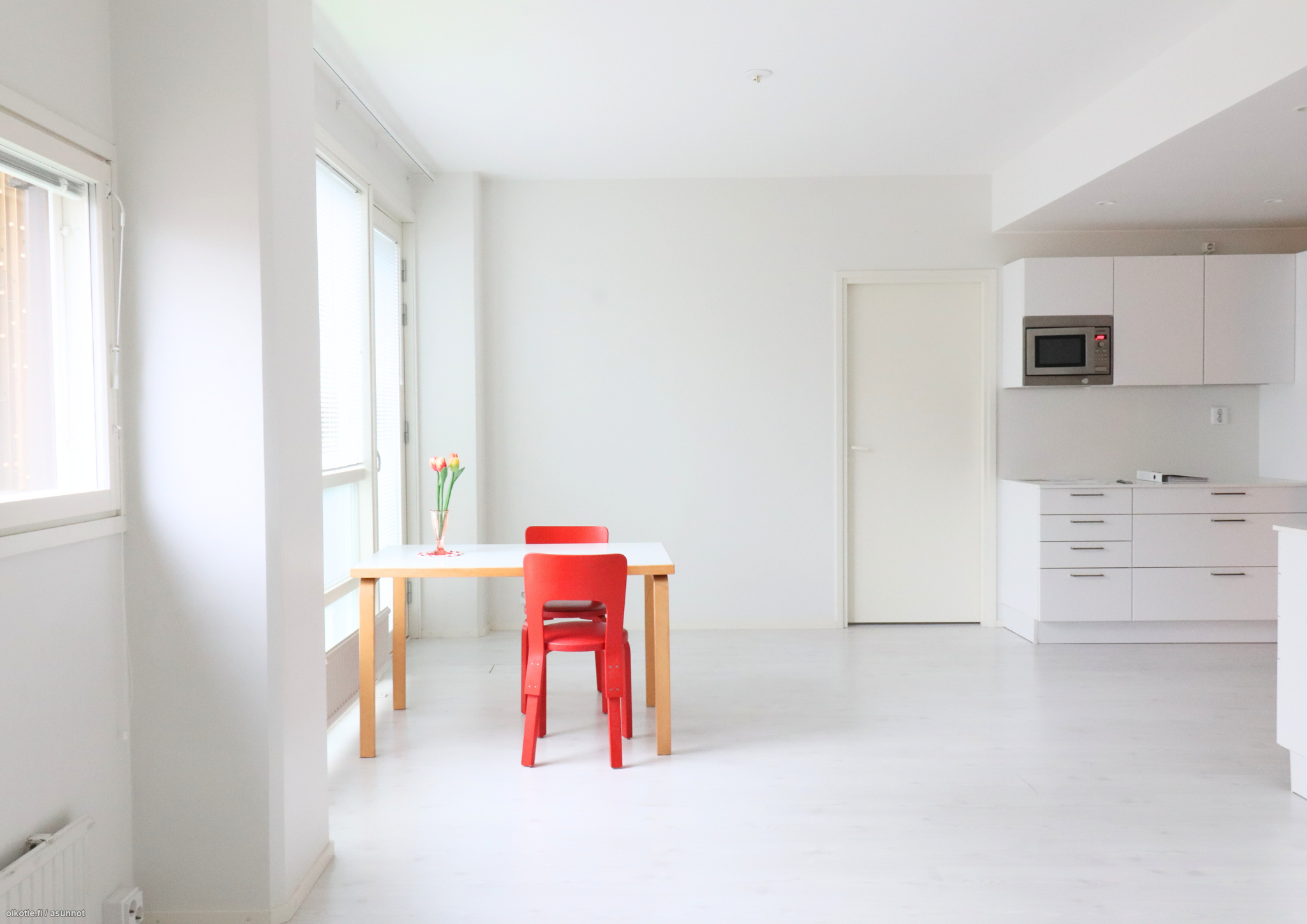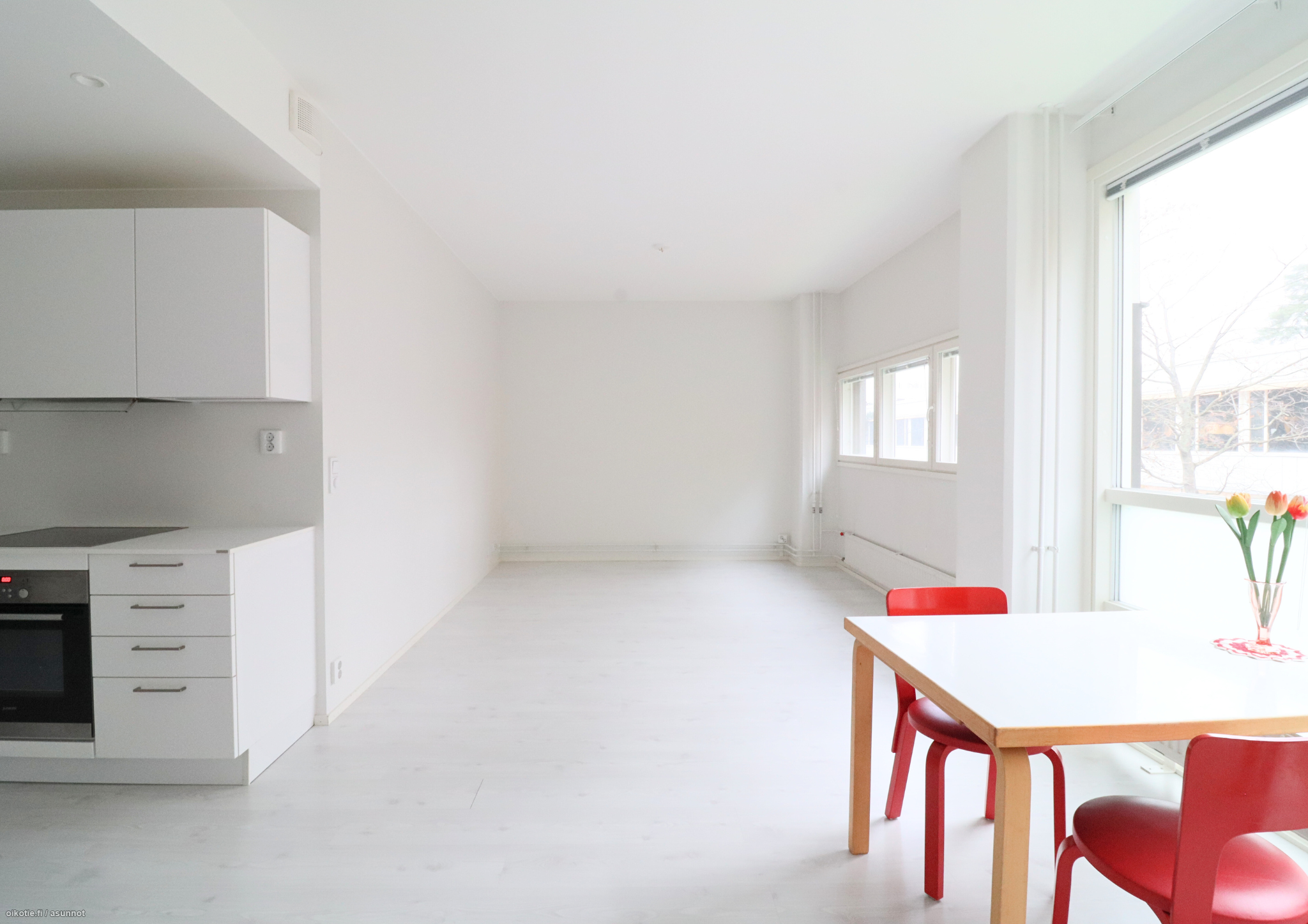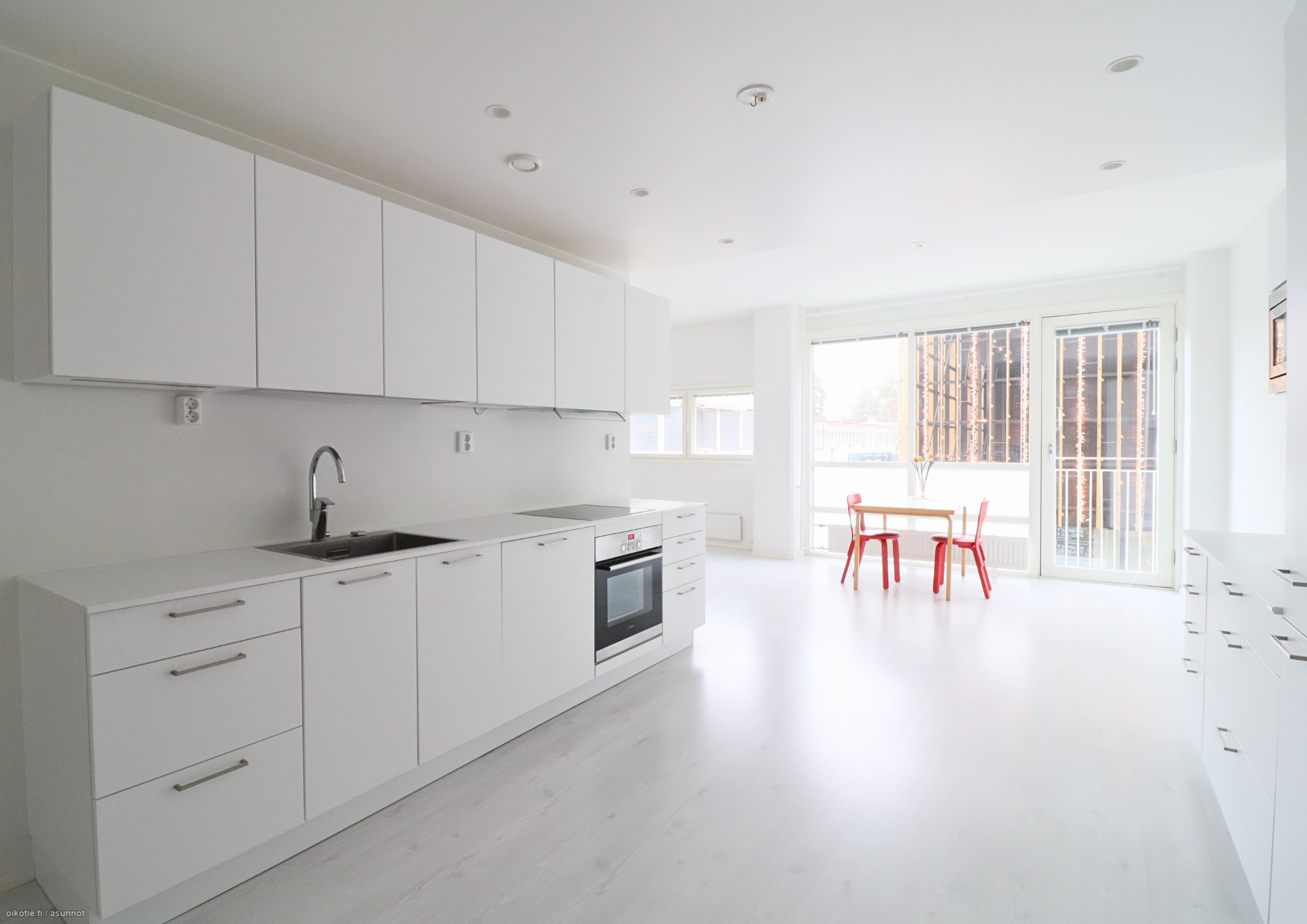 Asunto on entinen liiketila, joka on muutettu moderniksi huoneistoksi vuonna 2016. Kaikki pinnat ovat erinomaisessa kunnossa, ja kokonaisuus tuntuu valoisalta ja avaralta. Tilava keittiö–olohuone tarjoaa runsaasti asumismukavuutta ja mahdollisuuksia sisustamiseen. Keittiö on hyvin varusteltu: astianpesukone, jääkaappi–pakastin, uuni, induktioliesi sekä mikroaaltouuni kuuluvat kaikki varusteluun. Keittiöstä avautuu myös ranskalainen parveke, josta voi nauttia viihtyisistä keskustamaisemista. Makuuhuoneista sekä eteisestä löytyy reilusti kaappitilaa, mikä tekee arjesta sujuvaa. Asunnossa on erillinen wc sekä kylpyhuone, jossa on paikka ja liitännät pyykinpesukoneelle.