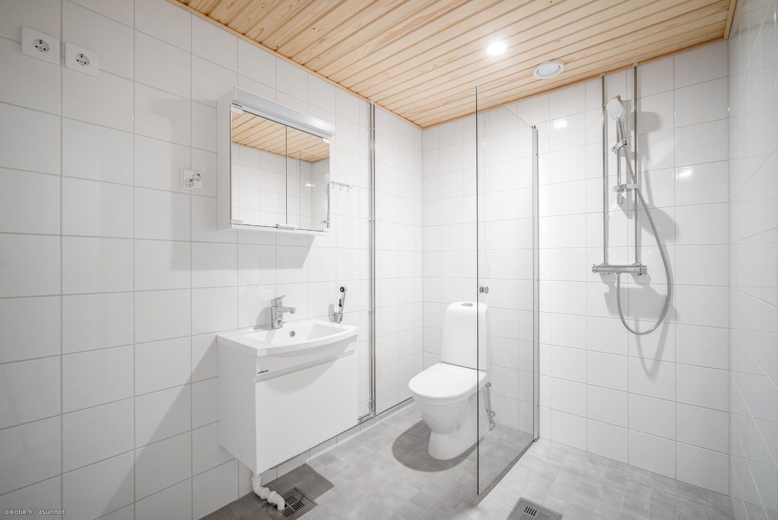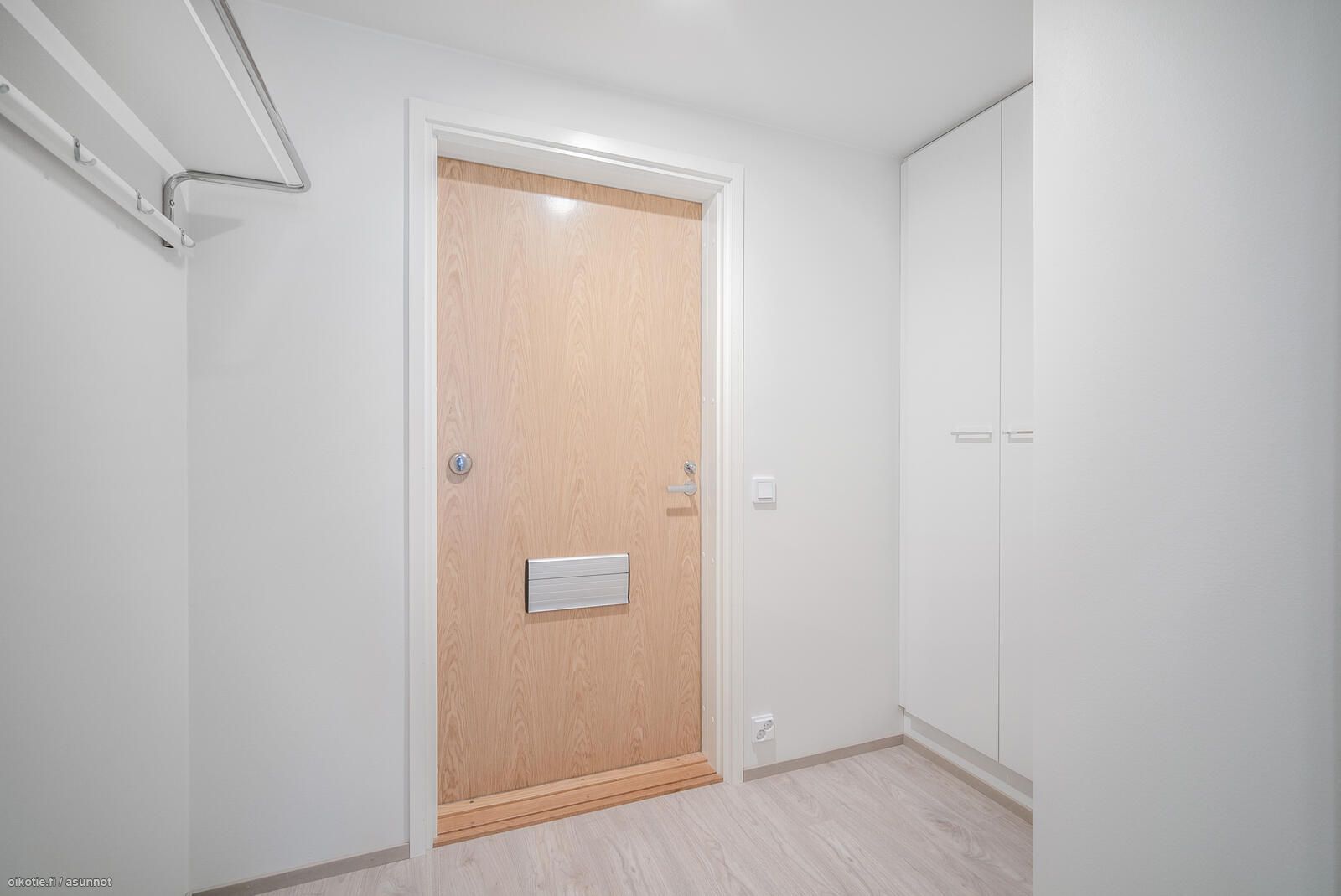 Asunnossa on laminaattilattia ja seinät vaalealla maalipinnalla. Ikkunoissa ja parvekeovissa on sälekaihtimet. Keittiöistä löytyy jääkaappi pakastelokerolla ja astianpesukone. Kylpyhuoneessa tilaa ja liitäntä pyykinpesukoneelle. Talo lämpenee kaukolämmöllä, lämmitys sisältyy vuokraan (pois lukien kylpyhuoneen sähköinen lattialämmitys).