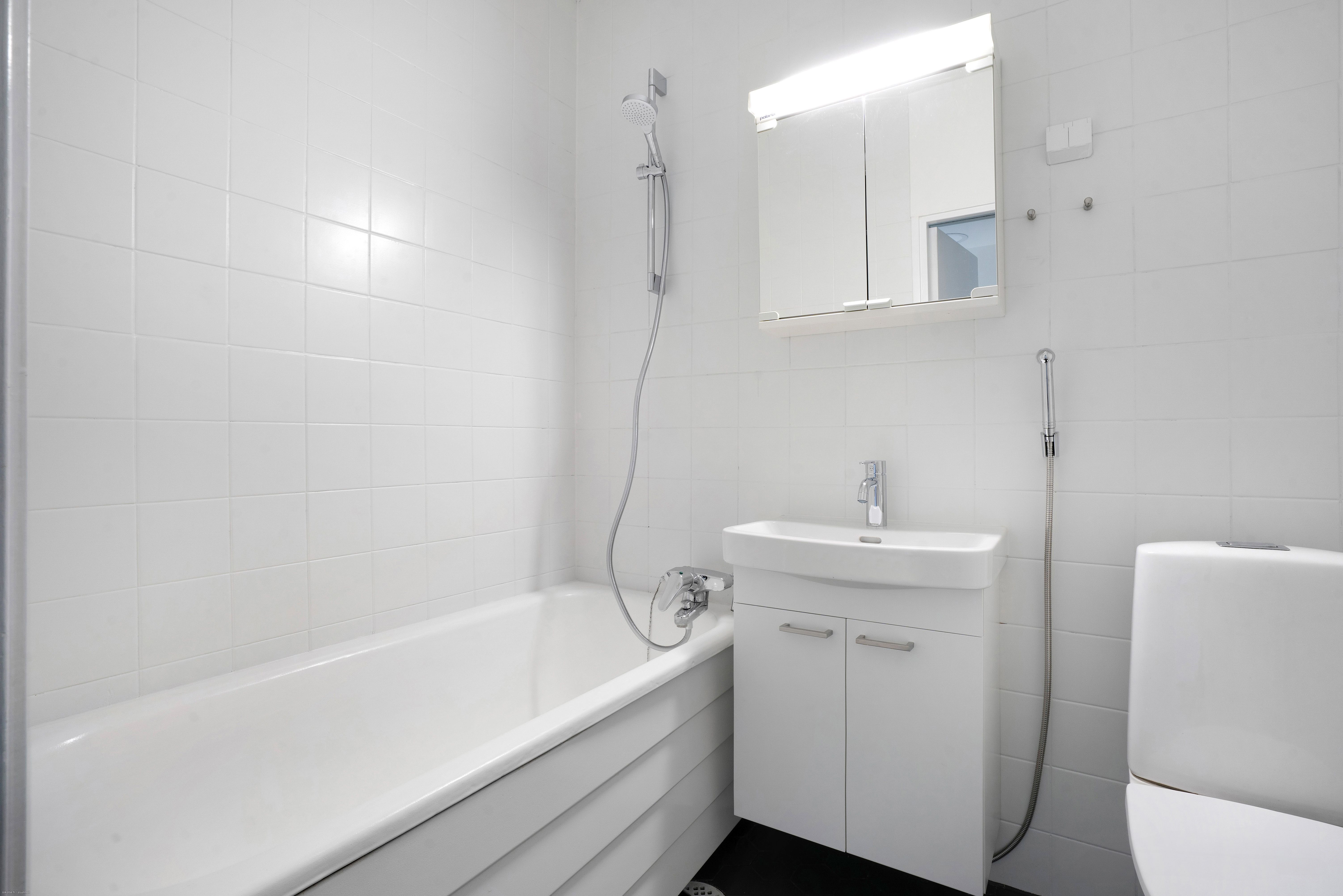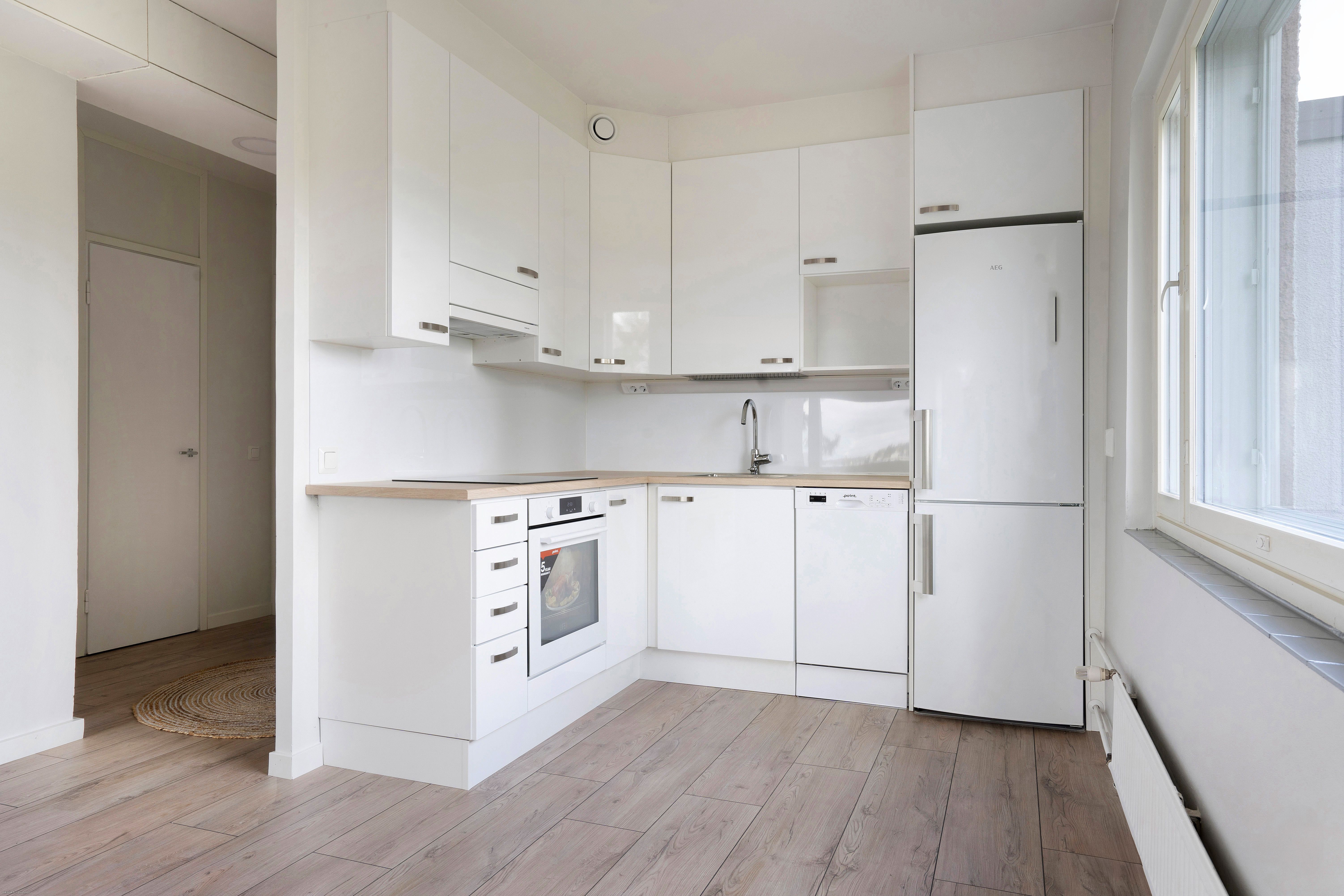 Asunnon pohjaratkaisu on hyvin toimiva ja selkeä. Olohuone ja keittiö sulautuvat luonnollisesti yhteen ja luonnonvaloa tulvii sisään kahdesta suunnasta. Todella tilavasta makuuhuoneesta on käynti lasitetulle parvekkeelle sekä vaatehuoneeseen. Asunto on pintaremontoitu tyylikkäästi vastaamaan nykypäivää. Värimaailma on modernin vaalea sekä kodinkoneet ja kalusteet uusittu.