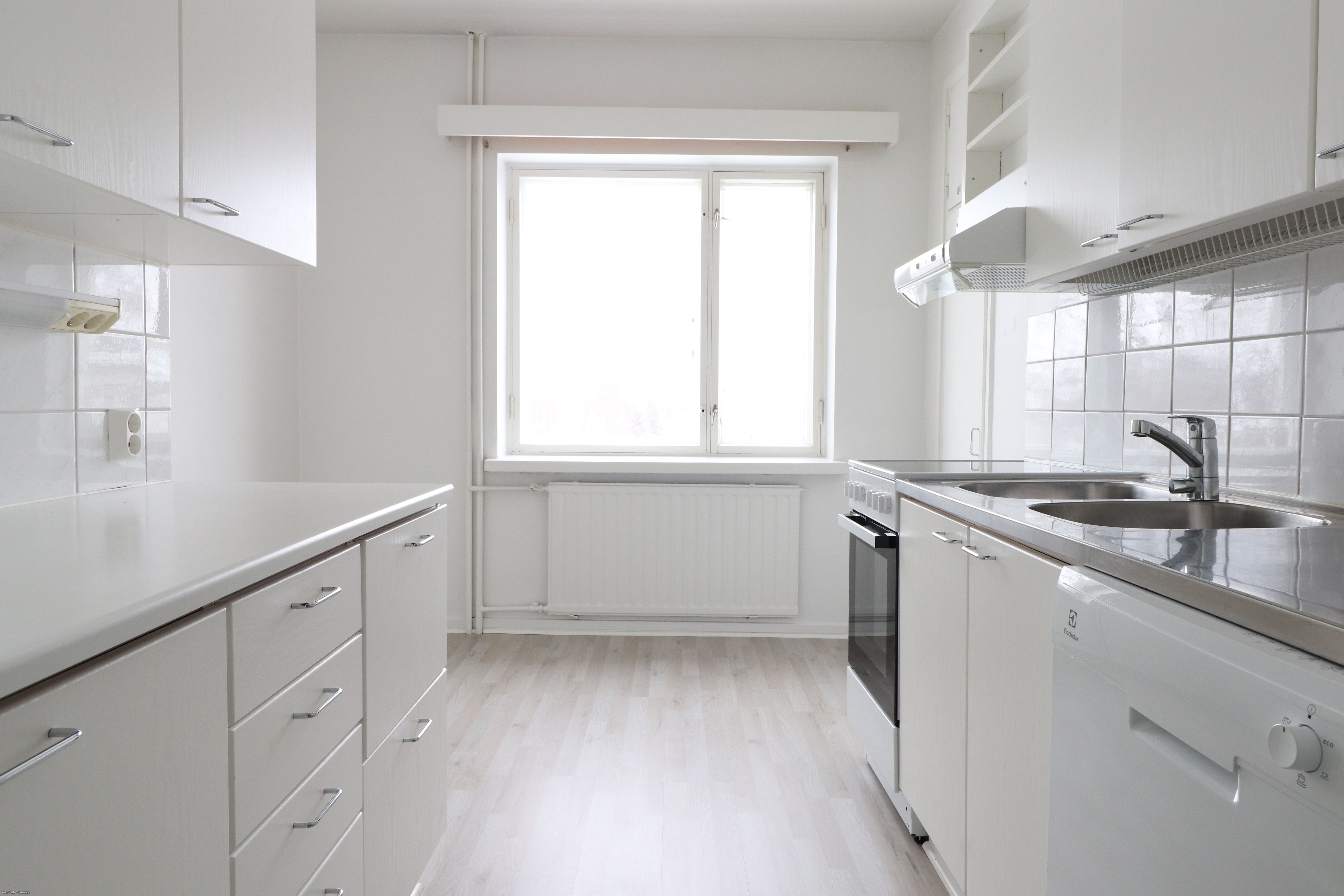 Heinäpäästä, 50-luvun tunnelmaa henkivästä talosta, vuokrattavana nätti neljännen (4/5) kerroksen tilava kaksio. Keittiönkaapit uusittu, ei alkuperäiset. Keittiössä valmiina astianpesukone, sekä jääkaappipakastin ja liesi/uuni. Asunnossa tilavat ja valoisat huoneet ja kivasti säilytystilaa! Pesuhuoneeseen mahtuu hyvin oma pyykinpesukone.