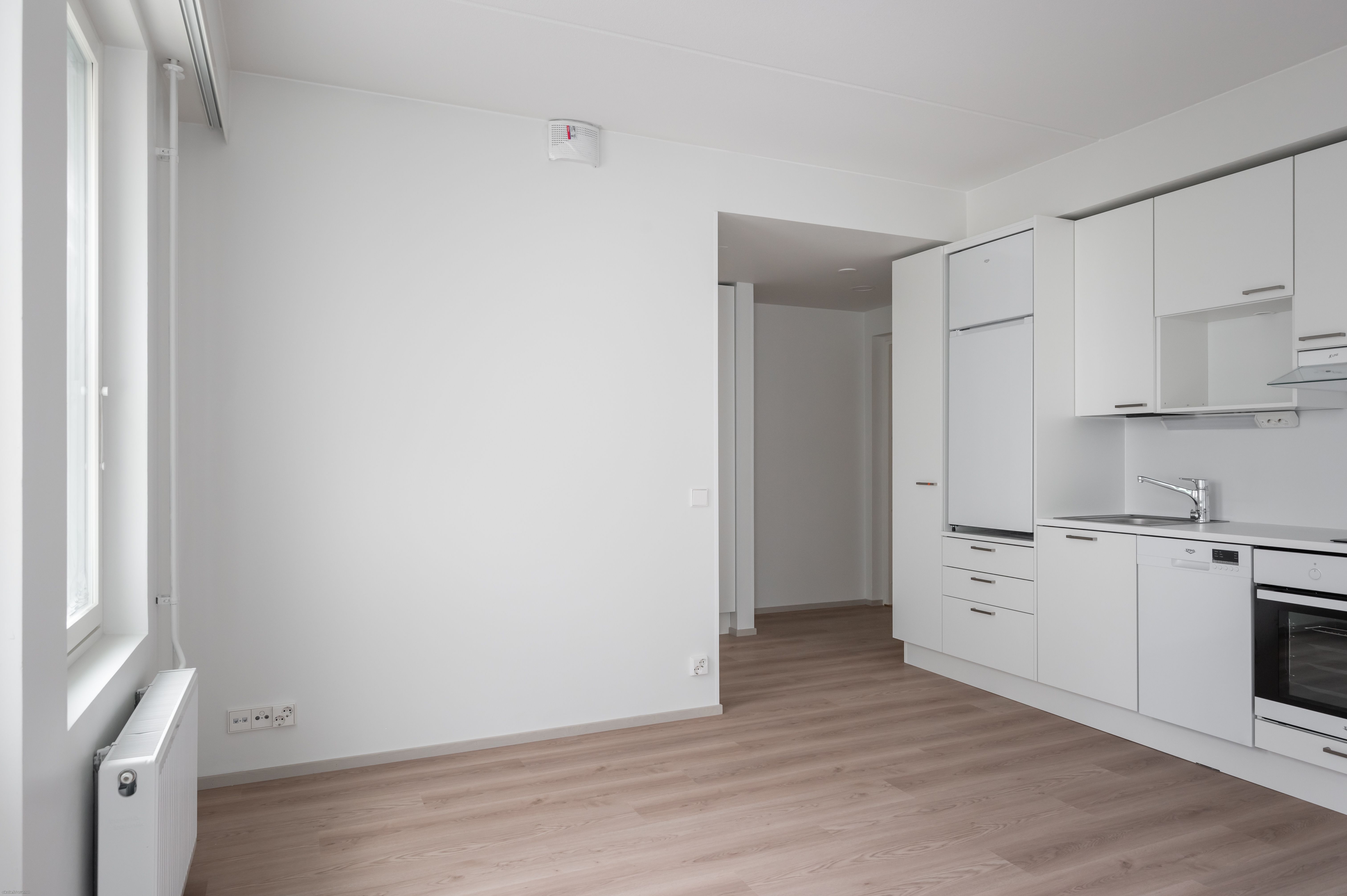 Tämä näppärä kaksio sijaitsee 3./6.-kerroksessa. Asunnossa Puustellin keittiö jossa UPO:n astianpesukone, jääkaappipakastin sekä kalusteuuni. Seinät maalipinnoin ja lattiassa kaunis tammilaminaatti. Kaakeloidussa harmaavalkoisessa kylpyhuoneessa on tila ja liitännät pyykinpesukoneelle sekä kuivausrummulle. Asunnossa vesikiertoinen patterilämmitys ja kylpyhuoneessa sähköinen mukavuuslattialämmitys. Huoneistokohtainen koneellinen tulo- ja poistoilmanvaihto lämmön talteenotolla takaa sen että asunnossa on raikas sisäilma. Asunnossa ranskalainen parveke lisäämässä viihtyvyyttä. Lämmitys ja internetin perusnopeus sisältyy vuokraan. Vesimaksut kulutuksen mukaan, vesiennakkoa maksetaan 18€/hlö/kk.
