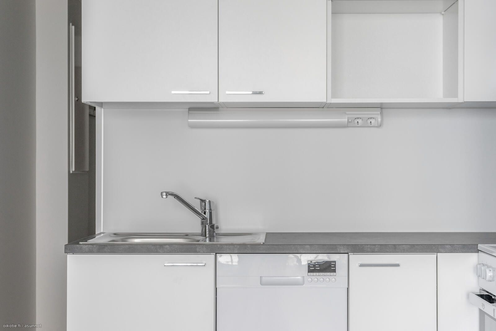 Asunnossa laminaattilattia ja seinät vaalealla maalipinnalla. Ikkunoissa ja parvekeovissa on sälekaihtimet. Keittiöstä löytyy jääkaappipakastin, uuni/liesi ja astianpesukone. Kylpyhuoneessa tilaa ja liitäntä pyykinpesukoneelle. Talo lämpiää kaukolämmöllä, lämmitys sisältyy vuokraan (pois lukien kylpyhuoneen sähköinen lattialämmitys).