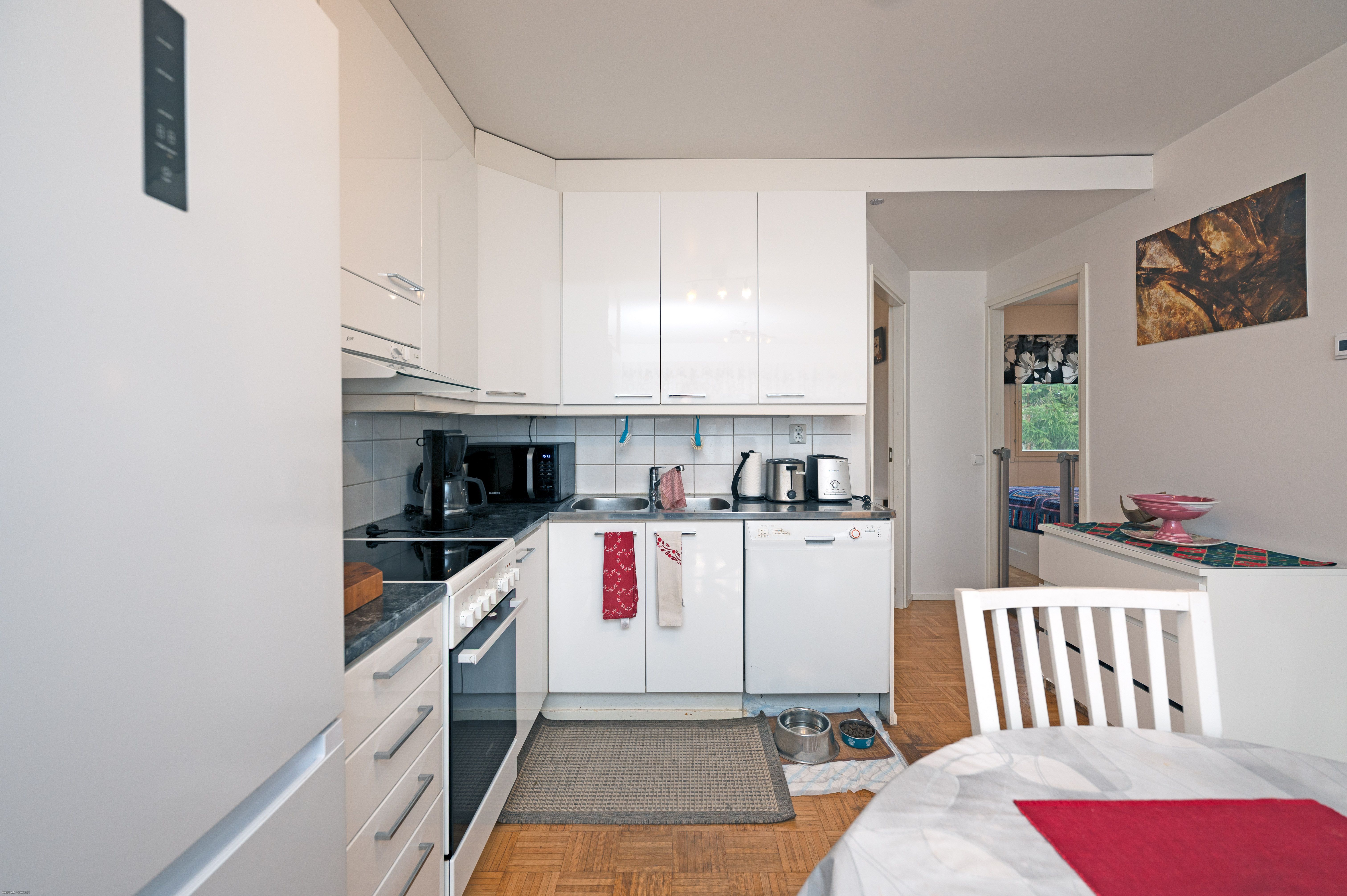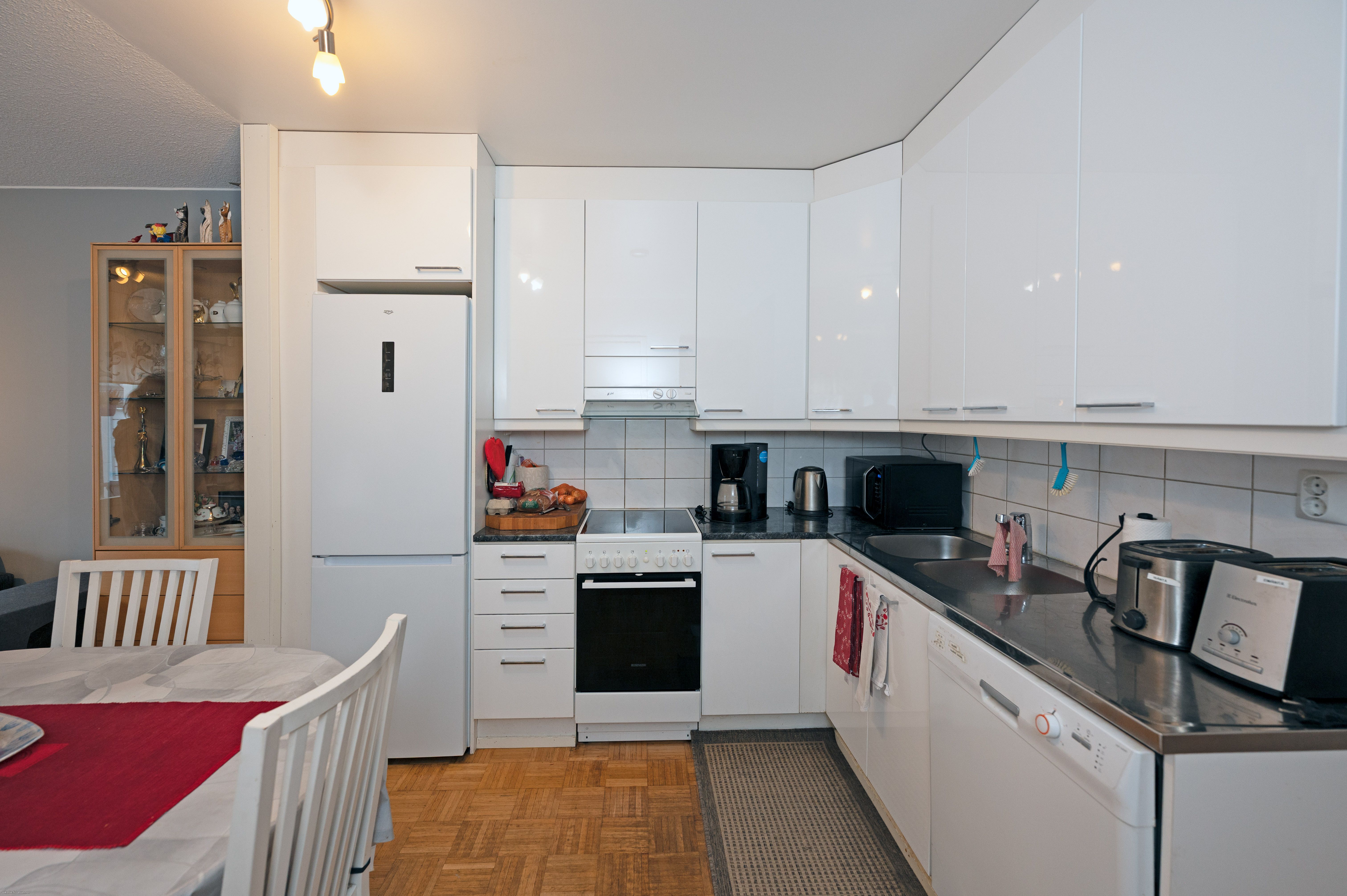 | Keittiön varusteet | Varusteet: Jääkaappipakastin, Astianpesukone. Työtaso: Laminaattitaso. Liesi: Sähköliesi, Liesituuletin. Avara keittiö ja ruokailutila olohuoneen jatkeena. |