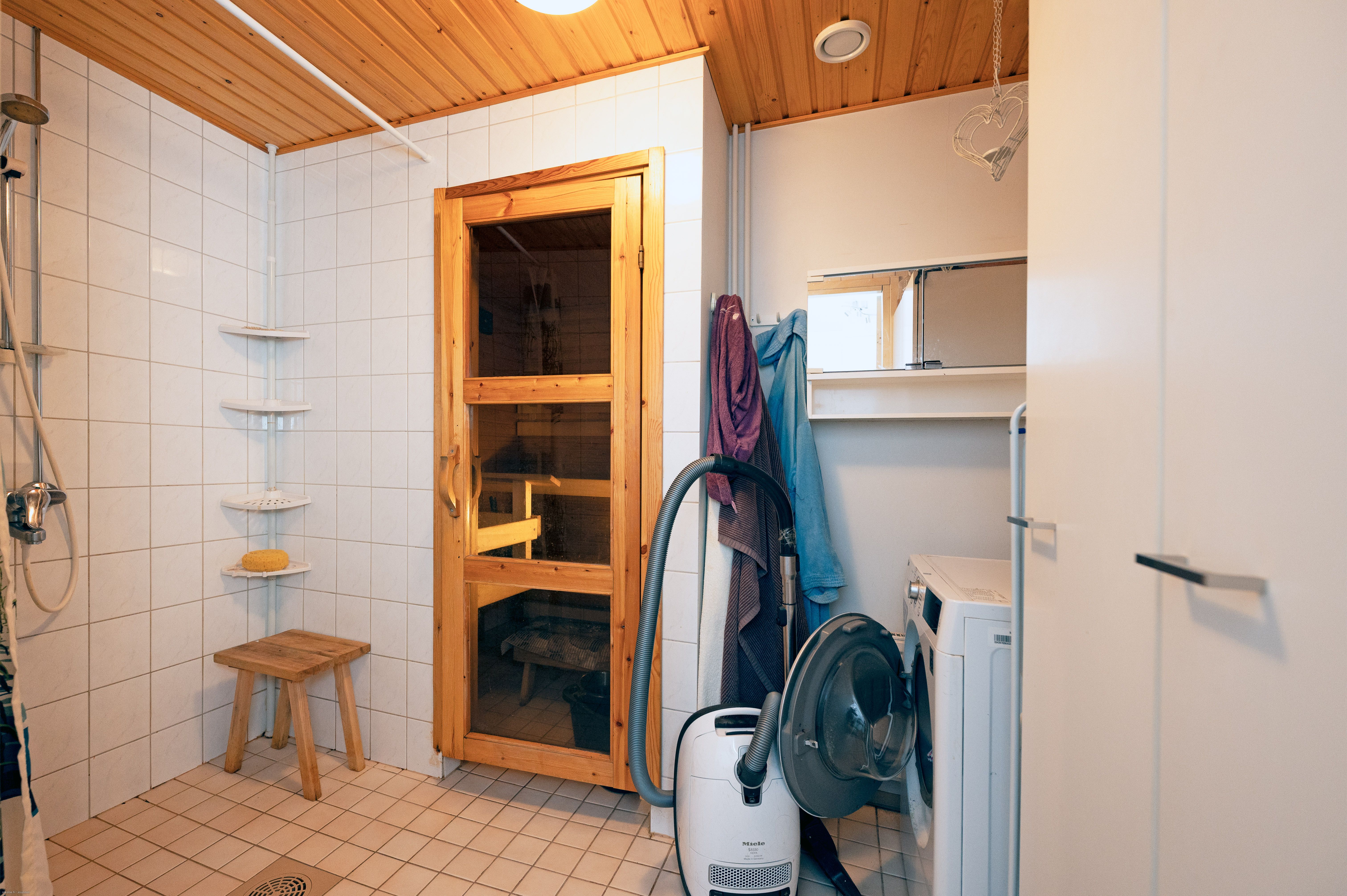 | Saunan lisätiedot | Varusteet: Sähkökiuas. saunan lauteet. Seinämateriaali: Paneeliseinä. Lattiamateriaali: Laattalattia |