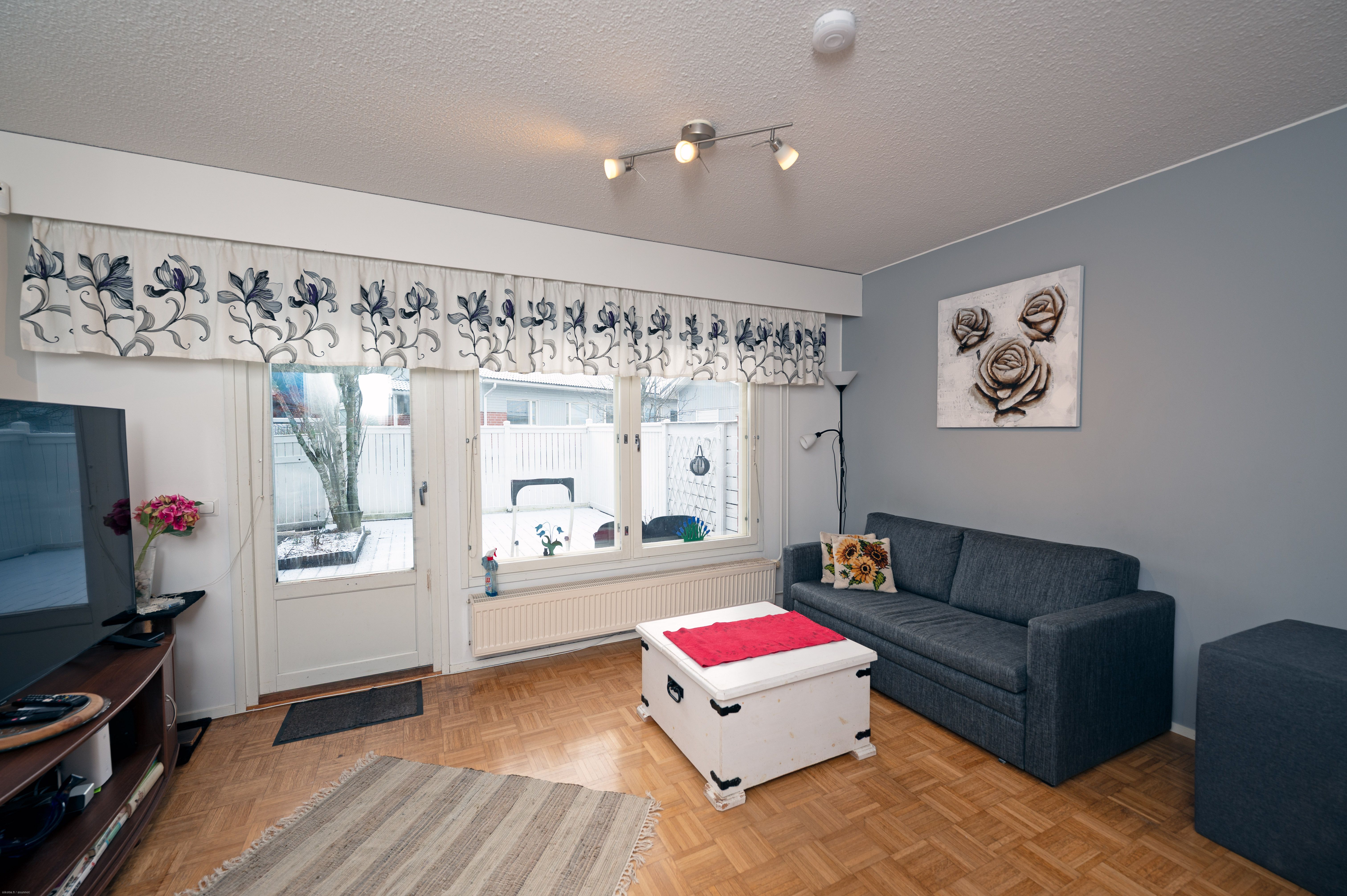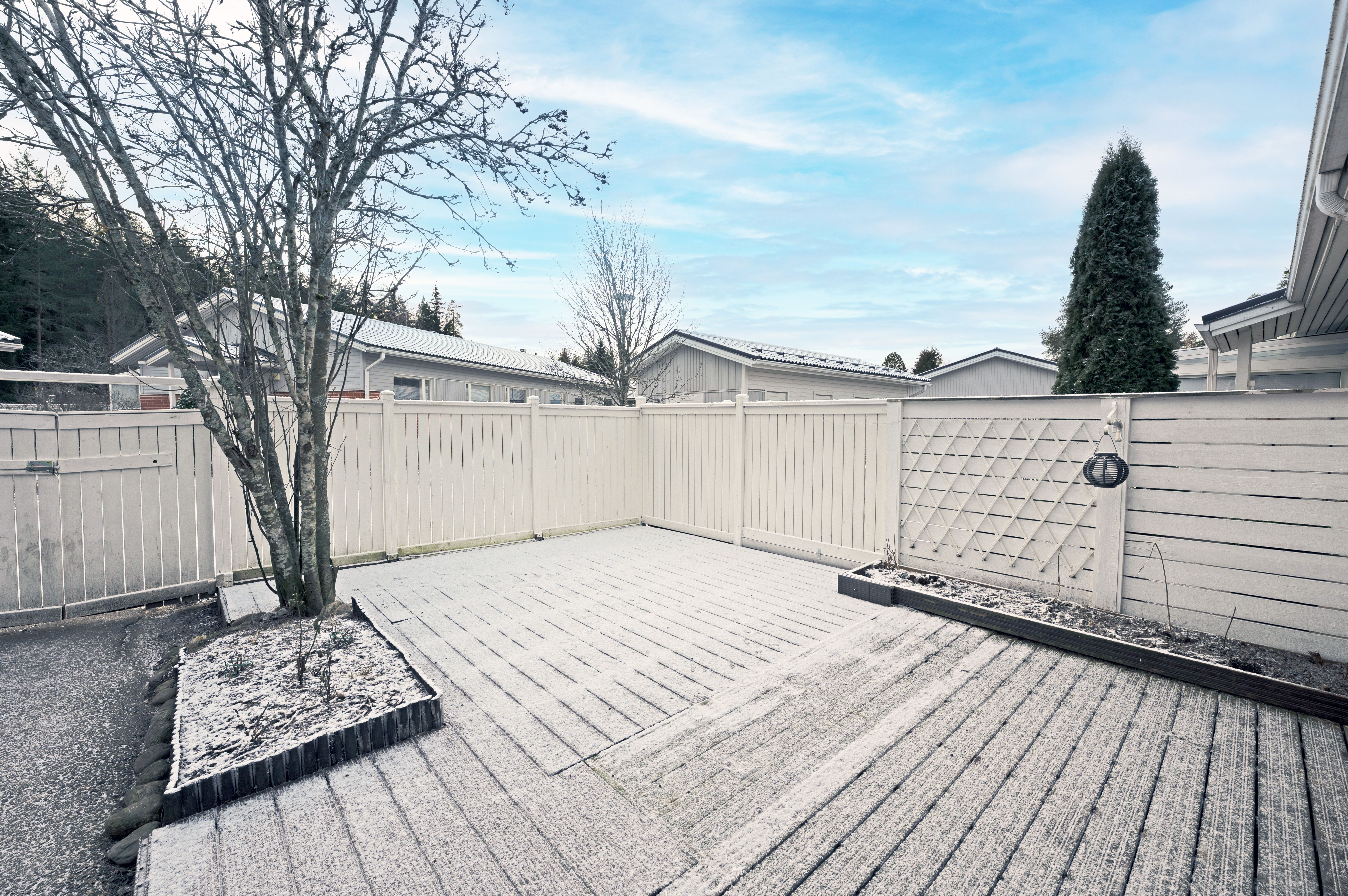 Etupihan oma aidattu piha luo yksityisyyttä ja viihtyisyyttä, ja päämakuuhuoneesta on käynti takapihan puolelle. Kokonaisuus on toimiva ja kodikas, sopien erinomaisesti niin omaan asumiseen kuin sijoituskäyttöönkin.