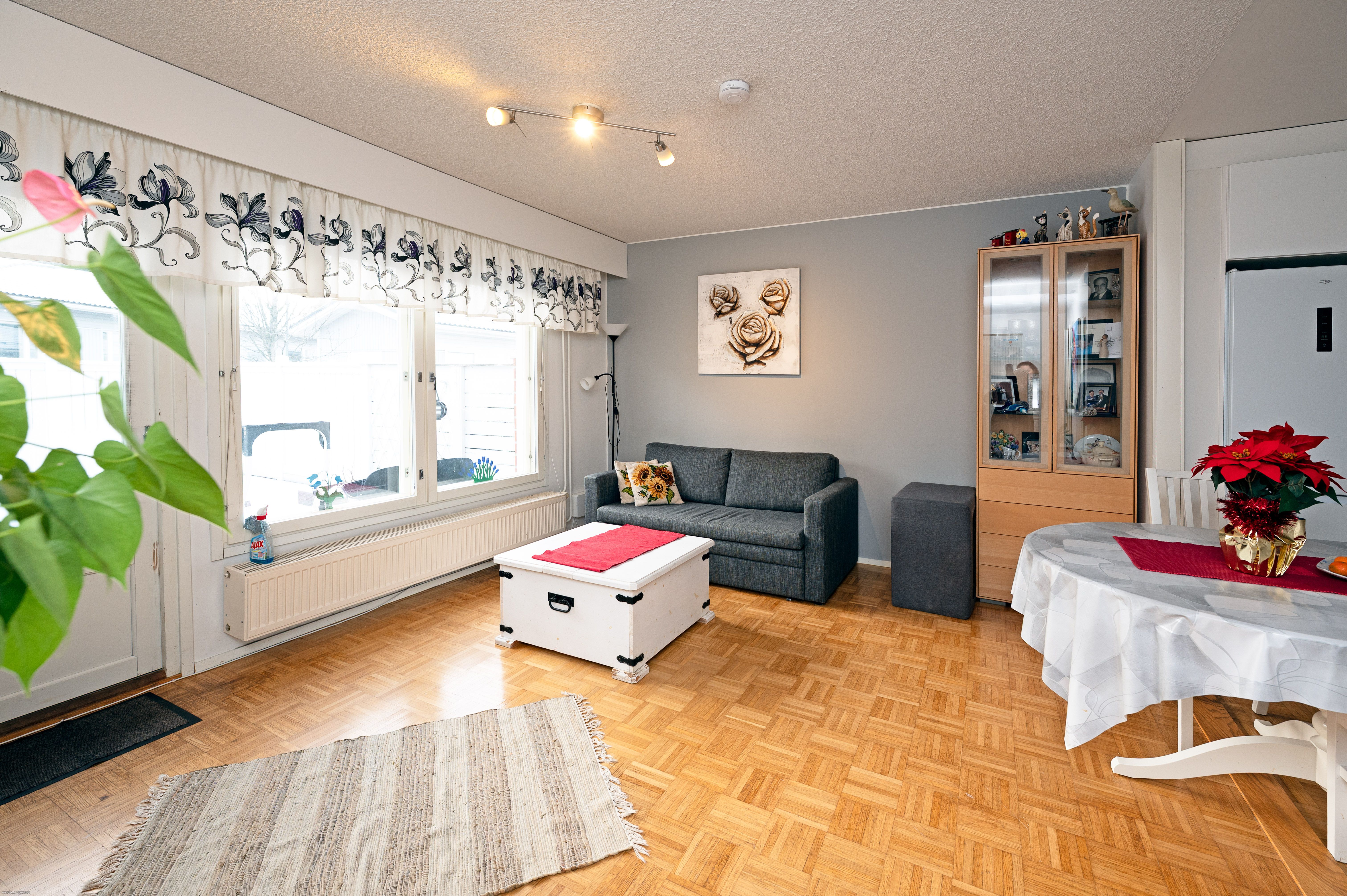Hallilan Pajukonkadulla sijaitseva siisti 60 m²:n rivitalokaksio (ja tupakeittiö) tarjoaa viihtyisää ja helppoa asumista rauhallisessa ympäristössä. Asunnossa on kaksi makuuhuonetta, avara tupakeittiö, kylpyhuone sekä oma sauna. Pihat molemmin puolin asuntoa lisäävät asumismukavuutta ja antavat tilaa niin oleskeluun kuin harrastuksille.