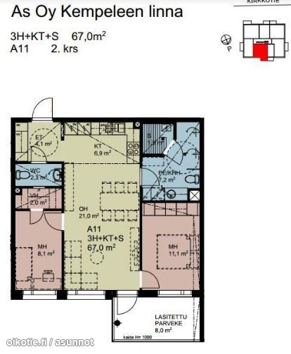 | Huoneiston kokoonpano | 3h,kt,sa,l.parv,ahp43 |