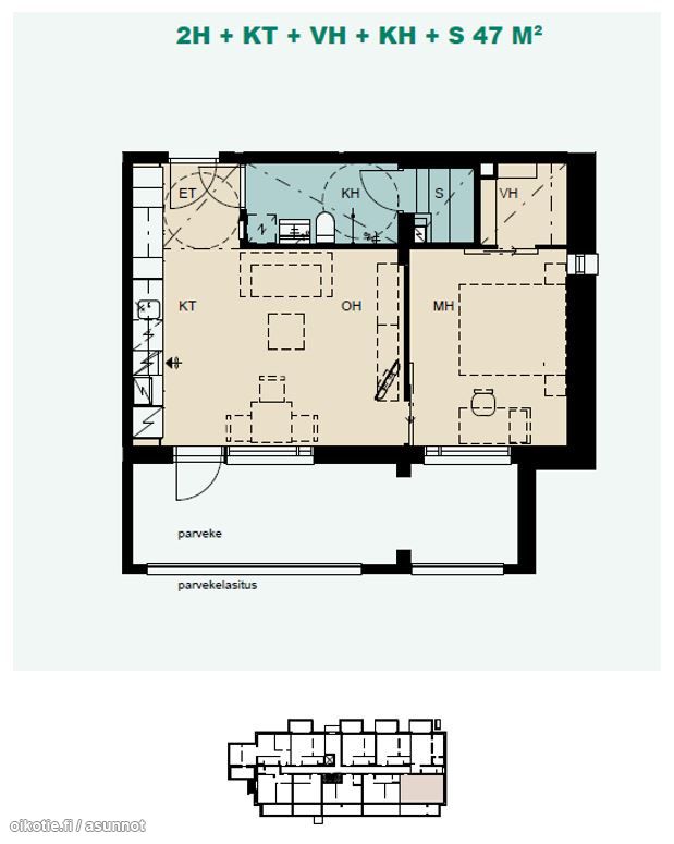 | Huoneiston kokoonpano | 2h,kt,vh,sa,las.parv, |