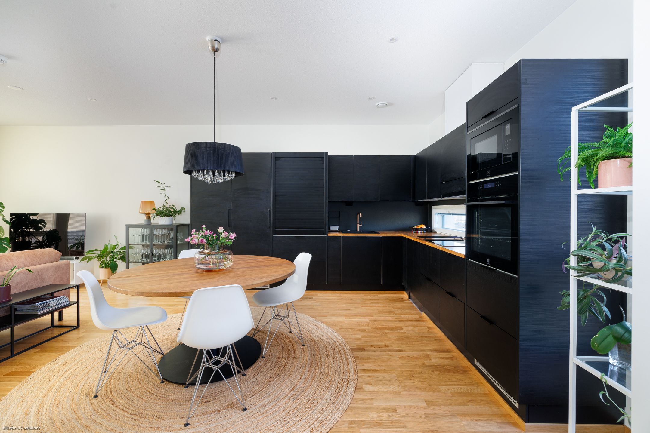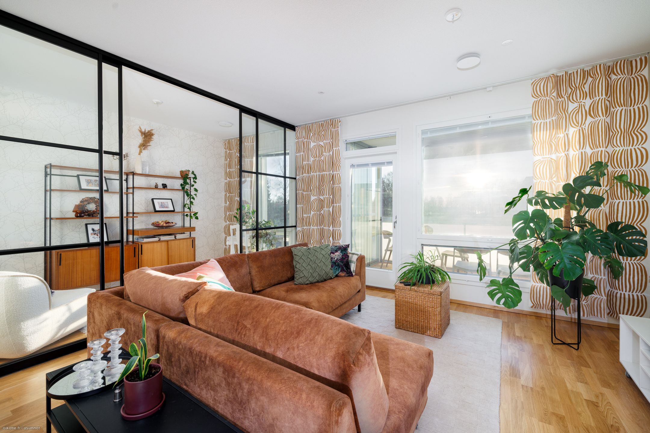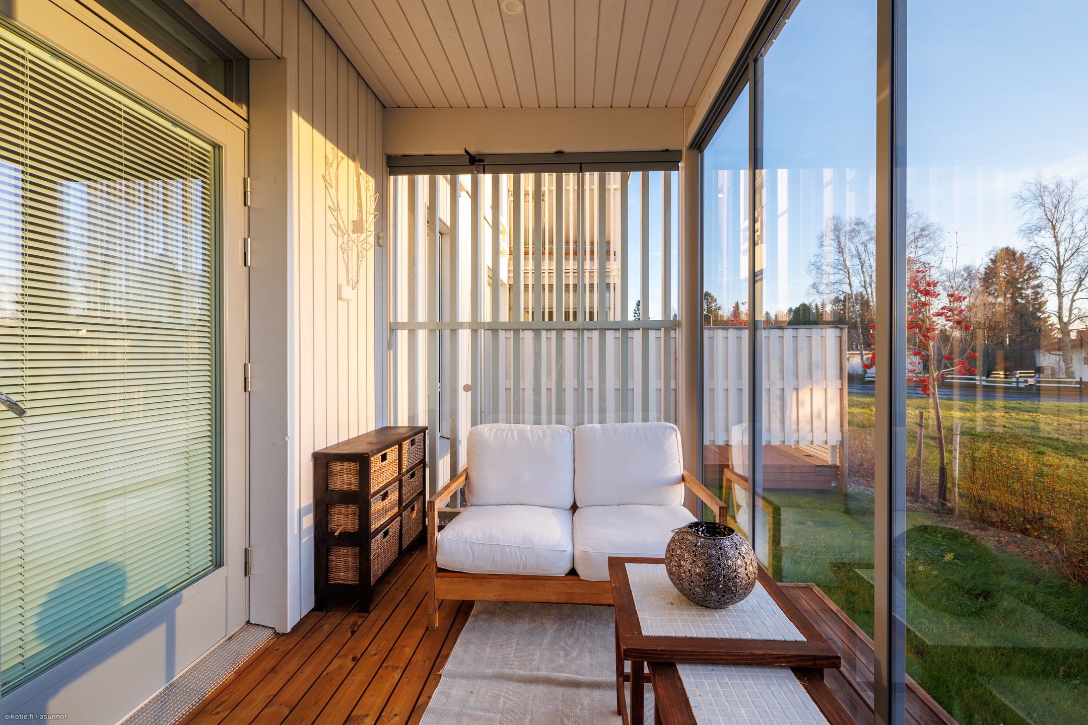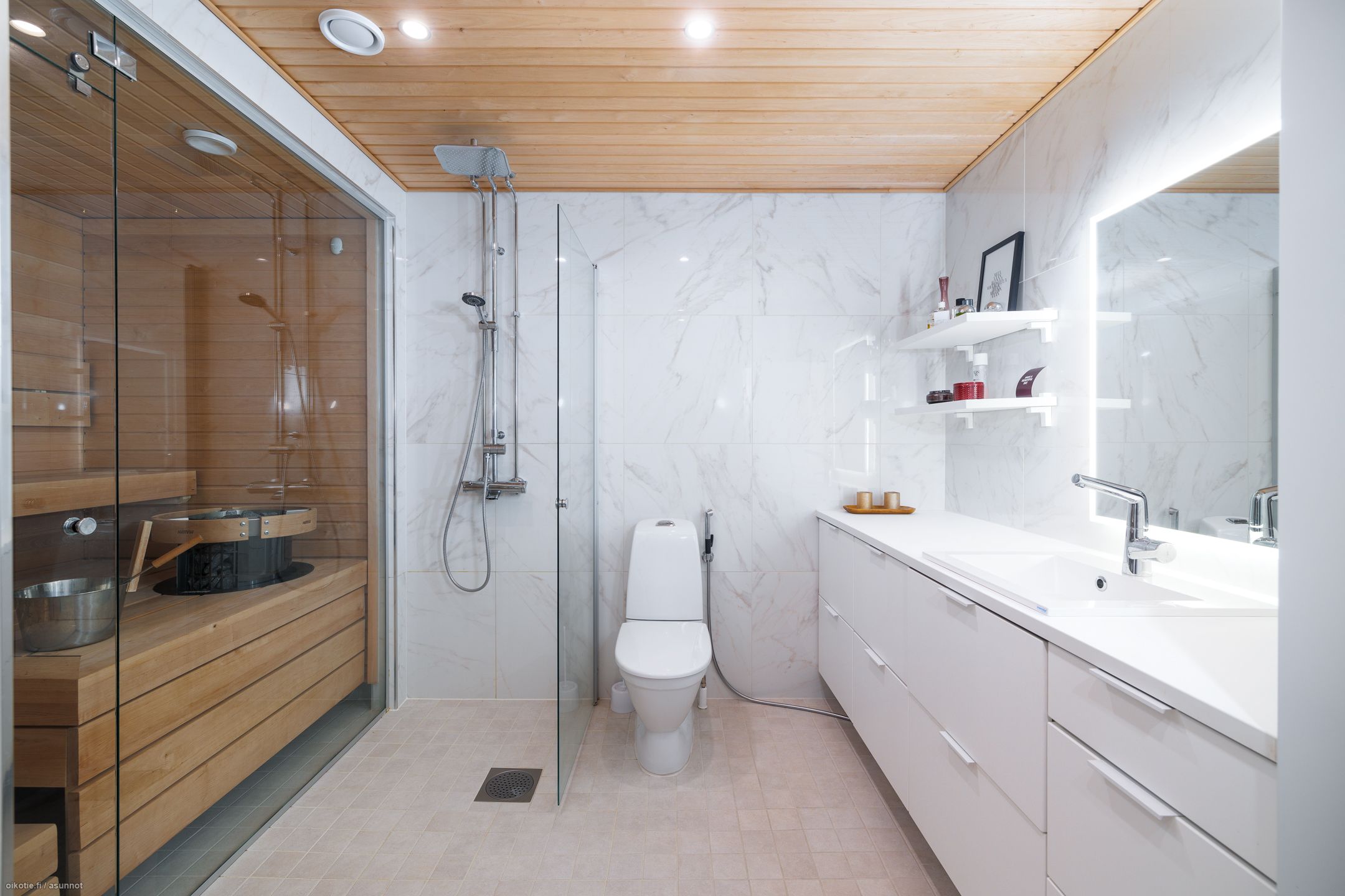 Asunnossa on laadukkaat materiaalivalinnat ja kauttaaltaan valoisa, vaalea ja tyylikäs ilme. Moderni tumma keittiö on varustettu ajanmukaisilla kodinkoneilla ja tarjoaa runsaasti säilytystilaa arjen sujuvuuteen. Lasitettu terassi kutsuu nauttimaan merellisestä tunnelmasta pitkälle syksyyn saakka sekä yläkerrasta on käynti toiselle parvekkeelle. Oman saunan lempeät löylyt kruunaavat kokonaisuuden ja tarjoavat täydellisen paikan rentoutumiseen päivän päätteeksi.