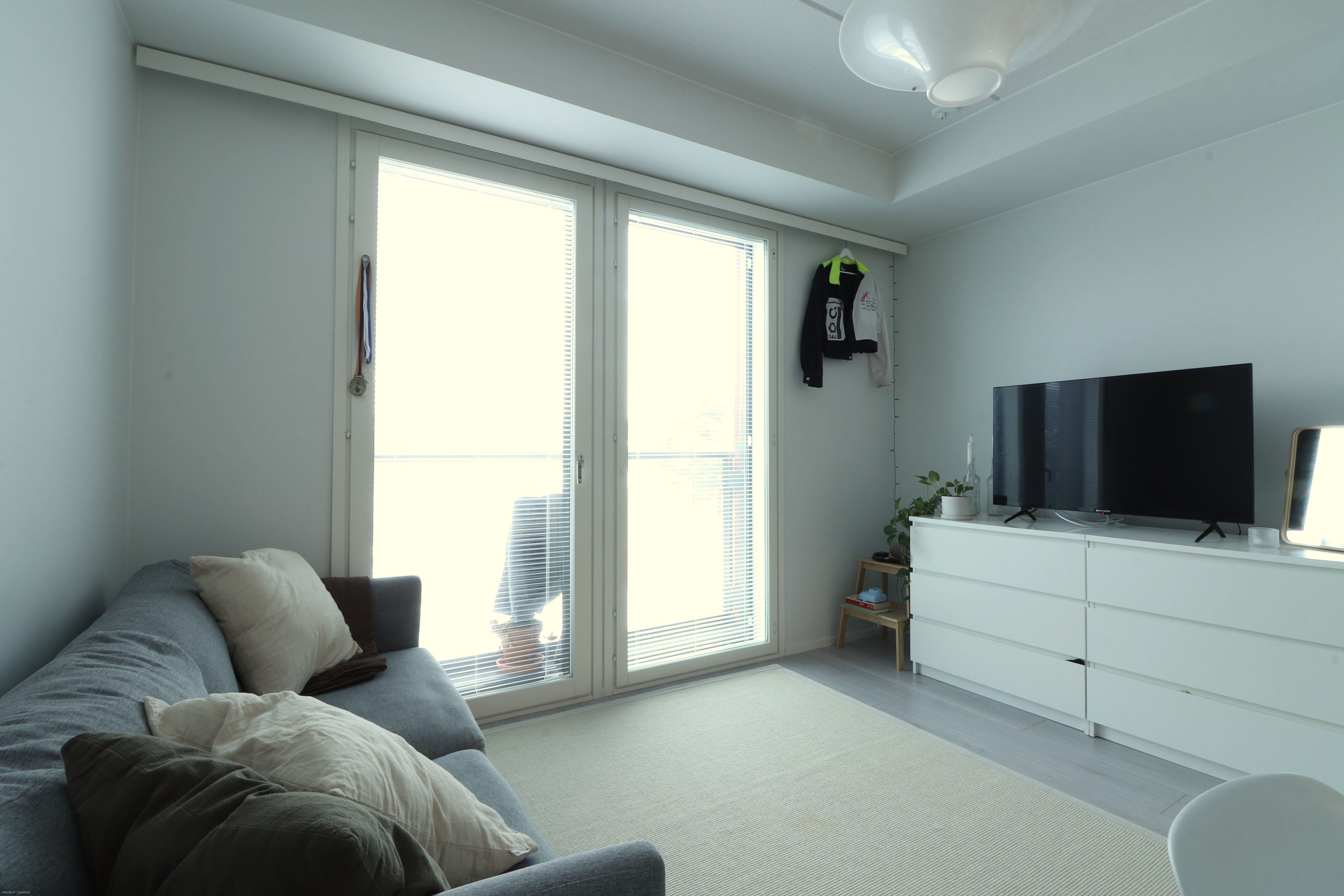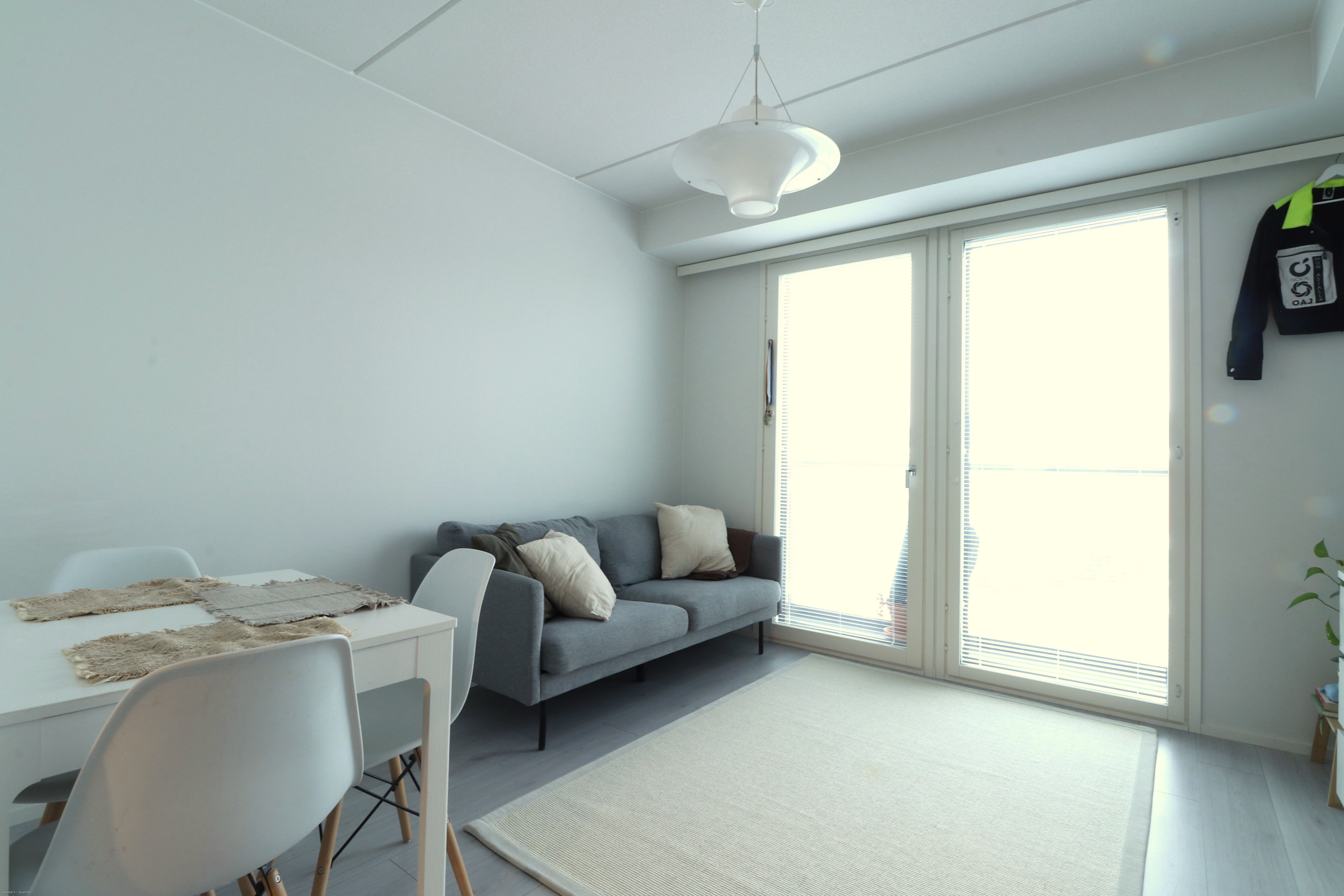 Tässä viidennen (5/7) kerroksen yksiössä on toimiva pohjaratkaisu alkovineen. Kodin kaapistot ja keittiö on sijoitettu yhdelle seinälle, jolloin muu tila jää vapaasti sisustettavaksi. Keittiössä on valmiina astianpesukone, jääkaappipakastin sekä erillisuuni liesitasoineen. Olohuoneessa on tilaa ruokapöydälle ja vaikkapa sohvalle. Olohuoneesta avautuu myös kodin ranskalainen parveke. Kylpyhuoneessa on varaus pyykinpesukoneelle ja kuivausrummulle. Halutessasi altaan viereen mahtuu vaikkapa pieni hyllykkö. Asunnon lattiat ovat kaunista laminaattia, ja seinät maalipinnoin.