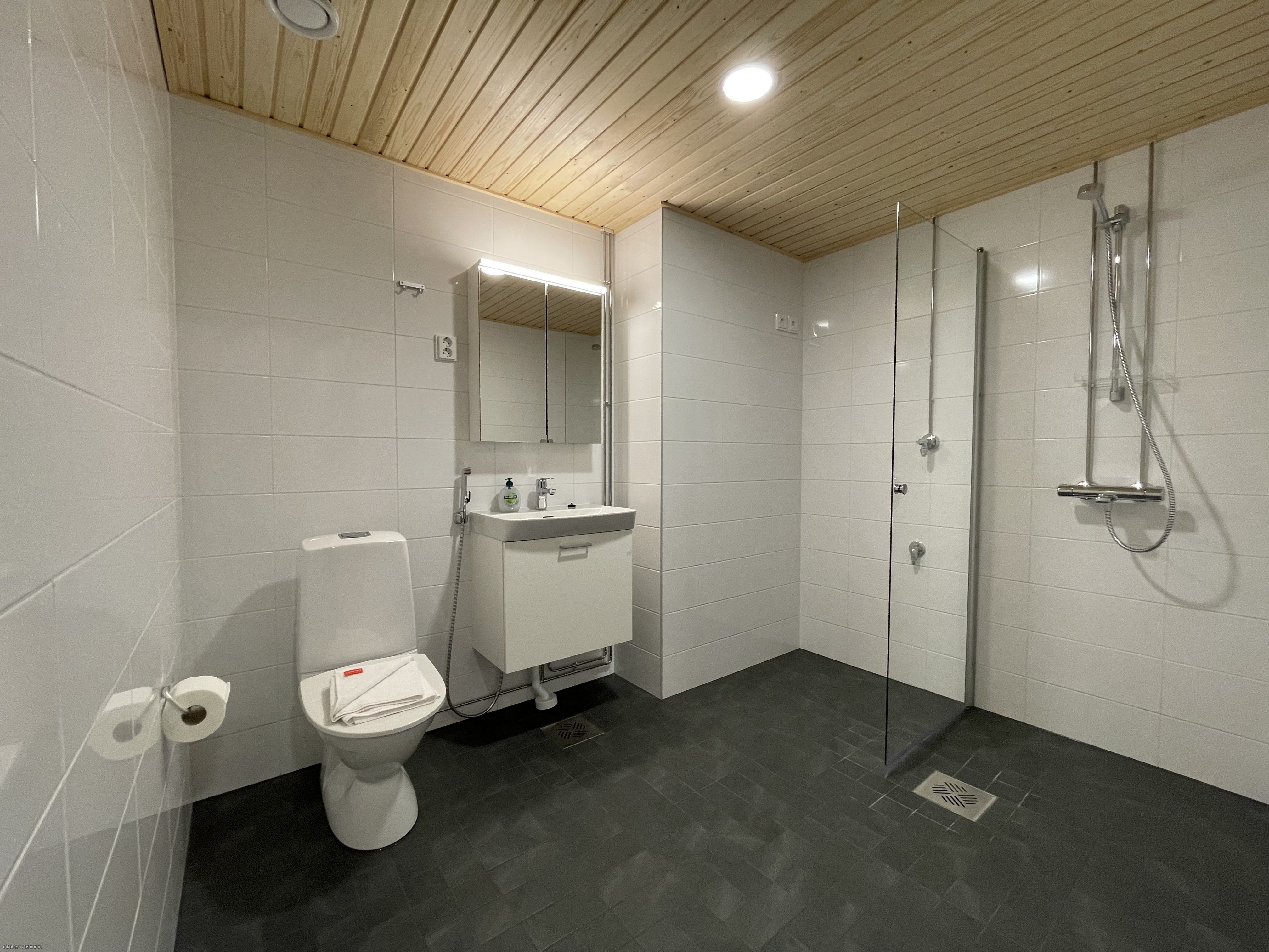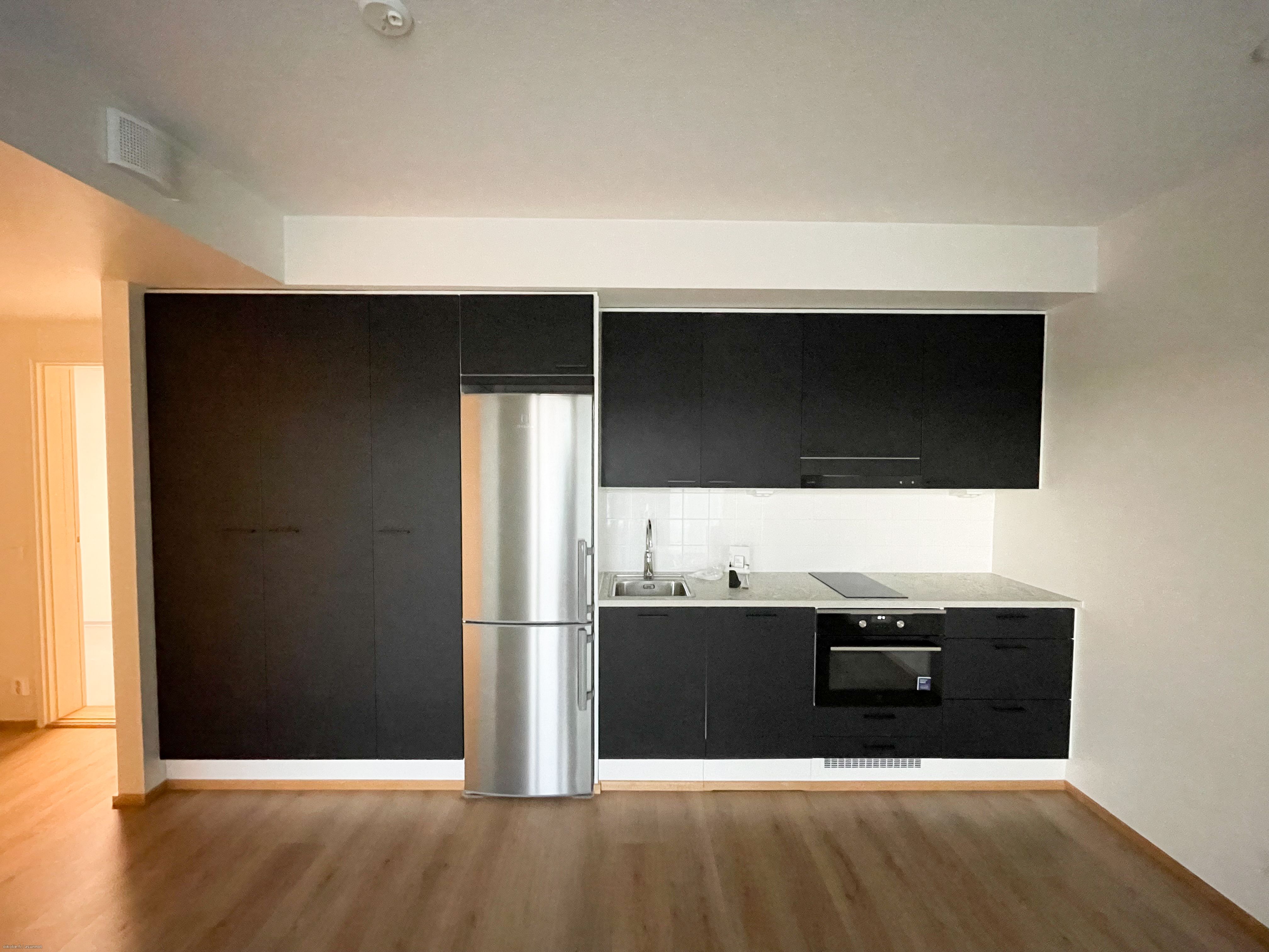 Asunnon lattiat ovat laadukasta laminaattia. Tähän asuntoon on valittu upea musta keittiö. Keittiön varustukseen kuuluu keraaminen keittotaso, kalusteuuni, astianpesukone sekä jääkaappipakastin. Lasitetulla parvekkeella kelpaa nautiskella. Tilavassa kylpyhuoneessa on liitännät pyykinpesukoneelle.