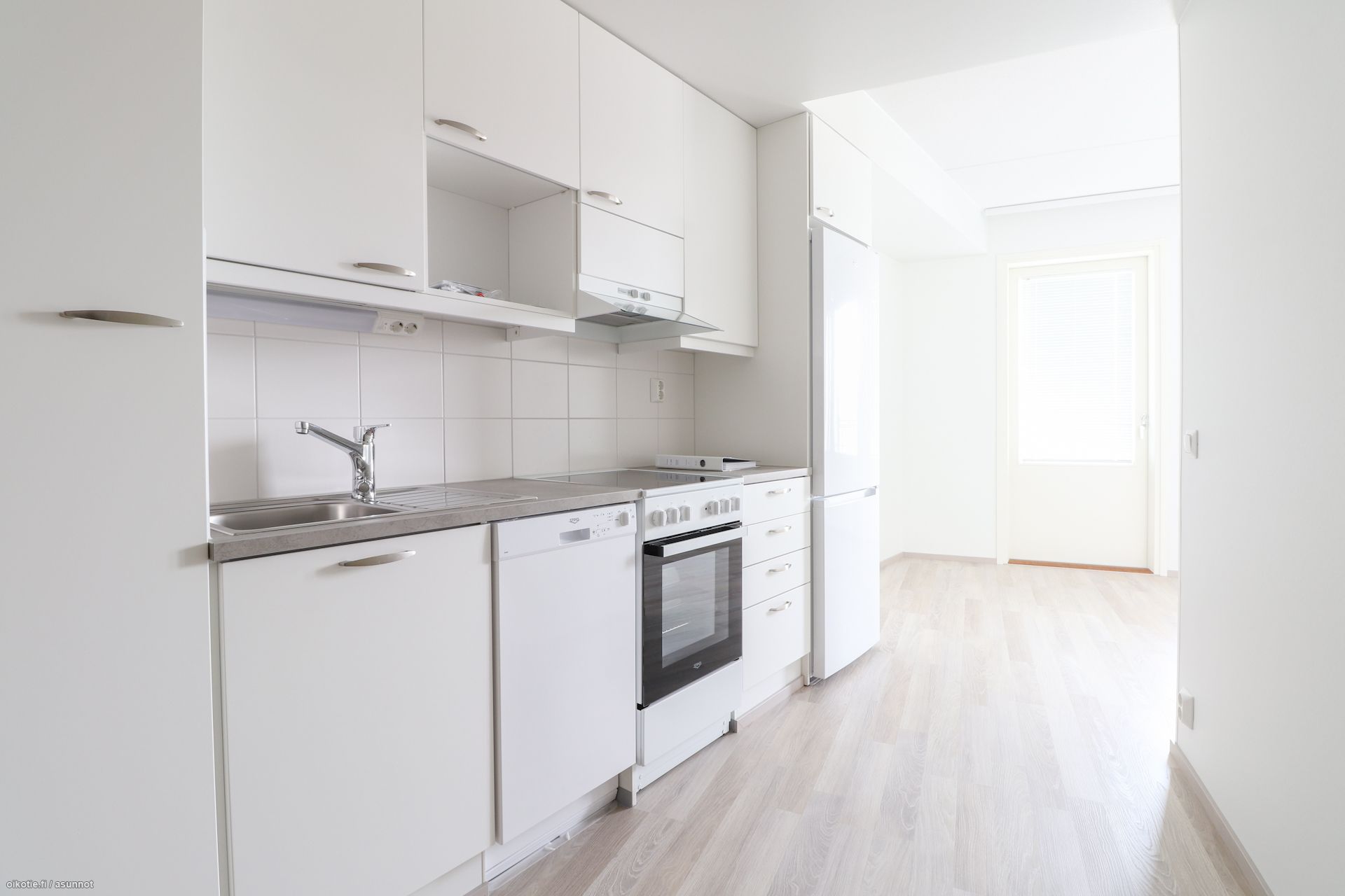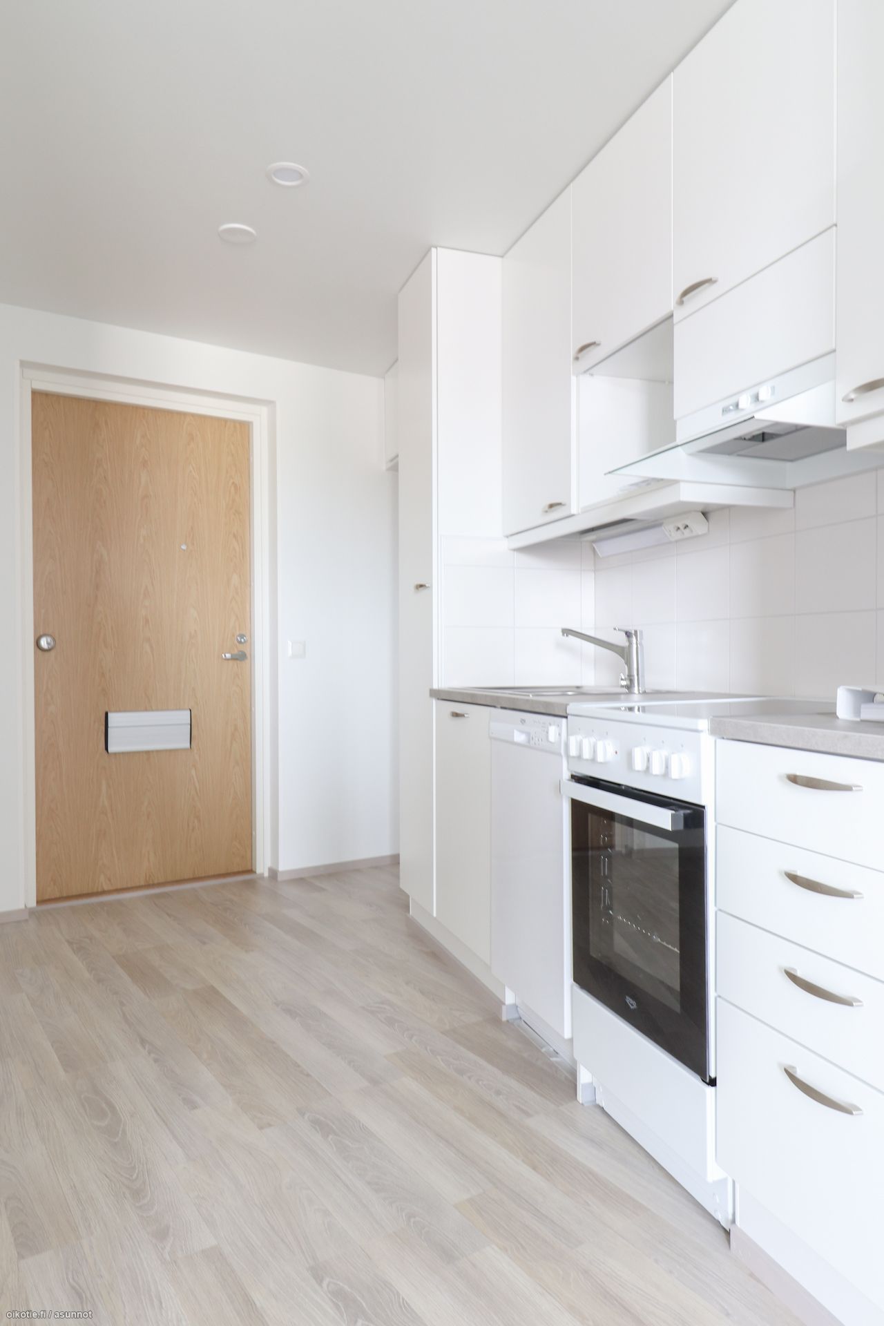Vuokrattavana toisen (2/4) kerroksen hyvällä pohjalla oleva kiva yksiö. Lattiassa tammilaminaatti, seinät maalipinnoin, ja ikkunoissa valmiina sälekaihtimet. Keittiössä rosterinen taso ja pesualtaat. Keittiön varusteluun kuuluu myös laadukkaat kodinkoneet, jääkaappi, astianpesukone, liesi ja uuni. Kylpyhuoneessa on liitännät ja paikka pyykinpesukoneelle ja kuivausrummulle. Lasitettu parveke on lisäämässä viihtyvyyttä.