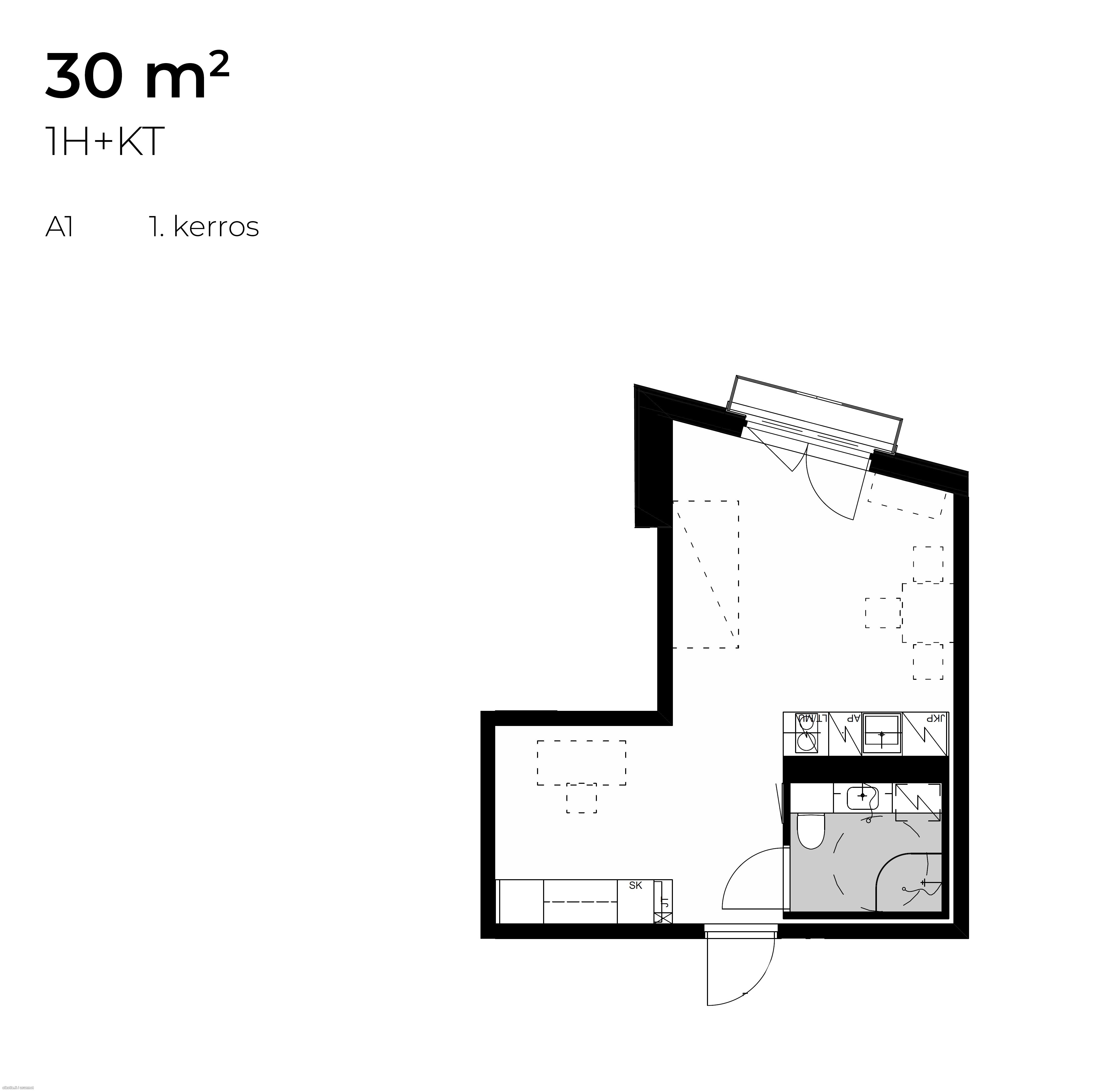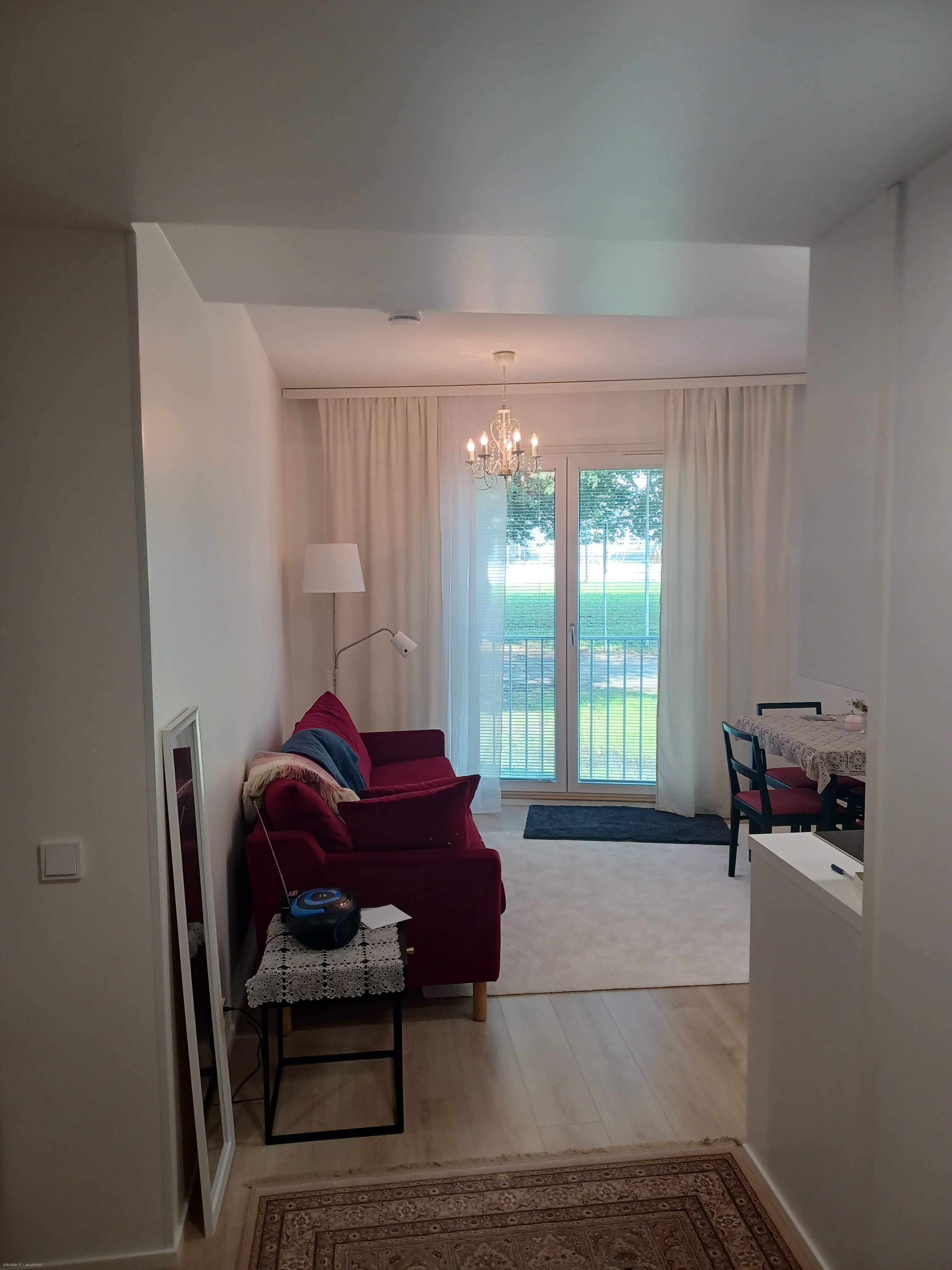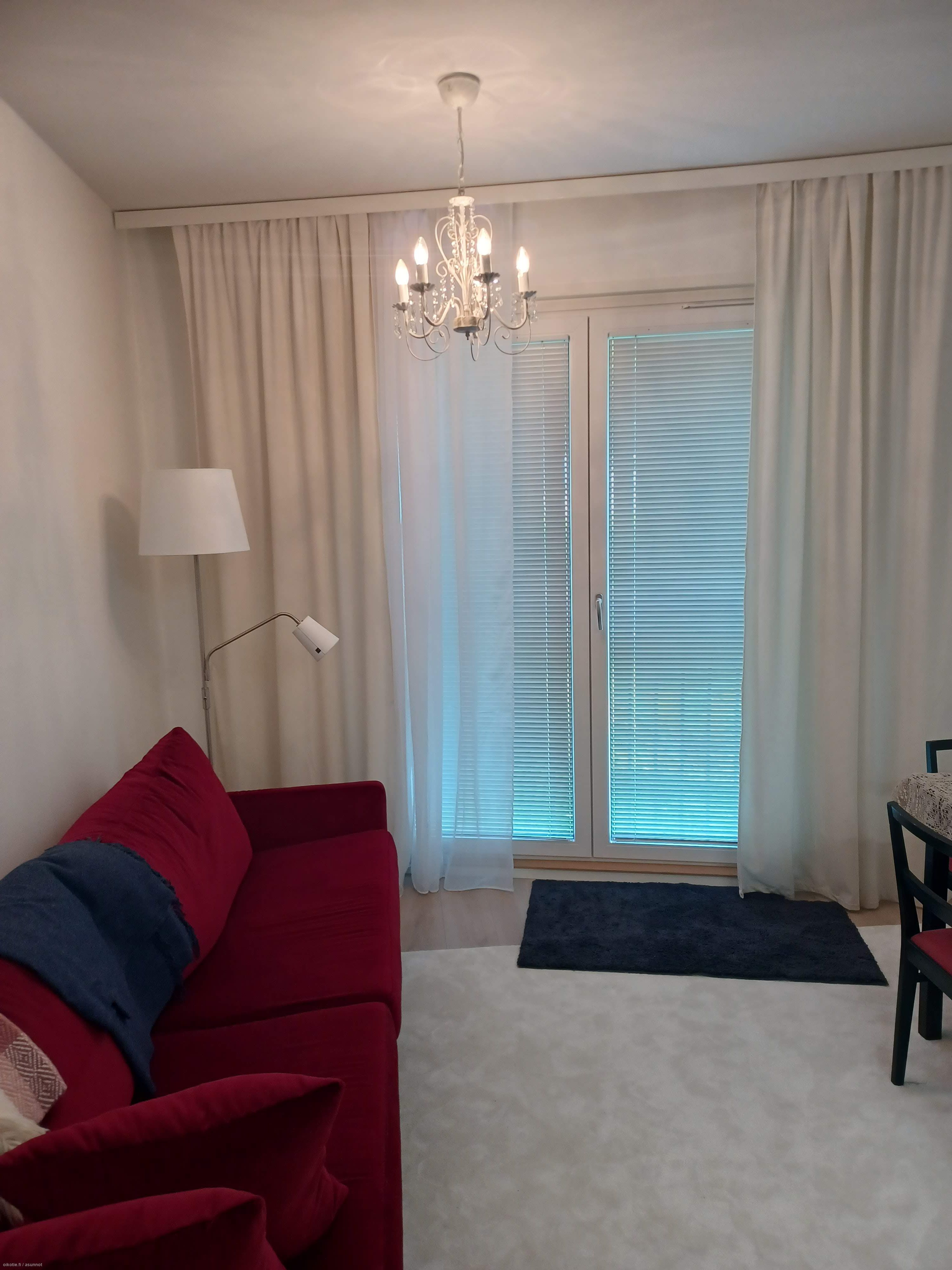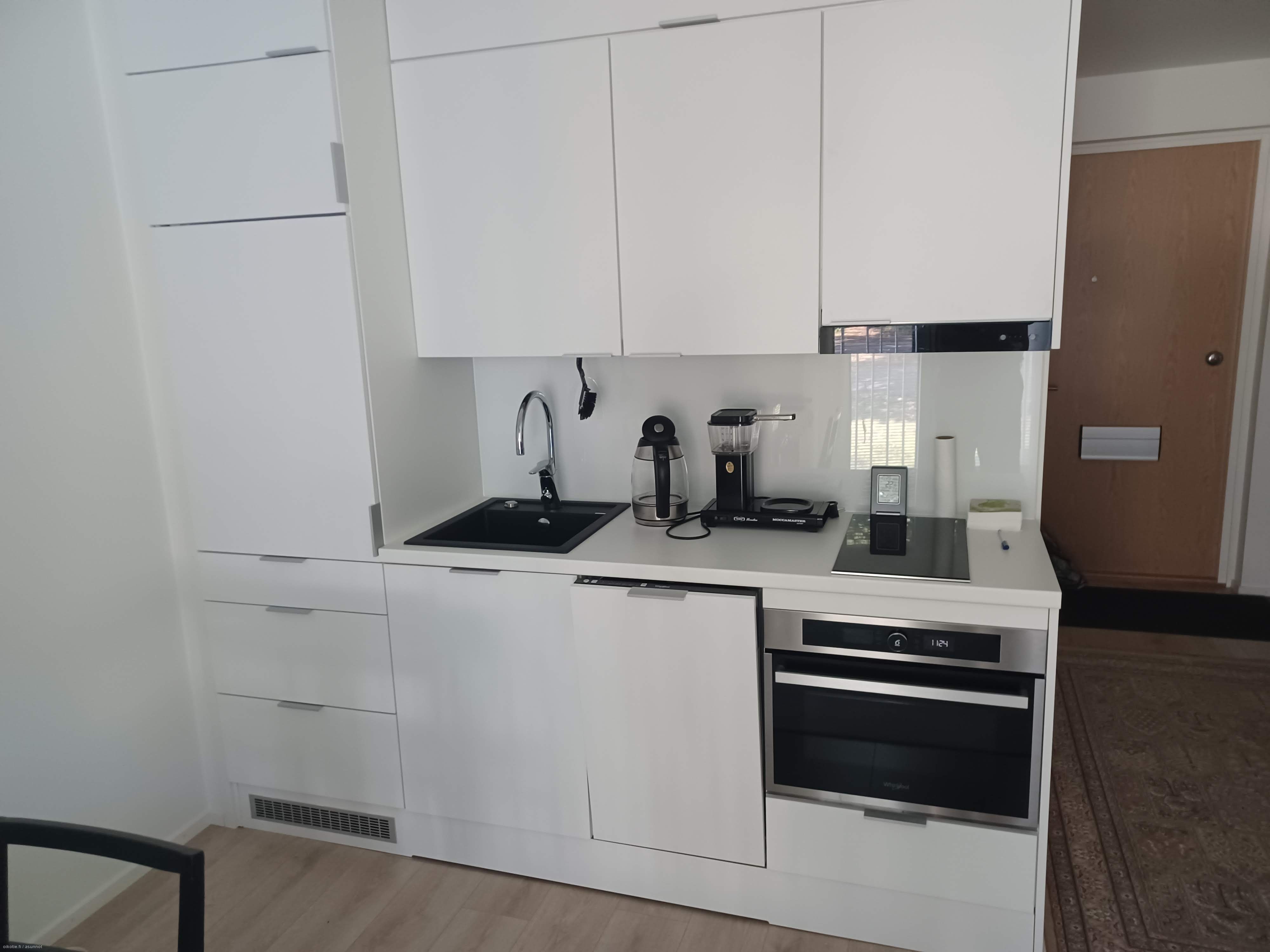 Lattiamateriaalina kaunis laminaatti, seinät valkoisiksi maalatut. Ikkunat toteutettu kauniilla pariovilla, jotka saat avattua ranskalaiselle parvekkeelle. Kaapinovet keittiössä ja eteisessä valkoiset. Keittiötilassa nykyaikaiset kodinkoneet mm. astianpesukone, jääkaappi, pakastinlokero ja integroitu mikro/uuniyhdistelmä. Kylpyhuoneessa ajattomat materiaalit, valkoiset seinälaatat ja tummat lattialaatat, ja varaus omalle pyykinpesukoneelle. Tässä asunnossa on myös makuualkovi, johon mahtuu 120 cm leveä sänky.
