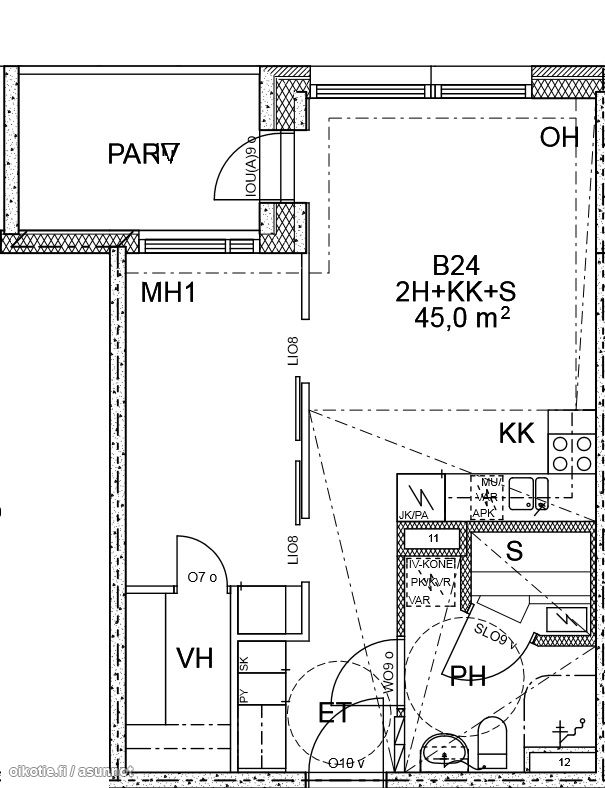 | Huoneiston kokoonpano | 2h,kk,kh,sa,parv |